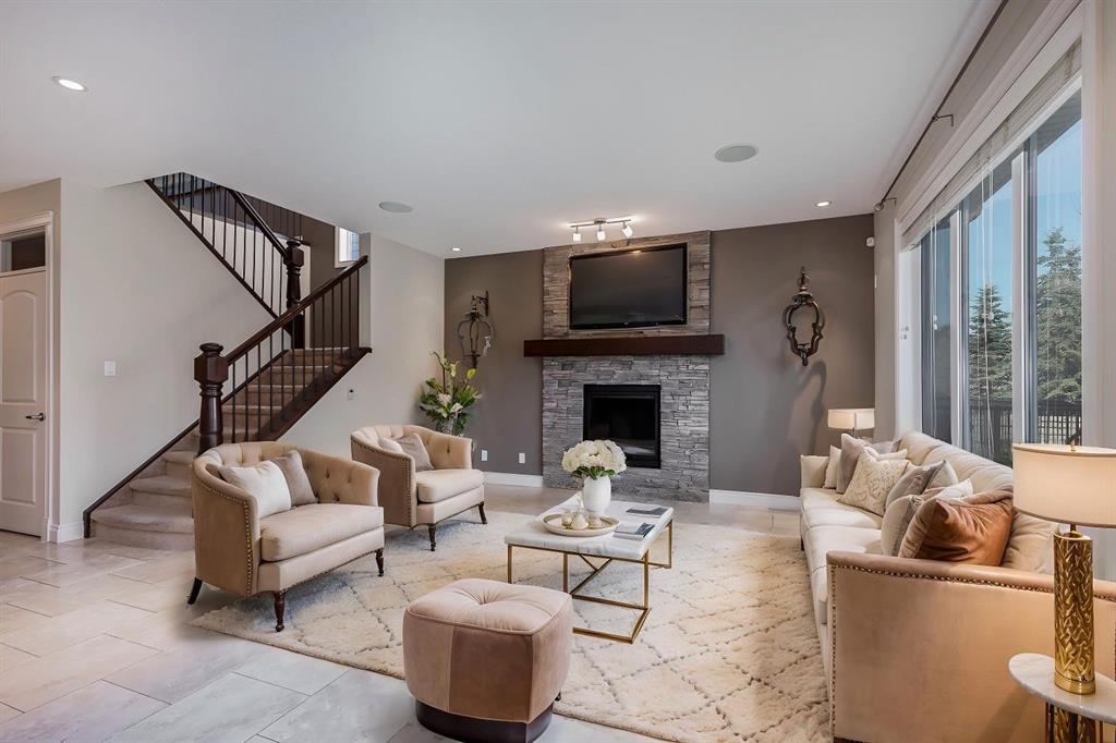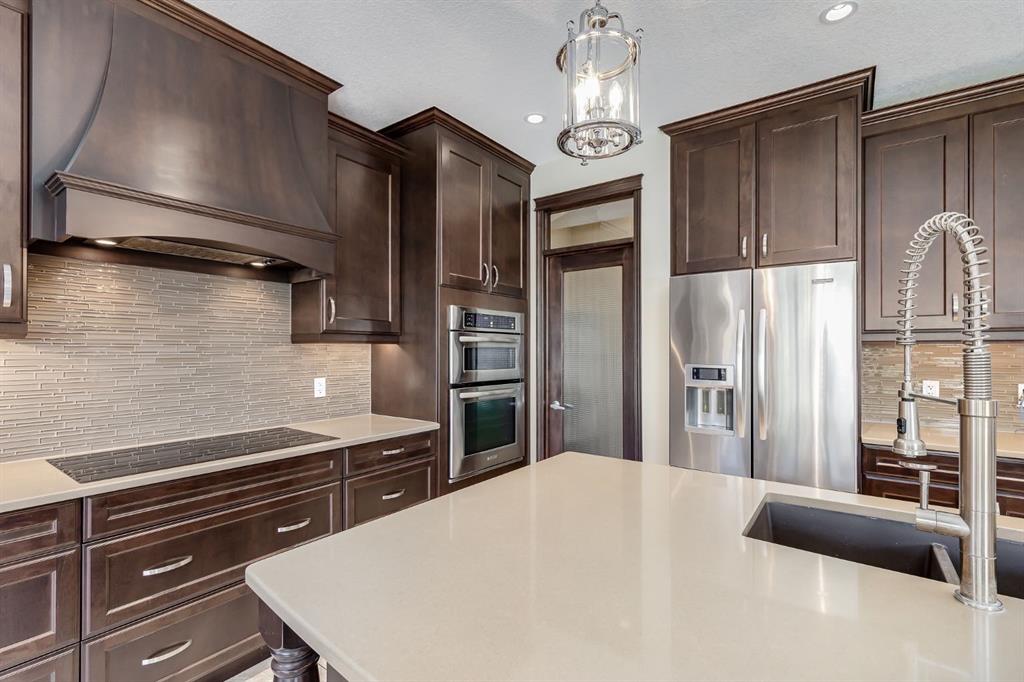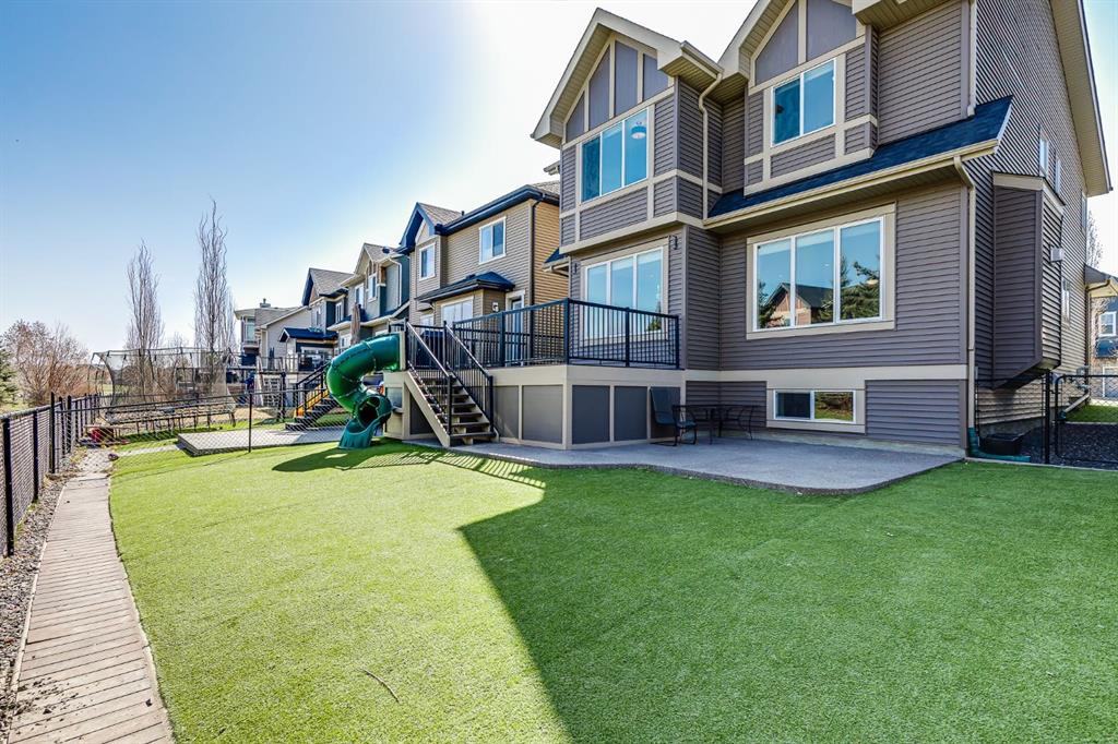 OPEN HOUSE Sun Apr 19th 1:00 – 3:00pm ** This Highly Upgraded Custom Built McKee Home boasts 3818 sqft of Developed Living Space, has 5 Bedrooms, 4.5 Baths, and BACKS ONTO GREENSPACE and PATHWAYS that is a 1 min walk from the Coopers Crossing Elementary School. When you arrive, you will enjoy the Large Private Foyer with a seating bench, and will immediately notice the beautiful Travertine Tile Flooring, 9′ Ceilings, and the Home is FRESHLY PAINTED. The Front Office is nicely situated so it is Private and has French Doors. You will be impressed by the Oversized Windows that welcome you into the Living Room and Kitchen area as they bathe the Home in Natural Light. The Living Room is quite spacious and has a Feature Wall the Oversized Stone Faced Fireplace. The Kitchen is a Chef’s Dream and features Upgraded Appliances including a 5 Burner Induction Cooktop, Built in Wall Oven, Built in Microwave, Stainless Steel Refrigerator, Quartz Countertops, Tons of Full Height a Beautiful Cabinetry with lots of Pot and Pan Drawers, Undermount Lighting, Glass Tiled Backsplash, a Massive Island with seating, and a Huge Walk through Pantry. The Dining area can host a large table. The Mudroom has Built in Cabinetry and opens to the Oversized Garage. The Staircase with Wrought Iron Spindles lead you to the Upper Level that opens to a Massive Family Room with Vaulted Ceilings. The oversized Primary Suite is exquisite with Hardwood Flooring, Vaulted Ceilings, a Reading Nook with Built in Shelving and opens to the Ensuite. The Spa-like Ensuite has a Soaker Tub, Dual Vanities, and an oversized Shower Stall with 3 Showerheads to help you relax and enjoy your escape away. There is also a walk in closet. 3 Additional Bedrooms, Full Bathroom, and Laundry Room complete the Upper Level. The Lower Level was completed by the Builder to keep the decor and cabinetry the same and features 9′ ceilings and a Fantastic Family Room with a Stone Feature Wall with a 120″ Projection Screen and Media Equipment, Built in Cabinetry, Huge Dry Bar perfect for all those movie snacks and for storage. There is also a Games area, the 5th Bedroom and a Full Bathroom on the Lower Level. This Amazing Home is Air Conditioned, has a Brand New Furnace (Dec 2025) and Hot Water Tank (Oct 2025), Water Softener, Sonos System and Speakers throughout, and Vacuum System. The Exterior has a Large Upper Deck with BBQ Gas Line, a Slide for the kids, and has Composite Decking. The Lower Aggregate Patio extends under the enclosed Deck making storage easy and clean. The Home is surrounded by Pet Friendly Artificial Turf making it low maintenance for a busy Family. The Oversized Heated Garage is 25′.7″ x 19’1″. Coopers Crossing is the Premier Community in Airdrie. Watch your kids walk to school from the Home and ride their bikes on the back pathway. This is an amazing Family Home. Ensure to watch the tour on MLS or Realtor.ca.