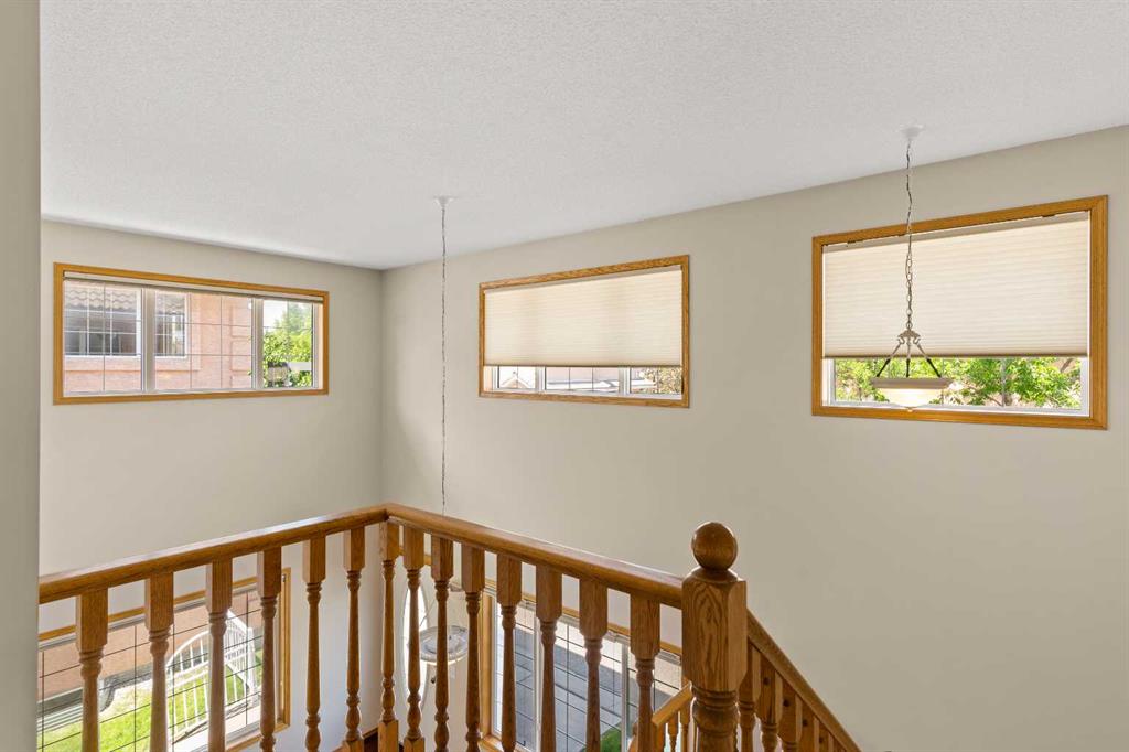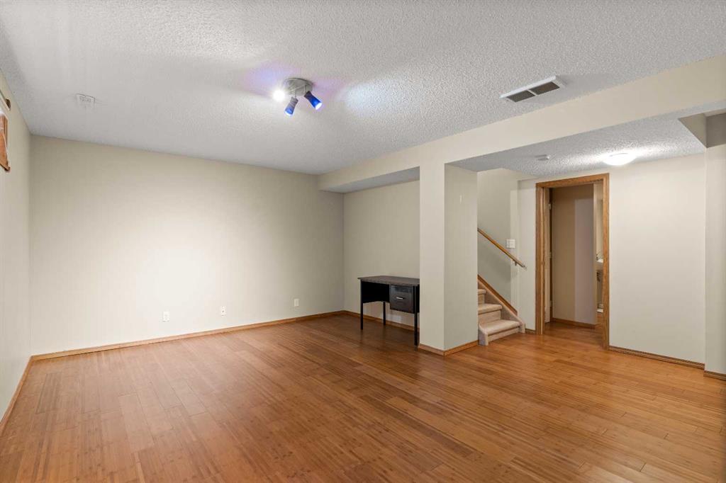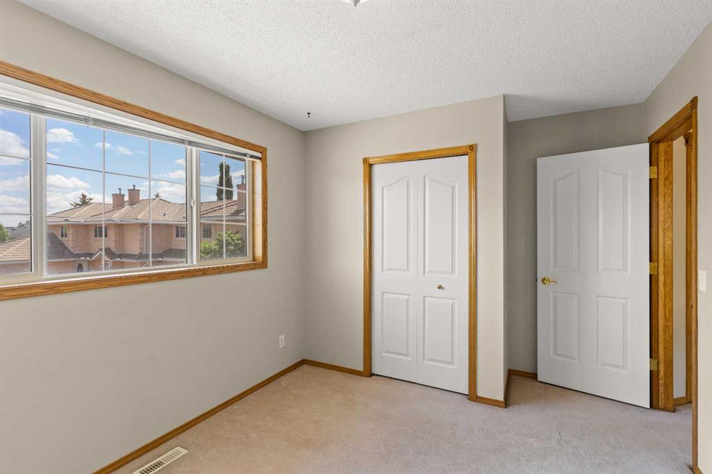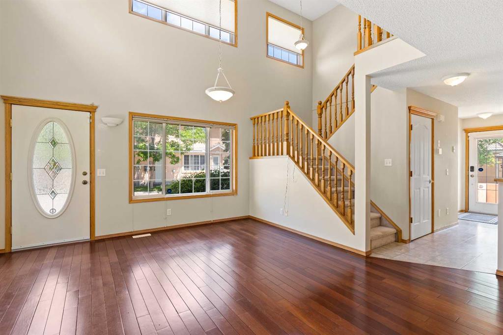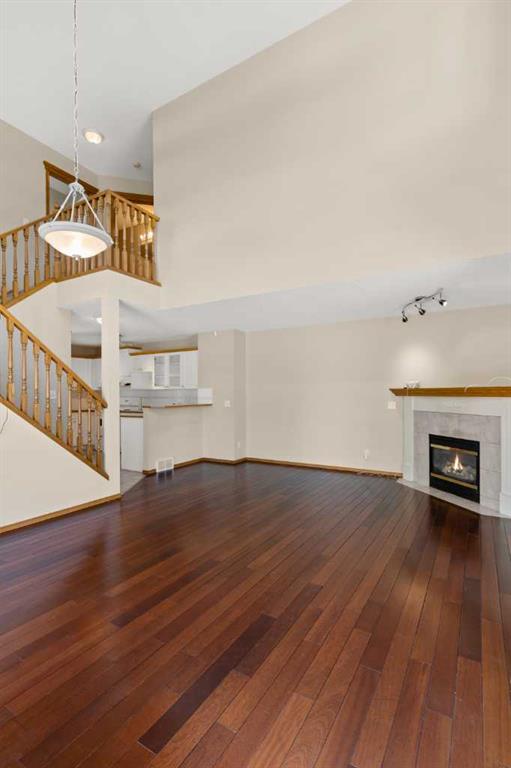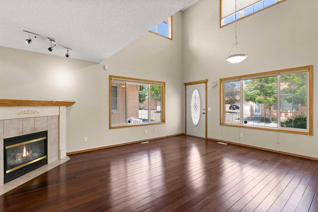 Welcome to this Gorgeous cul-de-sac town home in a gated community with a total living space of 1642.01 sq ft in the popular lake community of Coral Springs. Pride of ownership is evident in this well-kept 2 bedrooms + den, 2.5-bathroom end unit family home with an attached garage and a full driveway situated in a private gated community of Coral Cove Estates. Enter into a bright & open main floor with stylish vaulted and high ceilings open to below for that airy feeling, windows throughout providing plenty of sunshine, a chandelier, and stunning cherry-stained hardwood flooring. The layout is fantastic with a Sunny living room with a cosy corner fireplace, next to the dining area overlooking the crisp white kitchen featuring ample counter space, lots of white cabinets for storage and modern kitchen immaculate appliances. The door in the kitchen leads to a concrete patio perfect for BBQs. Rounding out the main floor is the convenient laundry room and the guest bathroom. Upstairs, you’ll find a huge Primary bedroom with a walk-in closet and 4-piece ensuite, an additional bedroom with good closet space and a full bathroom. The basement is wide open featuring hard wood flooring throughout the basement. It is a family room ideal for late-night family bonding, a den for extra accommodation or you can convert it to your private home office plus plenty more extra storage space. Out back is your private patio & BBQ area. You’ll have an attached garage with more room for storage and work area plus a full driveway and lots of parking space for guests off-street. As a resident, enjoy a quiet neighbourhood and security as there are CCTVs monitoring common areas. You will also have access to the lake, beach, tennis courts, fishing and boating and many more amenities. Excellent maintenance and snow removal crew and Keyed access to waste disposal shed. Spectacular location! Steps away from the community’s private lake, Circle K, schools, shops, Stony Trail via McKnight Blvd and more. Don’t miss out on your chance to live in this premium complex!