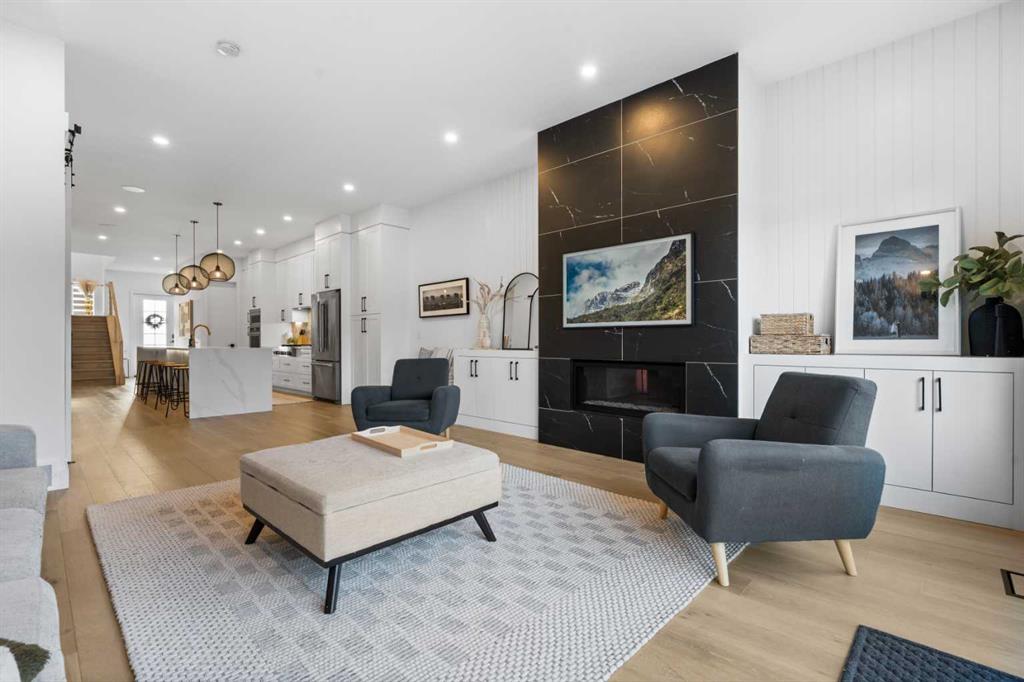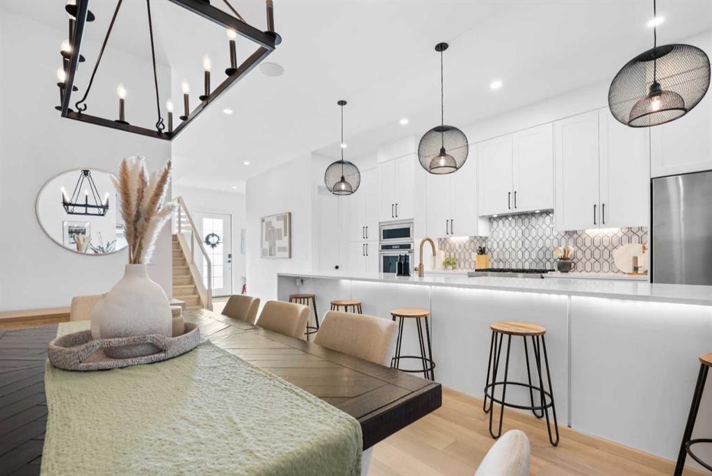 Welcome to modern farmhouse luxury living in the highly sought-after community of Altadore! This open-concept home showcases exceptional design and craftsmanship throughout, featuring 10’ ceilings, wide-plank flooring, and a layout ideal for both everyday living and entertaining. The heart of the home is a beautifully appointed chef’s kitchen with high-end stainless steel appliances, expansive quartz countertops, a large island perfect for family meals and hosting, and ample pantry storage, flowing seamlessly into the dining area and a stylish living room highlighted by a modern gas fireplace and feature wall. A spacious mudroom with built-in storage adds everyday functionality, while the striking front entry staircase emphasizes the impressive width of the home and creates a welcoming first impression. Upstairs offers 3 generously sized bedrooms, including a showpiece primary retreat with his-and-hers walk-in closets and a spa-like ensuite featuring a freestanding tub, dual vanities, glass shower, and private water closet, while the additional bedrooms each include spacious closet space and a full bathroom to share, complemented by a thoughtfully designed upper-level laundry room. The fully developed lower level features a large media and recreation room and a dedicated basement office, offering excellent flexibility. Designed for effortless indoor–outdoor living, oversized sliding doors lead to a large backyard deck with added railing, complemented by low-maintenance turf, creating the perfect space for entertaining and relaxing. Recent upgrades include a central air conditioning unit, a garage-installed EV charger, and a water conditioning system, adding comfort and efficiency throughout the home. Finished with premium materials, custom cabinetry, floor-to-ceiling windows, quality appliances and fixtures, and truly impressive attention to detail, this move-in-ready Altadore home offers an unbeatable lifestyle just steps from shopping, dining, parks, Marda Loop, the dog park, and minutes to downtown.