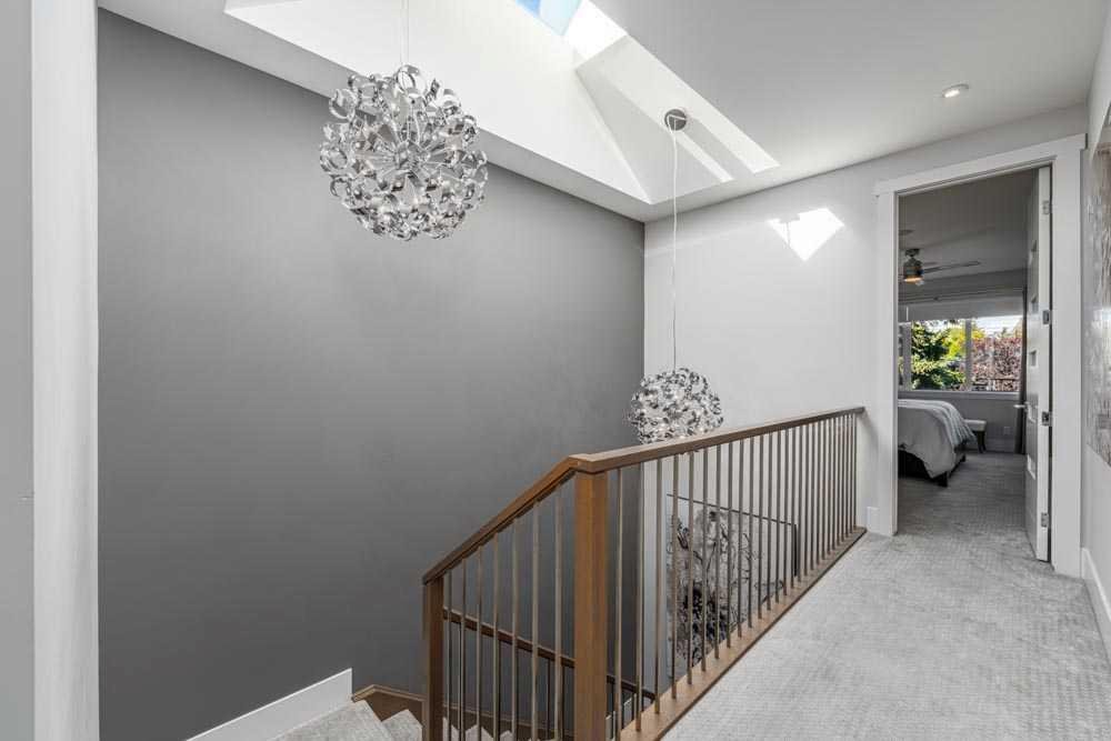 Step inside and you’ll immediately feel the difference. Champagne oak hardwood floors, flat 9-foot ceilings, skylights, and an open-riser staircase flood the home with light and warmth – complemented by ceiling speakers with a 3-zone Sonos system. You’ll notice solid doors, exceptional millwork, and custom built-ins that make organization effortless.