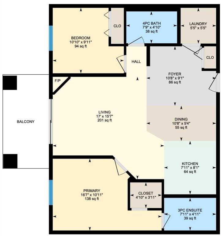 The primary bedroom includes a walk-through closet and a private 3-piece ensuite bathroom. The second bedroom is well-sized and located near the main 4-piece bathroom, making it ideal for guests, family members, or a home office.