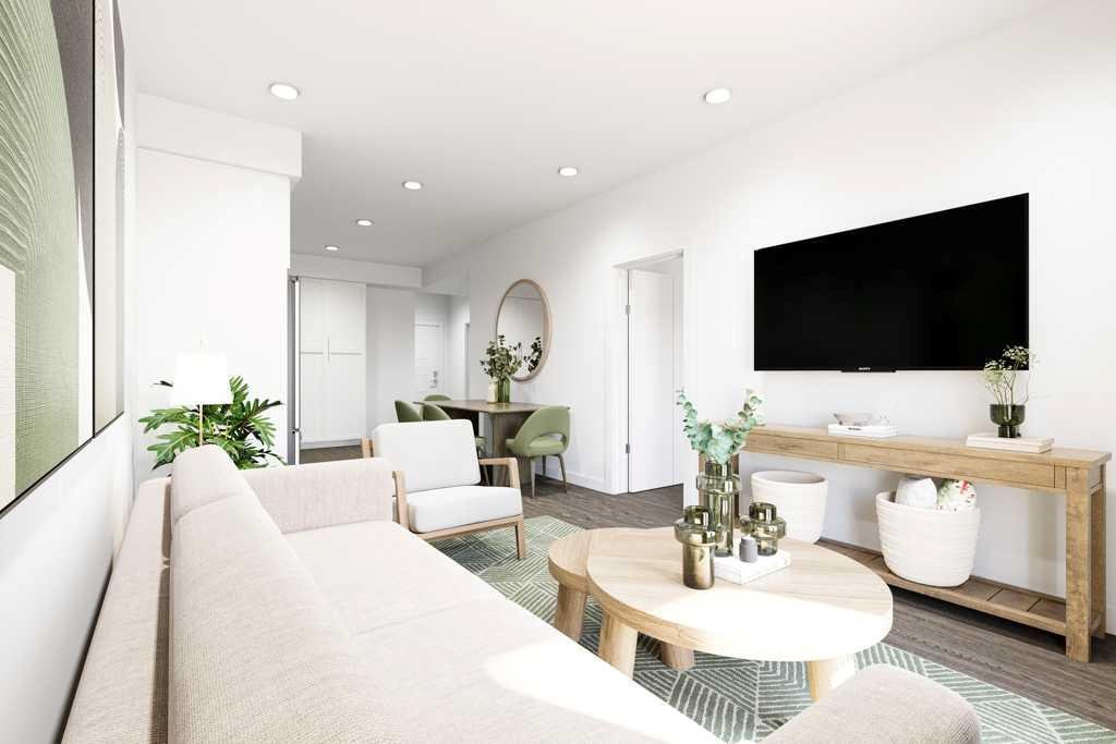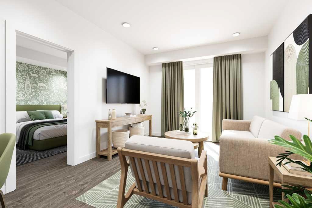 Built by Homes by Avi and Built-Green Registered, this beautifully designed A8 floor plan at Autumn in University District offers modern, efficient living with 1 bedroom, 1 bathroom, and a Juliette balcony. Thoughtfully crafted for comfort and functionality, the open layout features a bright kitchen and dining area that flows seamlessly into the living space, creating an inviting environment for both everyday living and entertaining. The well appointed bedroom with walk-in closet provides a peaceful retreat, complemented by a contemporary full bathroom and in suite laundry. Autumn’s architecture is defined by three distinct building profiles, giving the development a unique and contemporary presence. Residents enjoy an impressive collection of amenities, including a top floor owner’s terrace with BBQs, fire tables, and a community garden; a fully equipped fitness centre; a co work and entertainment lounge; and secure storage units conveniently located on every residential floor. Additional conveniences include a heated underground parkade, outdoor visitor parking, a secure main floor bicycle storage room with direct laneway access, and a dedicated bike/pet washing station. Located in the heart of University District, Autumn places you steps from Central Commons Park, the vibrant Retail Main Street, The University of Calgary and close to The Alberta Children’s Hospital, Foothills Hospital, Market Mall—offering unmatched walkability and year round lifestyle appeal. Fall in love with the A7 at Autumn, where smart design meets exceptional urban living.