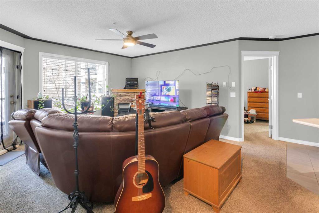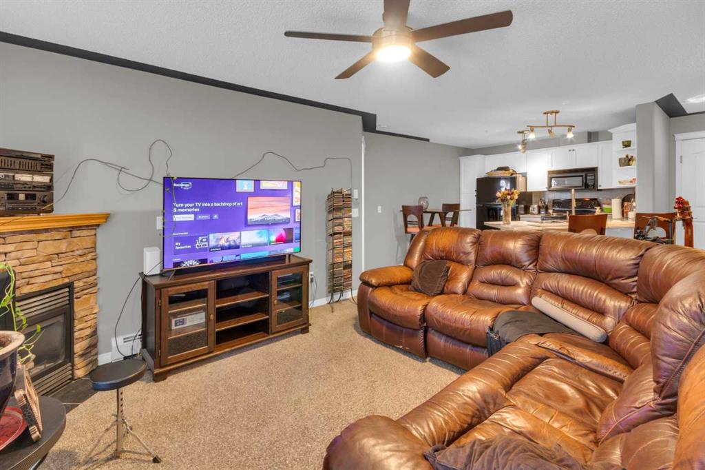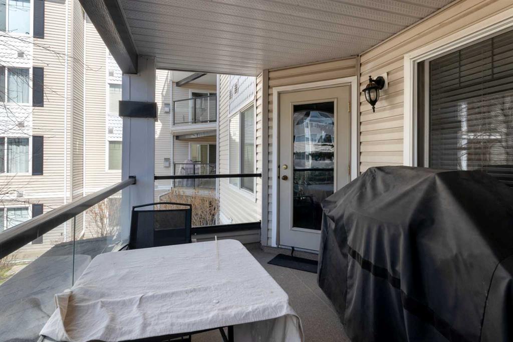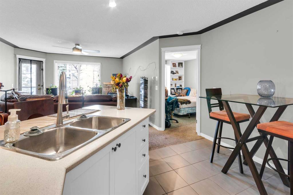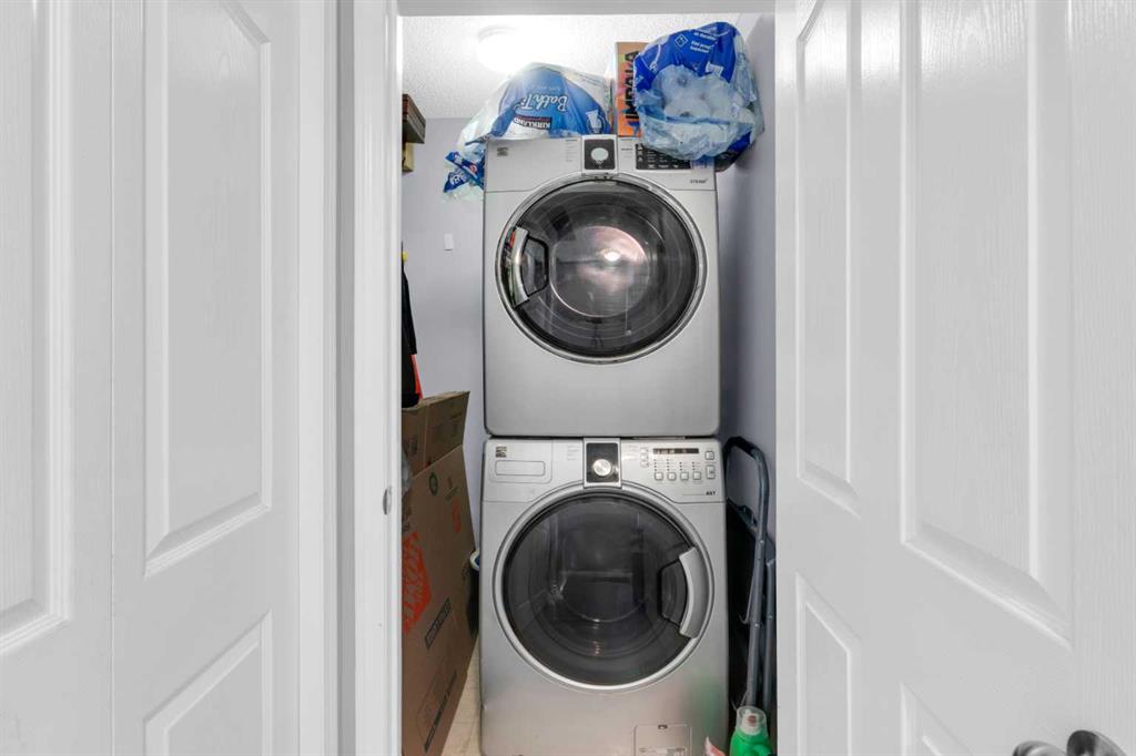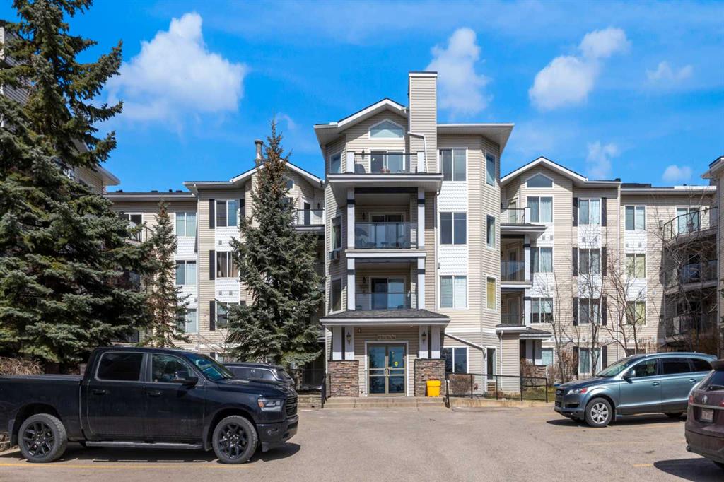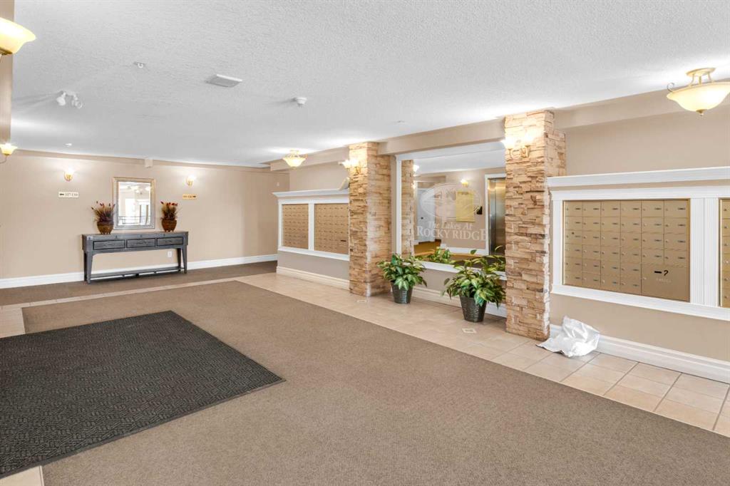 Enjoy comfort, convenience, and stunning views from this bright, well designed and updated condo in The Pavilions of Rocky Ridge. The open concept living area offers plenty of room for full sized furniture and a large TV, creating a warm and inviting space for relaxing or entertaining. The layout is ideal for privacy, with both bedrooms located on opposite sides of the main living area. The kitchen is thoughtfully arranged with generous counter space and an adjoining dining nook, perfect for everyday meals. The primary bedroom features a walk in closet plus a private 3 piece ensuite. The second bedroom is roomy and versatile, paired with a 4 piece main bathroom, as well as a spacious laundry room that adds great functionality to the home. Step outside to the oversized balcony with a private storage attached and take in beautiful mountain views, the perfect spot for morning coffee or evening unwinding. Additional perks include heated titled underground parking, an outdoor parking pass and convenient underground access to exceptional shared amenities: a fantastic fitness centre, theatre room, party room, and billiards lounge. Located within walking distance to transit, tennis courts, parks, and scenic walking and biking paths, this property also offers quick connections to the University of Calgary, Rocky Ridge YMCA, Bowness Park, downtown, and major routes like Stoney Trail. The ultimate combination of lifestyle, location, and mountain view living awaits.
