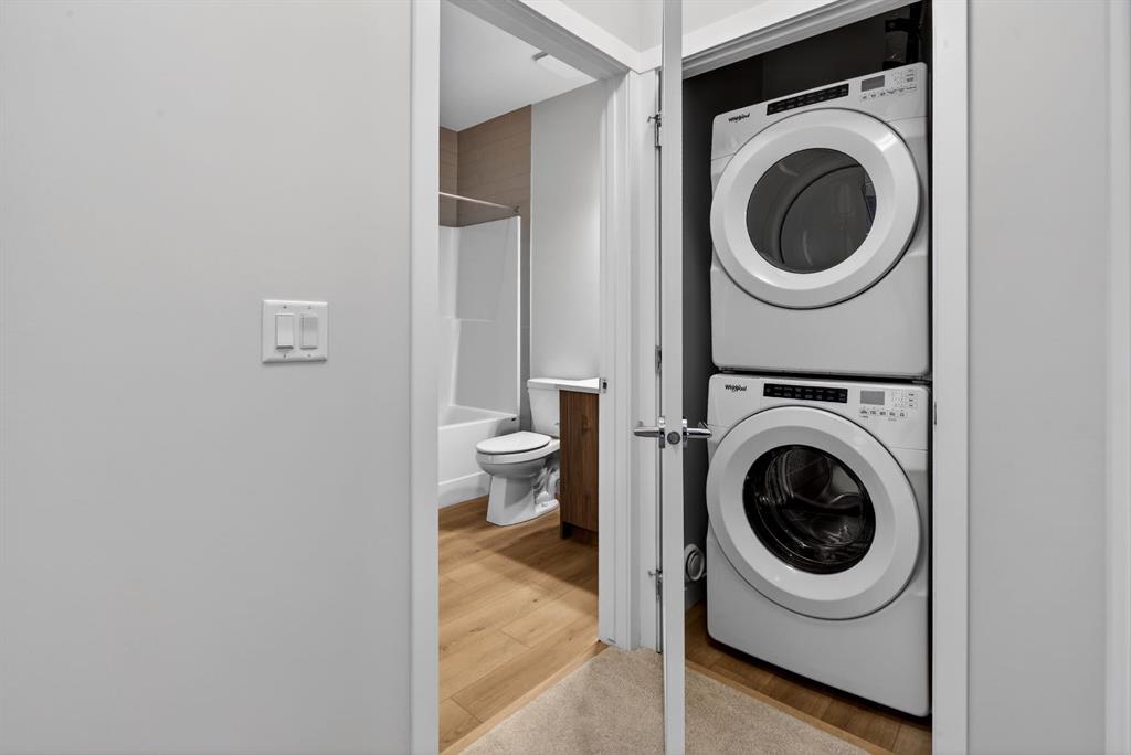 Upstairs, you’ll find two well-sized bedrooms, including a primary retreat with a walk-through walk-in closet and a stylish cheater ensuite. Convenient upper-level laundry adds to everyday ease. Enjoy year-round covered parking with direct access to the unit for ultimate convenience. Across your front door, your guests will find many visitor stalls.