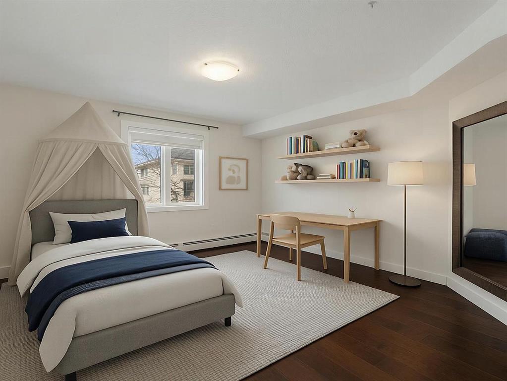 The primary bedroom offers a walk-in closet and full ensuite, while the second bedroom is generously sized ideal for guests, roommates, or a home office setup.