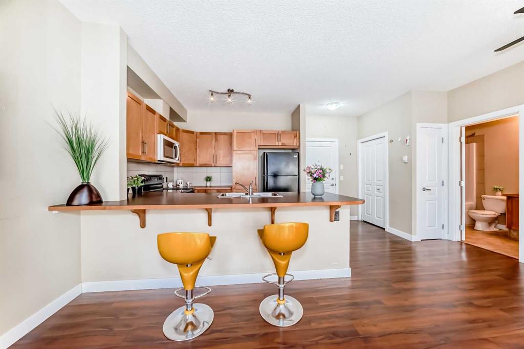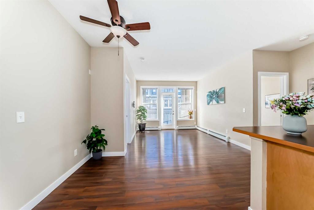 Excellent opportunity for comfortable living or investment. This well-maintained 2-bedroom, 2-bathroom corner unit is located in a quiet, modern building in the highly desirable Panorama Hills community. It includes a titled heated underground parking stall with an adjacent storage locker, offering both convenience and value. The bright open-concept living, dining, and kitchen area features 9-foot ceilings, creating a spacious and welcoming atmosphere. The kitchen is equipped with a large breakfast-bar island, ample cabinetry, and generous counter space—perfect for both everyday living and entertaining. The east-facing balcony provides abundant natural light and an ideal spot to enjoy your morning coffee or BBQ. The primary bedroom features a 4-piece ensuite and a rare walk-in closet with a side window, adding extra light and comfort. The second bedroom is generously sized and conveniently located next to another 4-piece bathroom, along with in-suite laundry for added practicality.Enjoy a prime location within walking distance to elementary and junior high schools, scenic ponds, and walking trails. Close to shopping centres, banks, restaurants, and playgrounds, with easy access to Stoney Trail, the airport, and the mountains.
