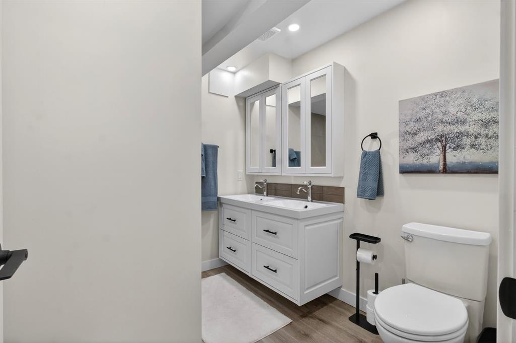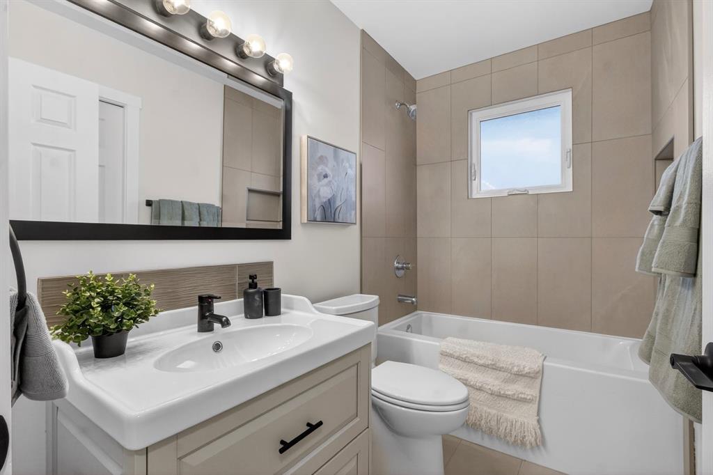 This home feels like moving into a brand-new residence, beautifully renovated from top to bottom and perfectly situated on a quiet corner lot in the sought-after community of Lynnwood. This bright bungalow is filled with natural light from large, newer windows and offers a warm, inviting atmosphere from the moment you step inside. The main level features a spacious living room that flows seamlessly into the dining area, anchored by a striking electric fireplace set into a full-height tiled feature wall that creates a stunning focal point. The fully renovated kitchen is both stylish and functional, showcasing new cabinetry, quartz countertops, updated flooring and backsplash while offering a lovely view of the private backyard. Three generously sized bedrooms complete the main floor, including a private primary retreat with a walk-in closet and a fully renovated 3-piece ensuite. A beautifully updated main bathroom adds even more comfort and convenience. The fully developed lower level offers exceptional versatility and space for entertaining. Enjoy a large recreation room with a wet bar and dedicated space for a games or dining table, perfect for hosting family and friends. The basement also includes two additional bedrooms, a renovated bathroom with double sinks, a full laundry room, workshop space, excellent storage, and a private sauna for a relaxing, spa-like experience at home. With added insulation, egress windows, and updated lighting, this level is both comfortable and functional. Recent upgrades and improvements include a new electrical panel, backflow valve, modernized lighting, new flooring throughout, fresh paint, updated doors and hardware and an in-ground irrigation system, providing true peace of mind and move-in-ready living. Step outside to enjoy the southeast-facing, fully fenced backyard complete with a concrete patio, mature landscaping, two storage sheds, and plenty of space for gardening, play, or relaxing. The property also features a huge parking pad with room to build a future garage. Located on a quiet cul-de-sac with a park just down the street and steps from scenic walking paths and the river, this home is ideal for nature lovers and active lifestyles. Close to schools, shopping, and recreational amenities, it offers the perfect blend of style, comfort, and location. A rare opportunity to own a turnkey, extensively renovated bungalow in one of Calgary’s most established communities — this is one you don’t want to miss!