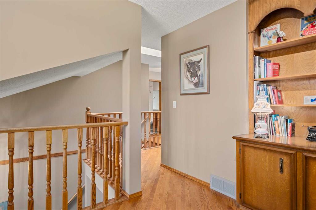 ***OPEN HOUSE SATURDAY, OCTOBER 11th 12-2pm*** Welcome to RANCHLAND ESTATES, where this family-friendly two-storey home blends comfort, space and a remarkable natural setting. Positioned on an OVERSIZED CORNER LOT, the property backs directly onto a 14-acre ENVIRONMENTAL RESERVE with an OFF-LEASH DOG PARK and extensive pathways, offering year-round opportunities for walking, biking and outdoor enjoyment just steps from your backyard. An expansive backyard oasis with almost 400 SQFT of DECKING, MATURE APPLE TREES, a PAVED PATIO, DOG RUN and IRRIGATION creates a true outdoor retreat, while an extra 45′ RV PAD with 110V service accommodates your adventures. Inside, a soaring TWO-STOREY FOYER introduces a thoughtful layout. A front LIVING ROOM with BAY WINDOW flows seamlessly into the DINING ROOM, ideal for entertaining. The peninsula kitchen features GRANITE COUNTERTOPS, STAINLESS STEEL LG APPLIANCES, a CORNER PANTRY and water filtration system, all overlooking the beautiful yard. The adjoining breakfast nook is wrapped in windows, while a sunken family room anchored by a GAS FIREPLACE offers a cozy retreat. Everyday function is enhanced with a generous mudroom and main floor powder room. Upstairs, the primary bedroom is a restful haven complete with a RENOVATED 4PC ENSUITE featuring a DUAL VANITY, 10MM GLASS SHOWER and ELECTRIC IN-FLOOR HEAT for year-round comfort. Two additional spacious bedrooms, a 4pc bath and a tucked-away BONUS ROOM provide plenty of room for kids or quiet retreats. The FULLY FINISHED BASEMENT was designed with SOUND-DAMPENING INSULATION in the floor joists and includes a rec room perfect for movie nights or games, a 4th bedroom (no window), a 3pc bath, a WORKSHOP with built-in bench and a COLD ROOM for extra storage. Everyday comfort is supported by CENTRAL AC (2022), TWO CARRIER HIGH-EFFICIENCY FURNACES, HONEYWELL ELECTROSTATIC AIR CLEANER, CENTRAL VAC, and a PREMIUM WATER SOFTENER. An INSULATED DOUBLE ATTACHED GARAGE with overhead storage rounds out this well-equipped home. Location adds to the appeal with quick access to CROWFOOT CROSSING, CROWFOOT LRT, local SCHOOLS, playgrounds and the nearby YMCA and LIBRARY. With thoughtful updates, expansive outdoor living and a coveted setting backing onto the reserve, this RANCHLAND ESTATES residence is designed to be enjoyed for years to come.