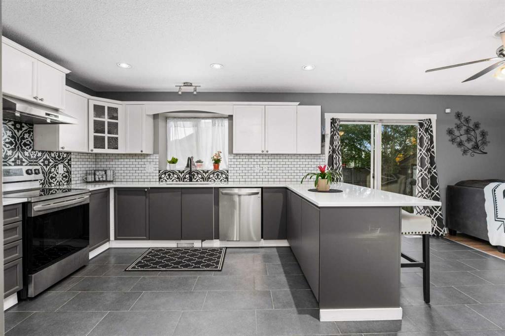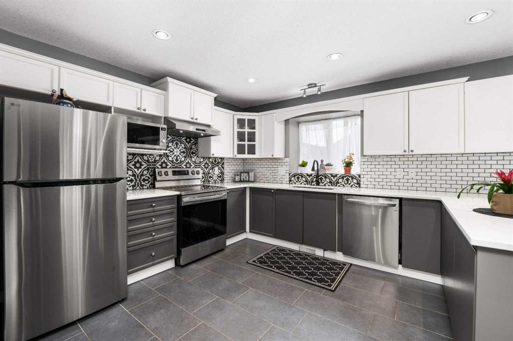 The main floor offers a bright, open-concept layout centered around a fully renovated kitchen (2023) featuring updated cabinetry, modern appliances still under warranty, and upgraded flooring that flows seamlessly through the living and dining areas—perfect for everyday living and entertaining alike.