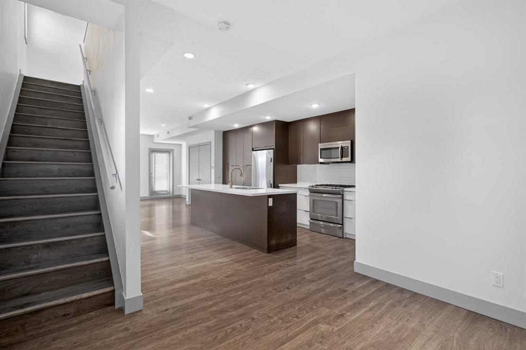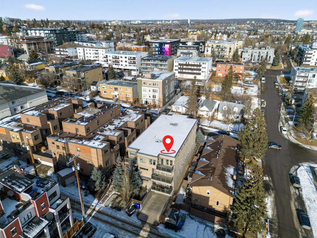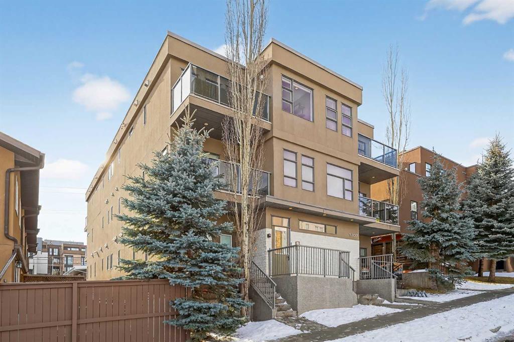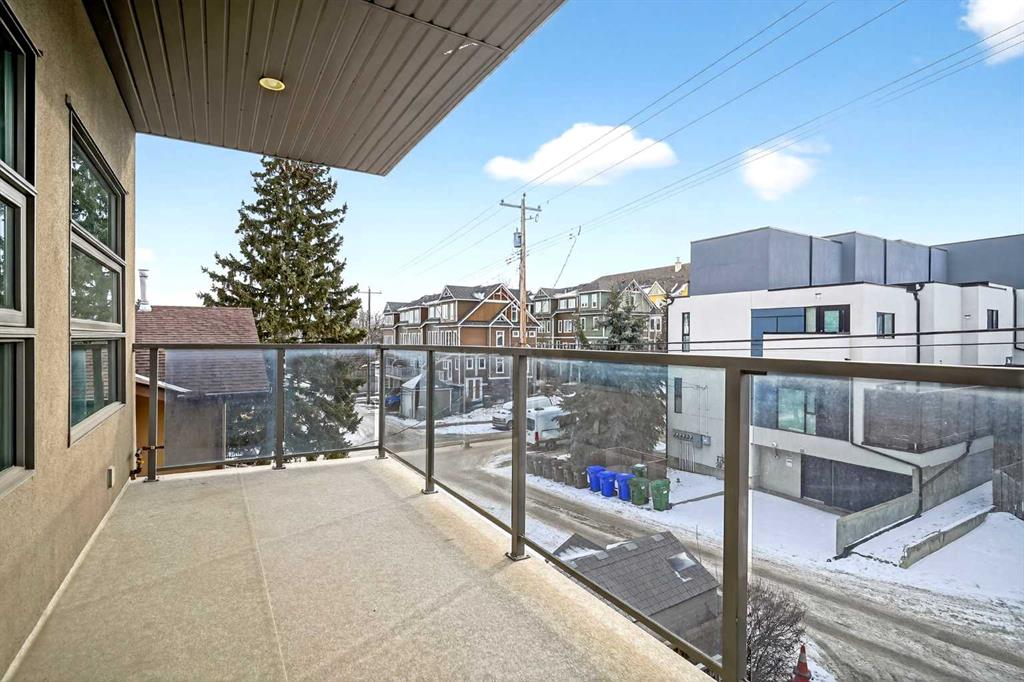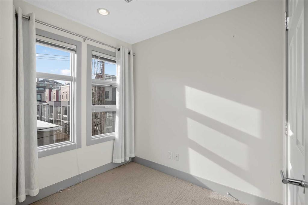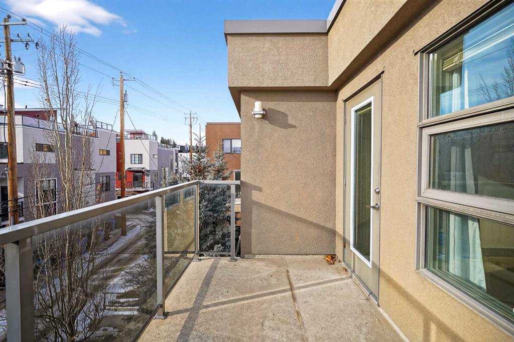 This home offers 1438 square feet, spread across two levels and rooms know what they’re meant to be. Most condos on the market are single-level and tightly packed, but here the space has room to breathe. One of the bedrooms tucks away a quiet nook—use it as an office, a media space, or somewhere to retreat when the day calls for it—along with a generous walk-in closet. Outside, the neighbourhood unfolds at an easy pace: Marda Loop sits about a fifteen-minute walk away—close enough for coffee, dinner, and errands, far enough to keep the peace at home. Set on the top floor and at the end of the building, this two-storey condo lives within a small eight-unit complex that feels more private than most. The layout is balanced and deliberate, with two true bedroom suites, each with its own ensuite, but thoughtfully different in their storage: one with a walk-in closet, the other with a wide, wall-to-wall closet that keeps everything within easy reach. The main level opens beneath nine-foot ceilings, anchored by a kitchen designed for real use rather than display—built around a quartz island, a gas stove, and upgraded stainless appliances—flowing naturally into a living area that feels open without feeling exposed. Upstairs, the separation continues, along with in-suite laundry and one of the home’s quieter luxuries: outdoor space on both levels. Two south-facing balconies—one above, one below—catch the sun from morning through evening and offer a sense of openness that’s hard to find in condo living. Below it all, a titled stall in the heated, secured underground parkade keeps the practical side of life as thoughtfully handled as the rest.