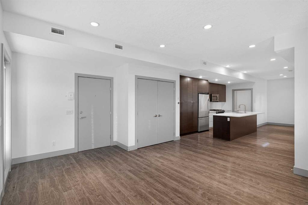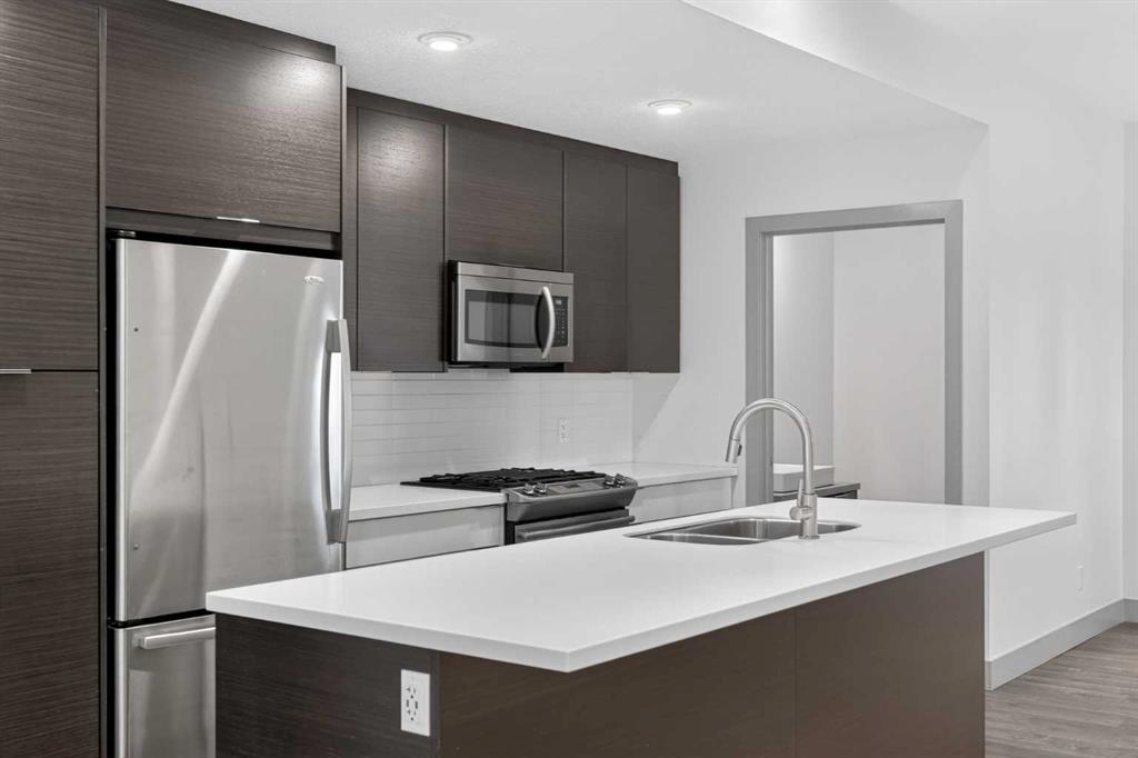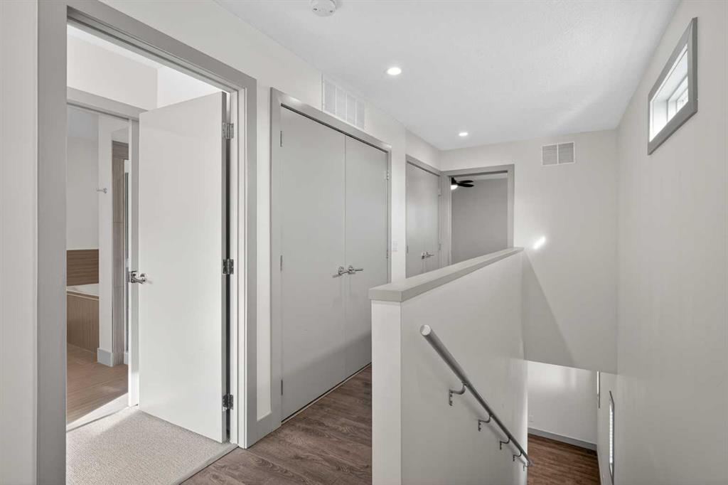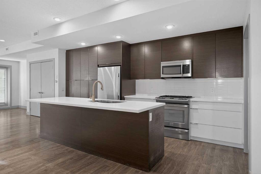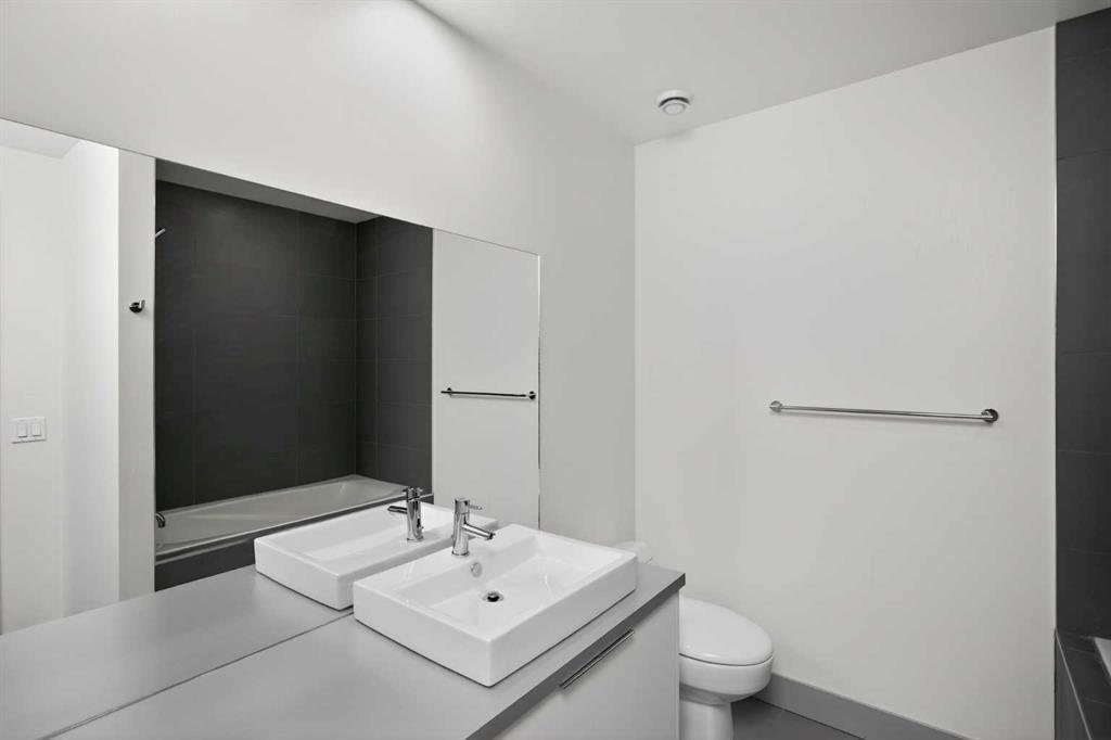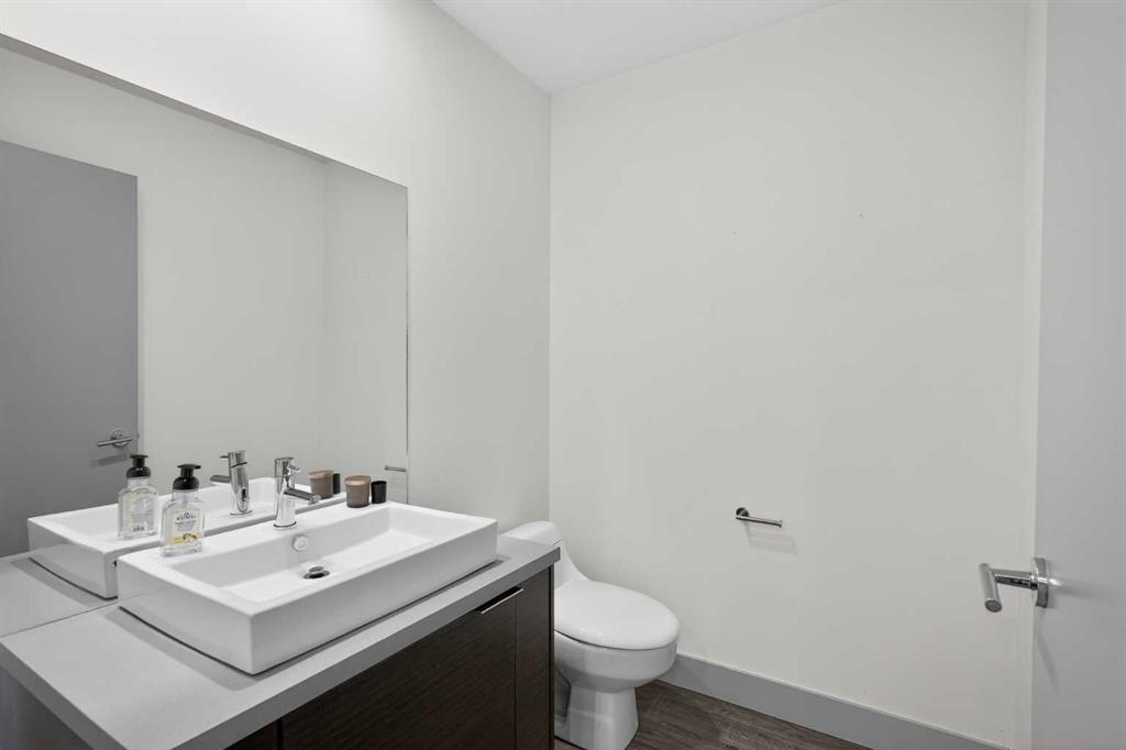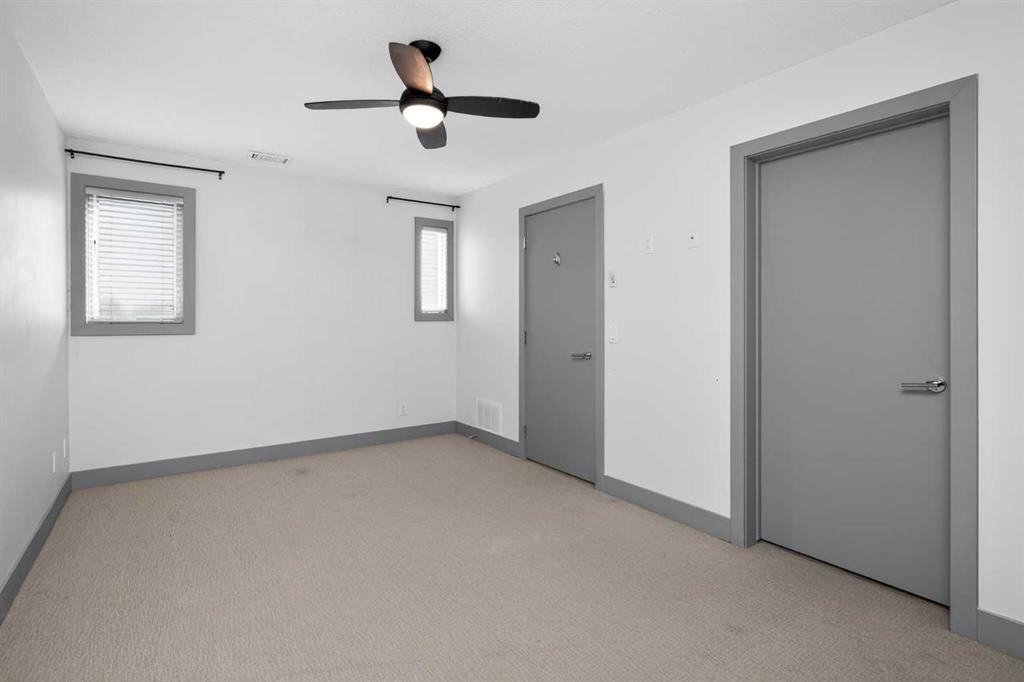 This home offers 1438 square feet, spread across two levels and rooms know what they’re meant to be. Most condos on the market are single-level and tightly packed, but here the space has room to breathe. One of the bedrooms tucks away a quiet nook—use it as an office, a media space, or somewhere to retreat when the day calls for it—along with a generous walk-in closet. Outside, the neighbourhood unfolds at an easy pace: Marda Loop sits about a fifteen-minute walk away—close enough for coffee, dinner, and errands, far enough to keep the peace at home. Set on the top floor and at the end of the building, this two-storey condo lives within a small eight-unit complex that feels more private than most. The layout is balanced and deliberate, with two true bedroom suites, each with its own ensuite, but thoughtfully different in their storage: one with a walk-in closet, the other with a wide, wall-to-wall closet that keeps everything within easy reach. The main level opens beneath nine-foot ceilings, anchored by a kitchen designed for real use rather than display—built around a quartz island, a gas stove, and upgraded stainless appliances—flowing naturally into a living area that feels open without feeling exposed. Upstairs, the separation continues, along with in-suite laundry and one of the home’s quieter luxuries: outdoor space on both levels. Two south-facing balconies—one above, one below—catch the sun from morning through evening and offer a sense of openness that’s hard to find in condo living. Below it all, a titled stall in the heated, secured underground parkade keeps the practical side of life as thoughtfully handled as the rest.