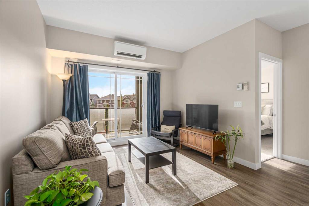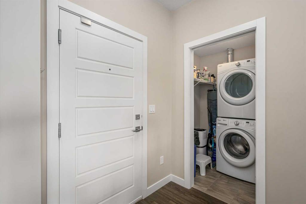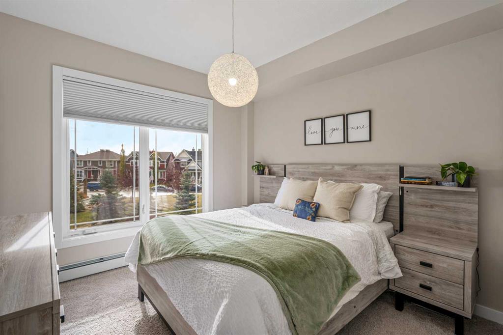 Gorgeous and meticulously maintained 2-bed, 2-bath condo in Auburn Bay—Calgary’s four-season lake community. Framed by 9-ft ceilings and expansive south-facing windows, this immaculate home is bright, airy, and finished with thoughtful upgrades throughout. Enjoy mountain views and fresh breezes all year long. The gleaming white kitchen is a true standout for cooks and entertainers alike: soft-close cabinetry and drawers, quartz countertops, classic subway-tile backsplash, stainless steel appliances, and a large island that anchors the open-concept plan. Dining and living spaces flow seamlessly for easy hosting, while durable luxury vinyl plank runs through the entire main living space for a clean, modern look. The king-sized primary suite features a wall of operable windows, a generous walk-through closet, and a 4-pc ensuite with a double vanity and oversized shower. Smartly separated on the other side of the home, the second bedroom sits adjacent to a full 4-pc bath—ideal for guests, roommates, or a quiet home office. A proper laundry room with stacked washer/dryer keeps chores convenient and out of sight. Step outside to a sunny, south-exposed oversized balcony complete with a privacy wall and BBQ gas line—perfect for morning coffee or sunset dinners overlooking the green courtyard and mountains beyond. The pet-friendly building (board approval) adds everyday convenience with a dog wash, bike storage, and even a bocce ball court. Lifestyle is the headline here. You’ll love the easy access to Auburn Station’s shops, services, and restaurants—grab groceries, a quick bite, or your morning latte without getting in the car. Stroll the community’s extensive pathway network, connect to the wetlands, or head to Auburn House and the private lake for year-round fun: beach days, paddleboarding, skating, and community events that make everyday living feel like a mini-vacation. Plus, you’re moments to South Health Campus, Seton YMCA, movie theatre, additional dining, retail, and schools. This unit has never been rented—and it shows. A turnkey home with bright spaces, quality finishes, and a walk-everywhere lifestyle in one of SE Calgary’s most desired lake communities.