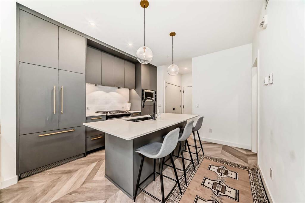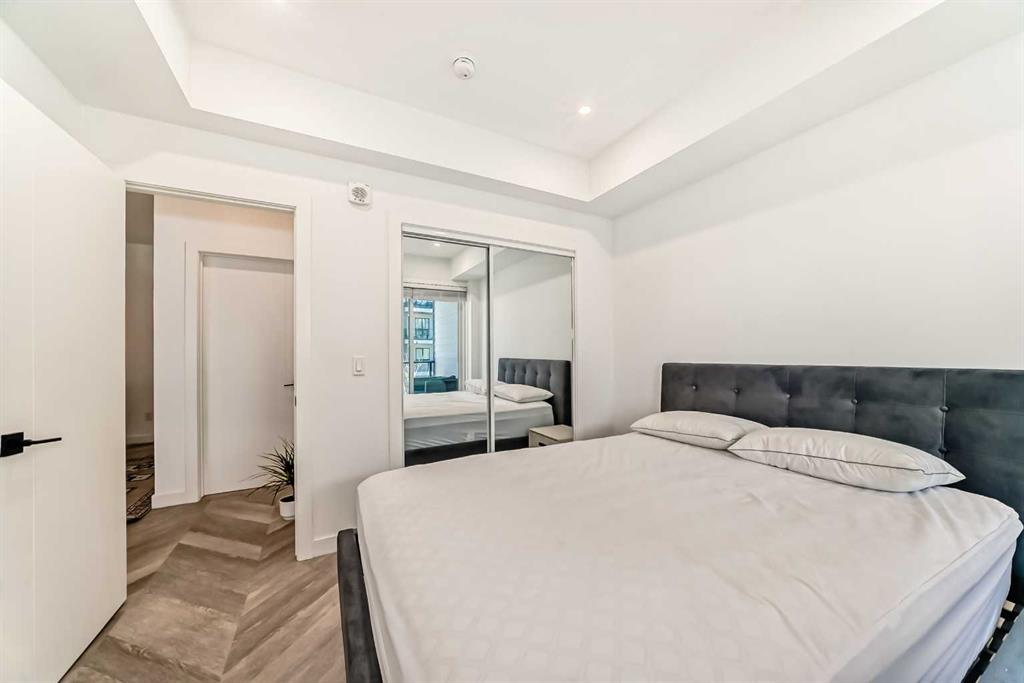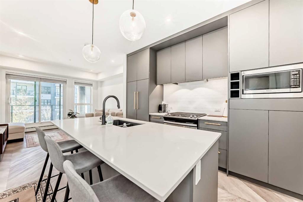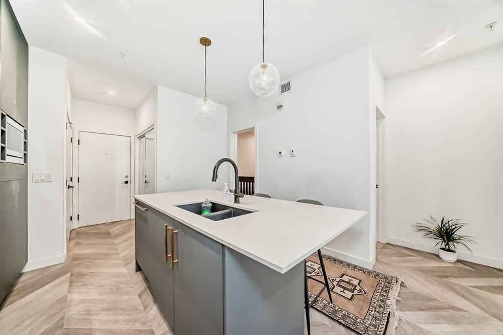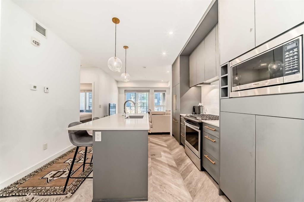 Prime University District Condo – Location and Lifestyle! Welcome to this beautifully designed 2nd floor, 2-bedroom, 1-bathroom condo located just minutes from the University of Calgary, in the heart of the dynamic University District. This home is an exceptional opportunity for first-time buyers, investors, or anyone seeking a high-value, connected urban lifestyle in one of Calgary’s premier communities. Step into a bright and spacious open-concept layout featuring large windows in the living room that optimize natural light. The contemporary kitchen is a chef’s delight, boasting luxurious quartz countertops, full-height cabinetry, built-in and stainless steel appliances—perfect for daily living and hosting guests. Both bedrooms are generously sized, offering excellent privacy and comfort with a sleek modern bathroom. Ownership includes your own spacious private balcony—ideal for morning coffee or relaxing evenings—as well as the indispensable convenience of in-suite laundry and a highly valuable titled underground parking stall and assigned storage locker. As an owner, you gain the convenience of being steps from shops, cafes, green spaces, and public transit. With the University of Calgary just a short walk or bike ride away, this investment offers unmatched lifestyle and location appreciation potential. Don’t miss your chance to own a stunning, turnkey condo in the sought-after University District. Start building equity today!