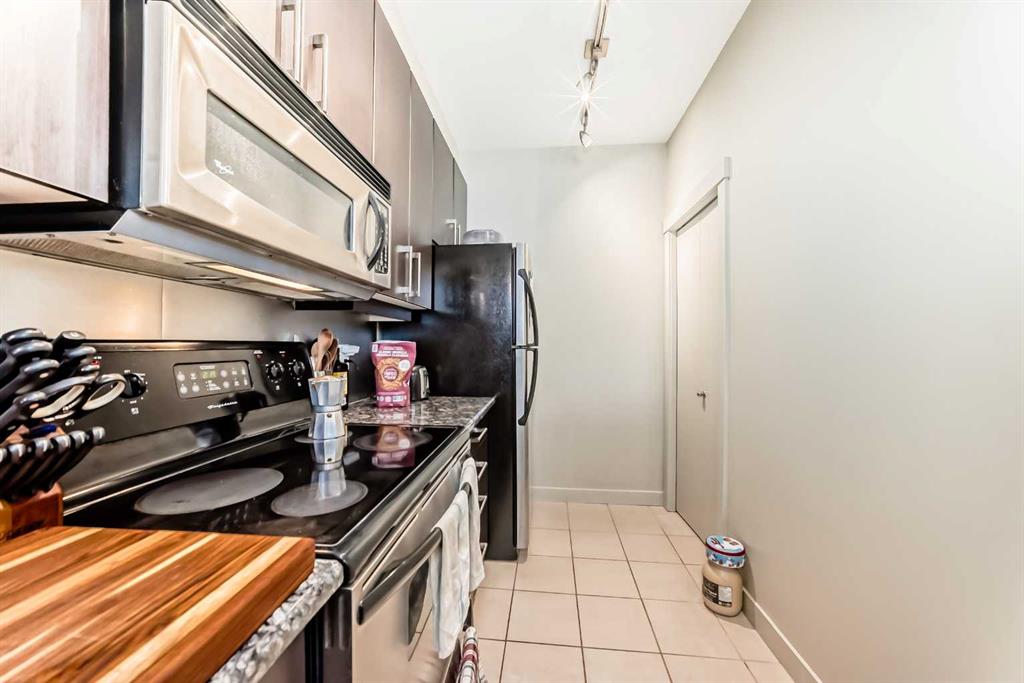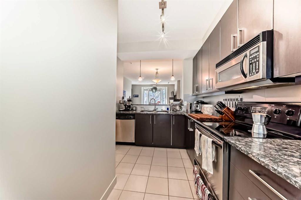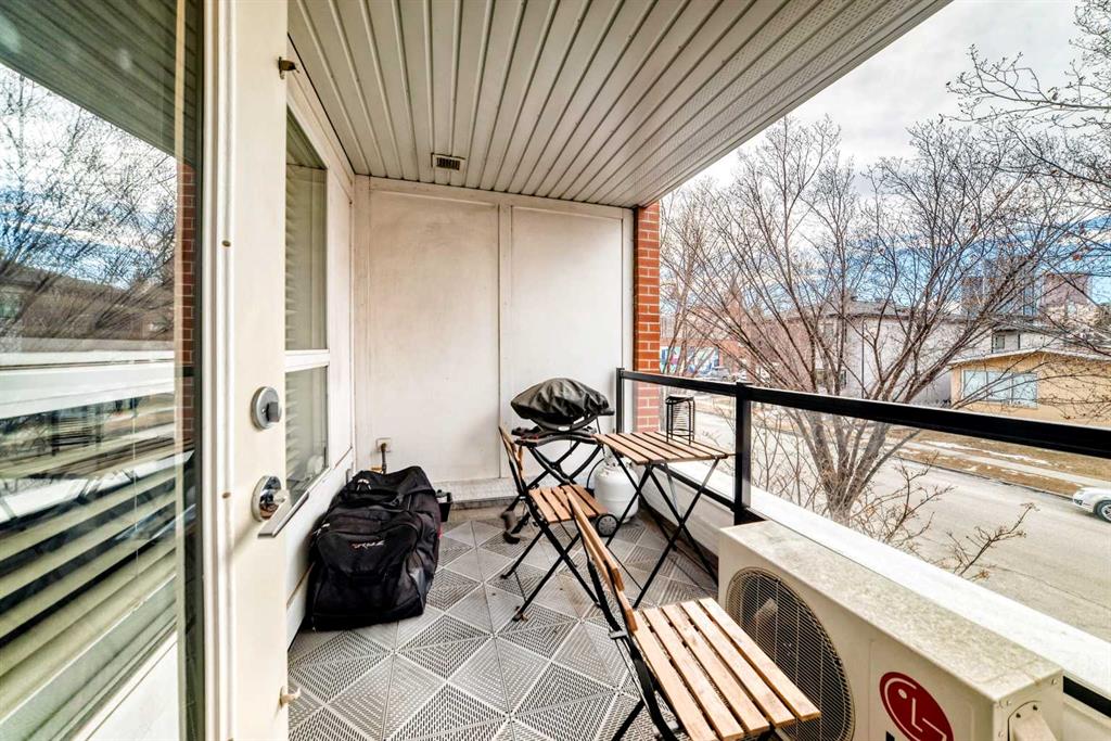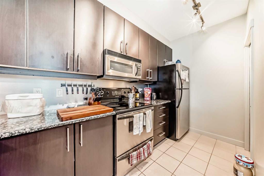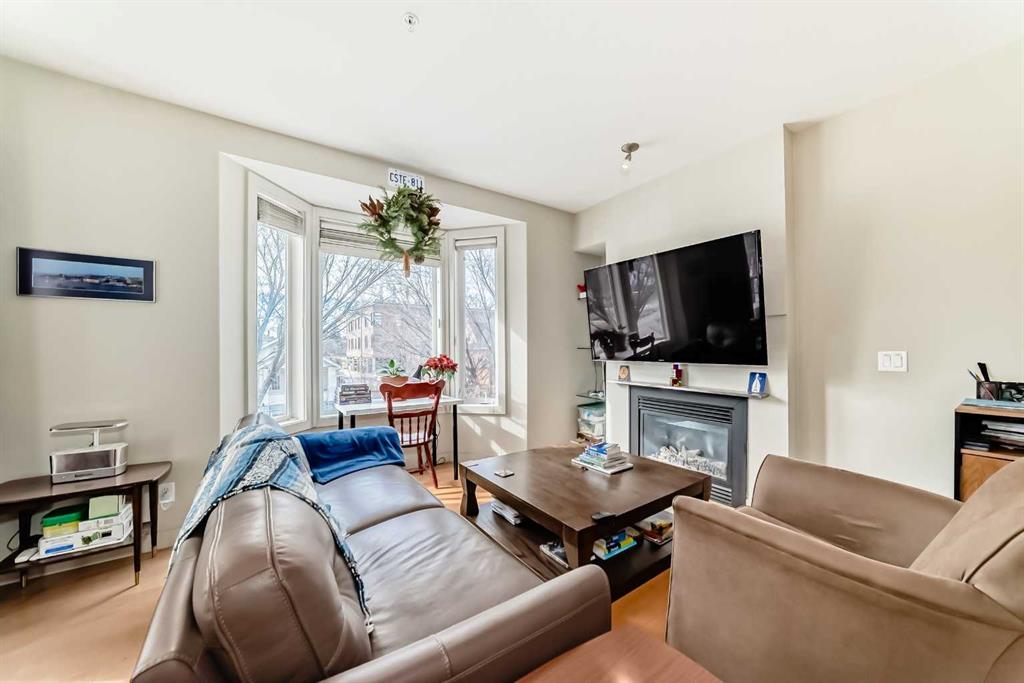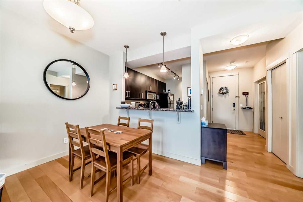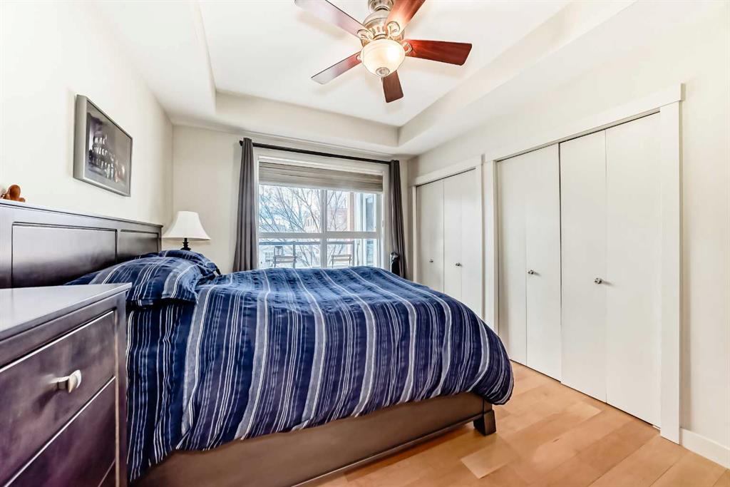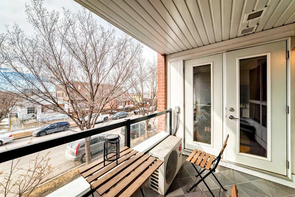 Welcome to the prestigious Bella Citta building, located in the heart of Calgary’s vibrant inner city Bridgeland community. This spacious 811 sq. ft. second-floor unit offers a thoughtfully designed layout featuring one large bedroom plus a second room, perfect for a dedicated home office or guest space. The primary bedroom is connected to the one bath for convenience. The bright, open-concept living area leads to a private west-facing balcony where you can enjoy the evening sunlight and views of the downtown Calgary skyline. The kitchen features espresso kitchen cabinets, stainless appliances along with a dishwasher and microwave hood fan. It has hardwood and tile flooring and uses in-floor heating so the whole space is warm, it also has a built-in wall-mounted air conditioner to cool it off when temperatures get hot. The apartment also comes complete with the essential urban conveniences of one secure underground parking stall and a dedicated storage locker.