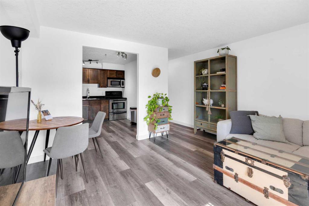 HOME SWEET HOME! Welcome to Your AIRBNB SHORT TERM RENTAL FRIENDLY CONDO in the heart of Sunnyside in sought-after and historic Kensington steps from the river and all the desirable amenities and hot spots in the area. This is a RARE OPPORTUNITY for all savvy investors and condo buyers! This turn-key, updated condo offers one bedroom, one bathroom, 573+ modern SQFT Of living space and the amazing convenience of a parking stall, in-suite laundry and a PET FRIENDLY COMPLEX (with board approval). Heading inside you will instantly fall in love with the stylish, open concept layout loaded with trendy décor and gleaming luxury vinyl plank flooring. Highlight features include a spacious foyer, sun-drenched living room with access to the sunny south facing balcony, perfect for basking in your views and enjoying a morning coffee, dining area/breakfast nook, fantastic 4 piece bathroom with stylish title, primary bedroom that could easily accommodate a king-sized bed and in-suite laundry with ample storage space. Also included with this condo is a convenient covered parking stall and assigned storage locker. This stunning condo epitomizes the perfect blend of style, comfort, and convenience. UNBEATABLE LOCATION steps from the Bow River and pathway system, the Peace Bridge, boutique shopping, pubs, coffee shops, bistros, LRT station, Downtown and all major amenities. This building does allow AIRBNB with board approval. Most of the furniture (Couch, Tv, bedroom set, dining table) could be included in the sale for a turn key AIRBNB except for select pieces. Book your private tour of this GEM today!