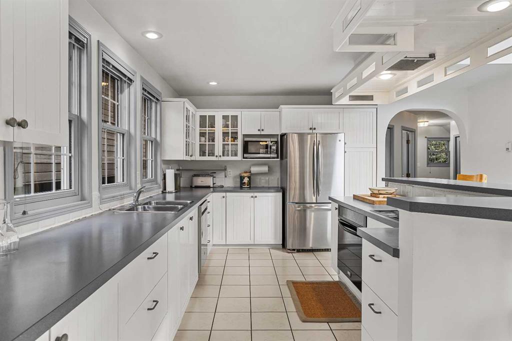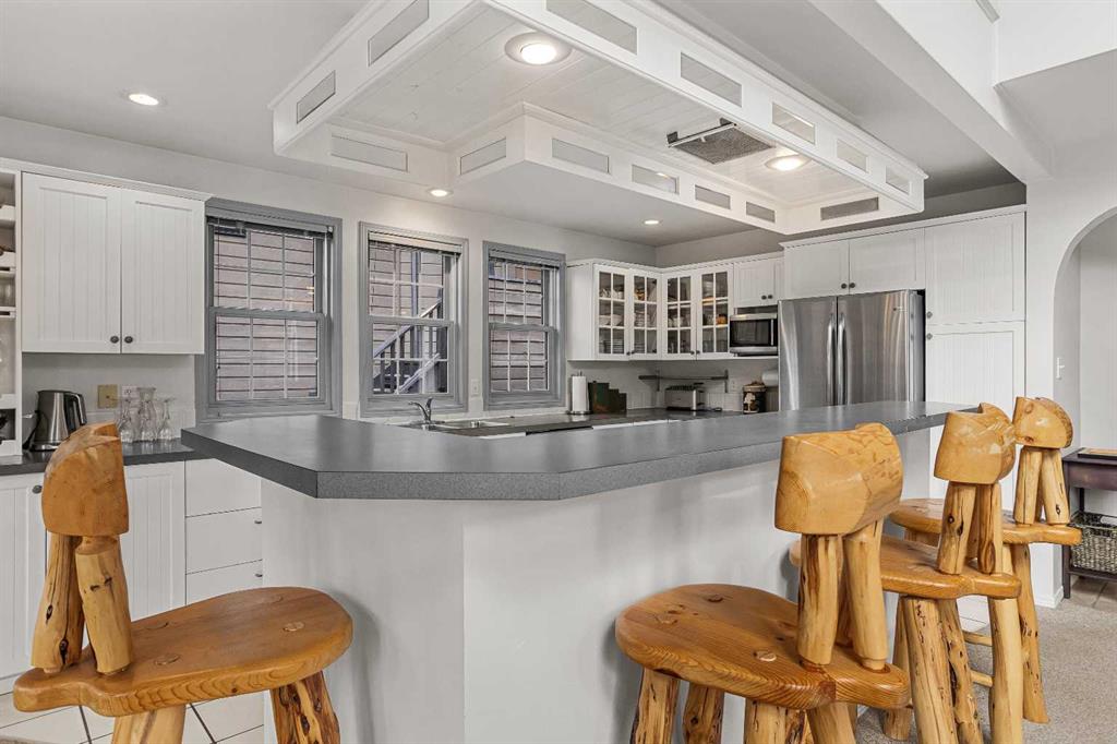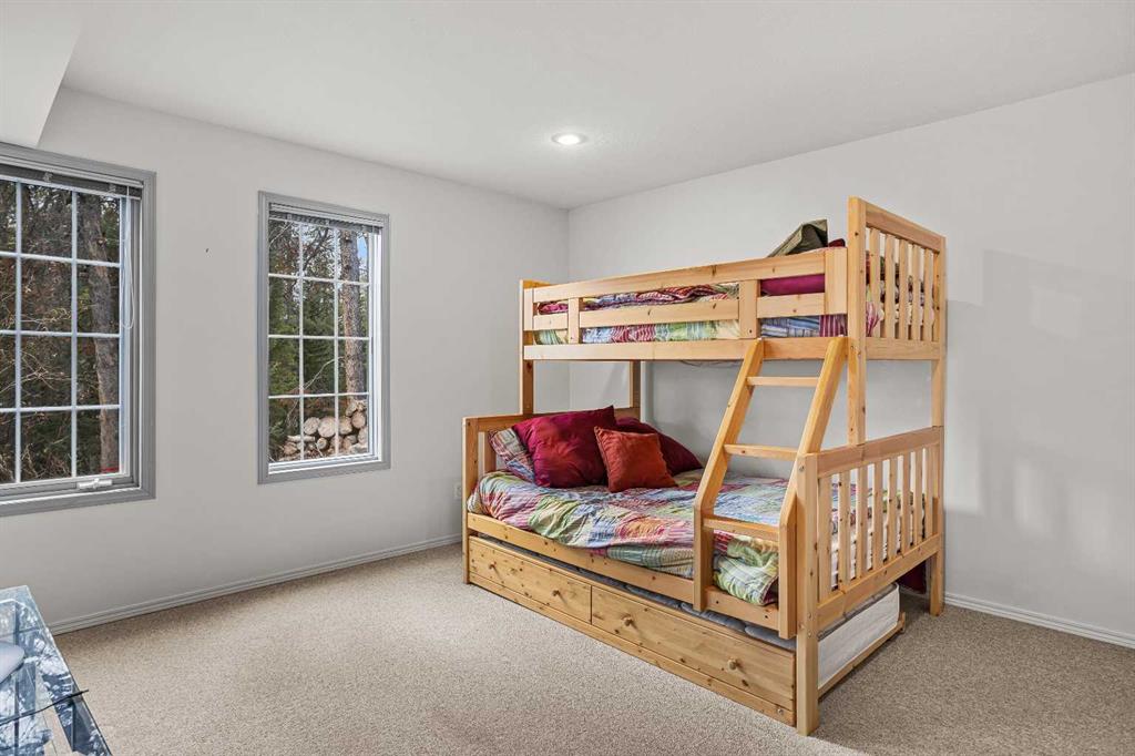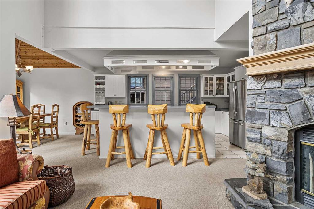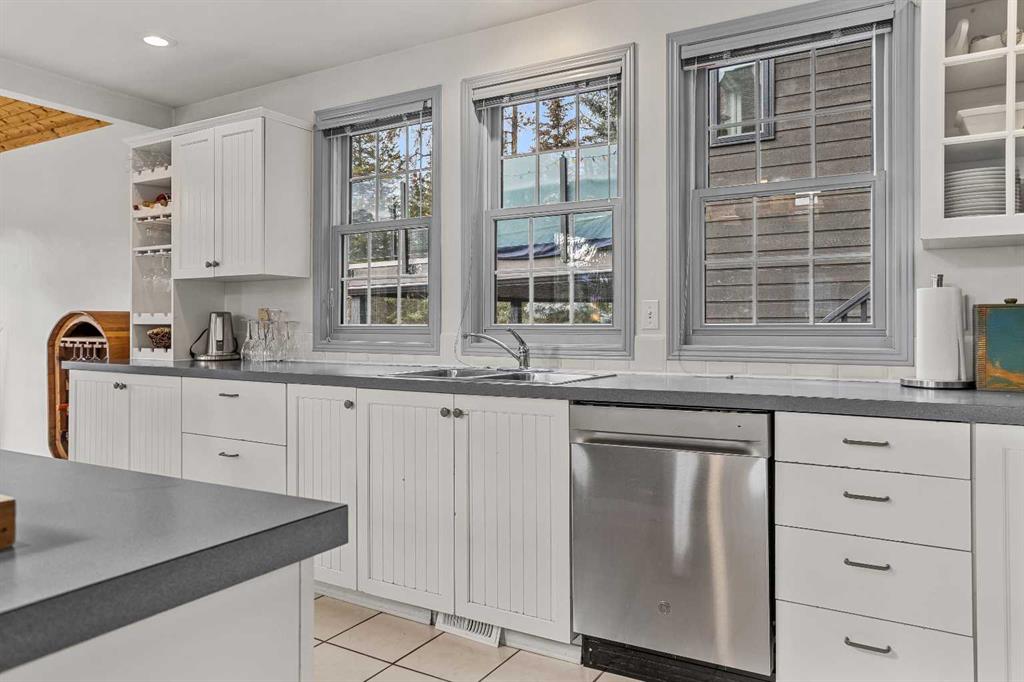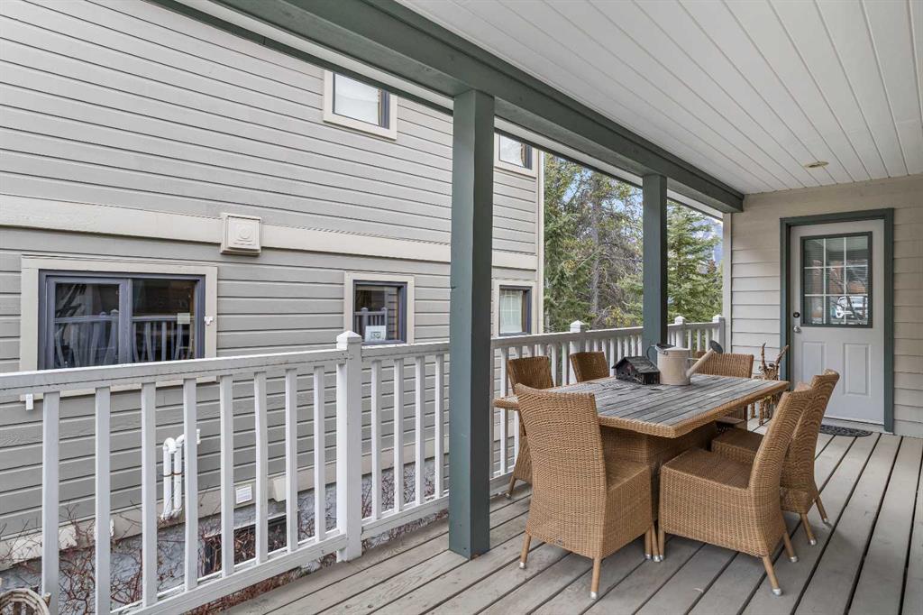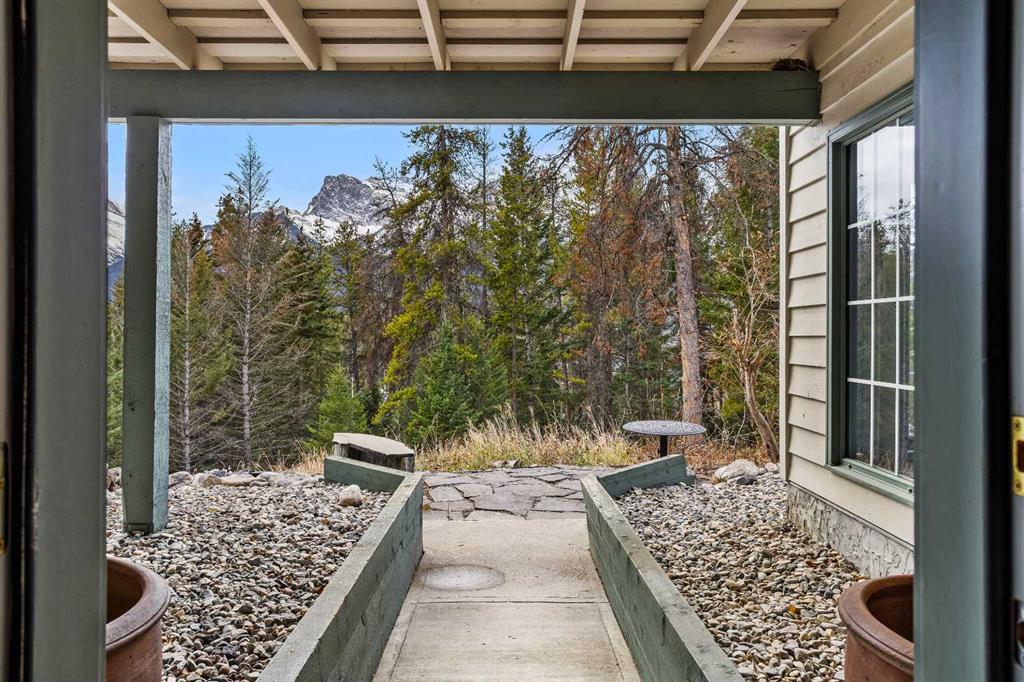 Epic mountain views and timeless character define this stunning home 2400 sq ft home, hugged in mountain light with a perfect blend of forest and and south west peak views including 3 Sisters and Lawrence Grassi . The main level welcomes you with a generous foyer and leads into a great room flooded with natural light and a feeling of space with soaring ceilings. A floor-to-ceiling stone fireplace with custom millwork anchors the living area, setting the tone for cozy mountain evenings. The massive kitchen offers an eat-up bar, abundant cabinetry, and a dining area wrapped in windows — the perfect place to gather and take in the views. Upstairs, the primary suite has an ensuite and office nook open to the main level. The walkout level features three additional bedrooms, a large family room, and full bathroom plus access to a tranquil lower patio surrounded by forest. Outdoor living is exceptional with a wrap-around front verandah for sunrise coffee, a sunny back deck for BBQs, and a lower area ready for your own Nordic-style spa — space for a hot tub, cold plunge, and sauna. The yard feels like you’re alone in nature, yet you’re just a short stroll from downtown Canmore’s cafés, trails, and shops. This well-cared-for home is far from cookie-cutter — a true mountain escape that blends thoughtful design, privacy, and that one-of-a-kind feeling of light, calm, and connection to nature only found in the Rockies.