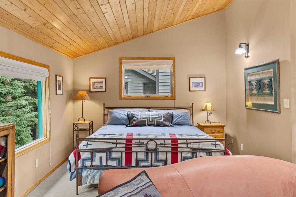 Must be seen! A stylish family home on Canmore’s historic Hospital Hill. Set on a quiet cul-de-sac, just steps from wooded trails leading to downtown, the Nordic Centre and the town’s extensive pathway network. Enjoy over 2,900 sq ft of thoughtfully designed living and entertaining space with 4 bedrooms, 3 bathrooms and 2 kitchens. This warm mountain home features vaulted ceilings throughout, enhancing the sense of space and light. The stunning garden room is filled with sunshine and opens to a tranquil rear yard backing onto a wildlife corridor. There, a charming bunkhouse offers a cozy escape for all ages. The entire upper level of the home creates a spacious and luxurious primary retreat, complete with a private balcony and beautiful mountain views. The lower level provides a self-contained one-bedroom suite with private entry – ideal as a rental unit or for extended family.