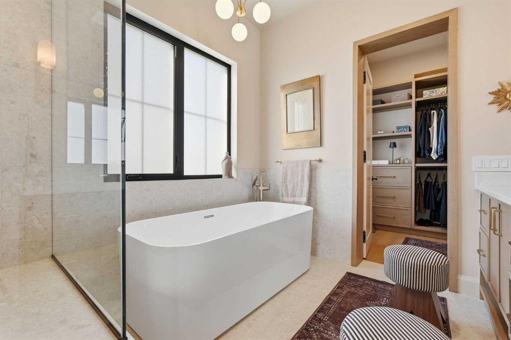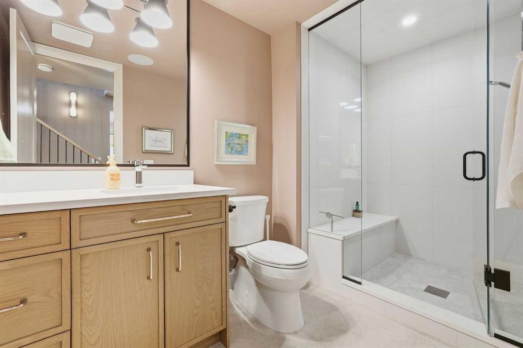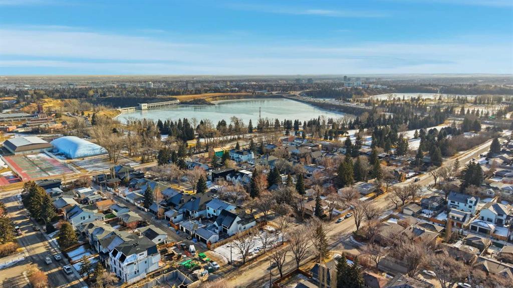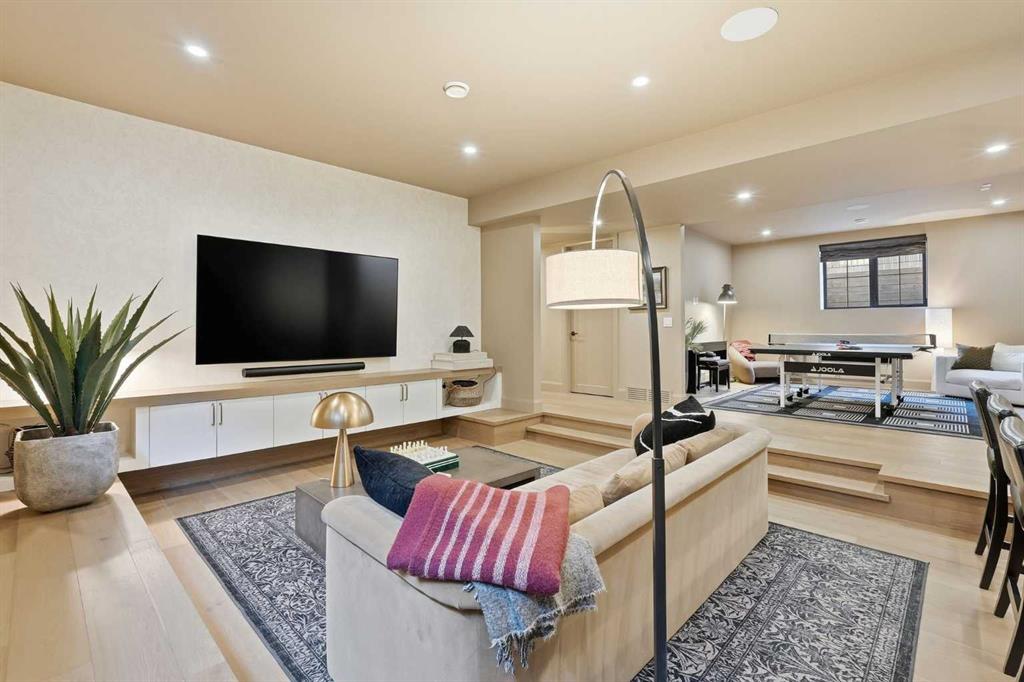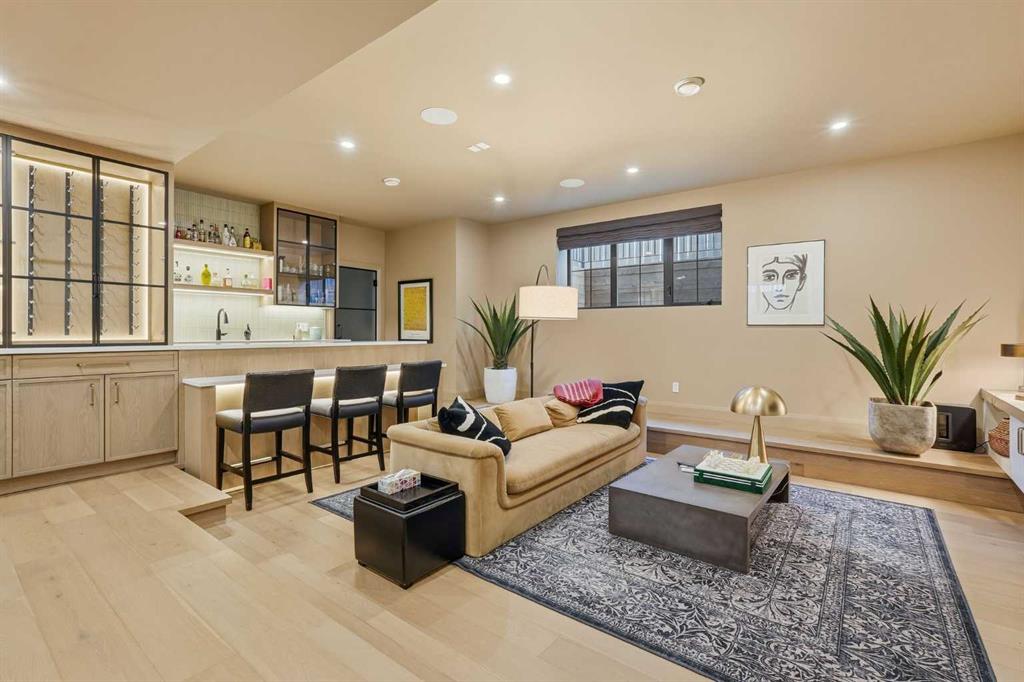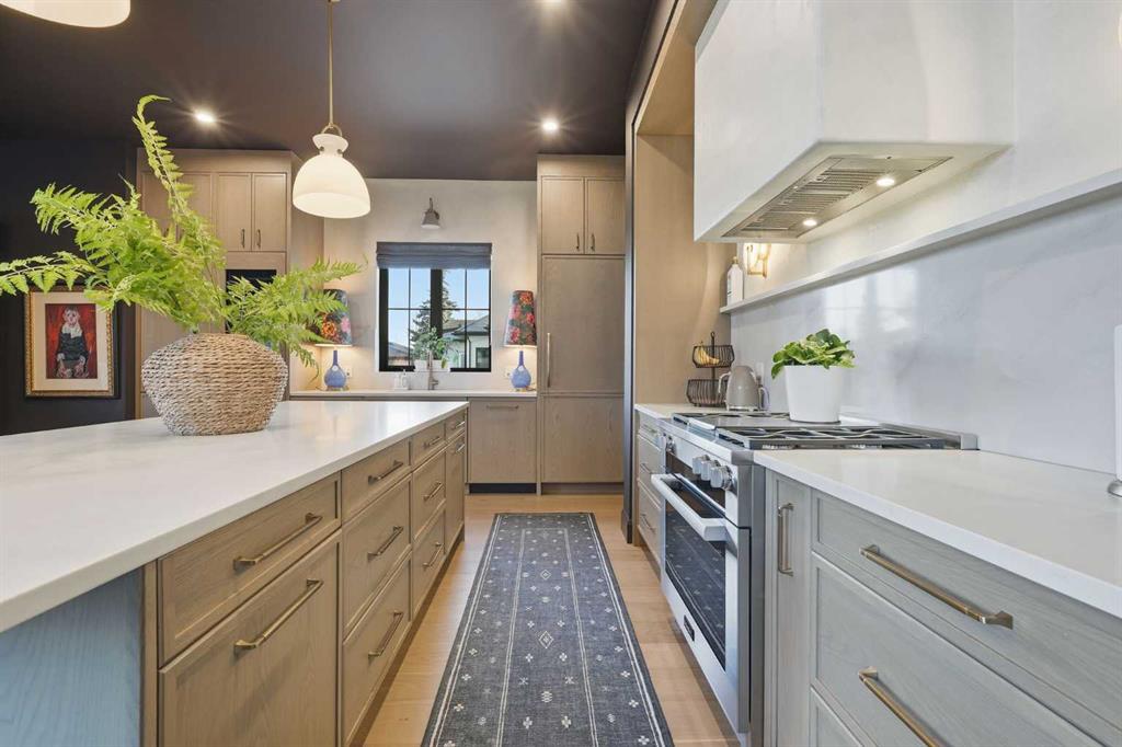 Enduring sophistication defines this beautifully crafted 2+2 bedroom residence in North Glenmore Park, offering more than 4,200 sq ft of refined living space with exceptional attention to detail throughout. The main level showcases wide-plank hardwood floors and soaring ceilings, setting the stage for an impressive living room highlighted by a dramatic vaulted ceiling with chandelier, a floor-to-ceiling window, and a stunning Venetian plaster fireplace. The thoughtfully designed kitchen is a chef’s delight, appointed with custom oak cabinetry, premium quartz countertops, a generous island with eating bar, high-end appliances, and a well-equipped butler’s pantry. Adjacent to the kitchen, the spacious dining area easily accommodates gatherings of family and friends. The main floor primary retreat provides a serene escape, complete with a walk-in closet and a luxurious 6 piece ensuite featuring in-floor heat, dual sinks, a freestanding soaker tub, and an oversized shower with heated bench and floor. A second bedroom with its own 4 piece ensuite offers ideal comfort for guests. A stylish 2 piece powder room, a practical mudroom with ample storage, and a dedicated laundry room with sink and cabinetry complete the main level. Upstairs, the loft area offers an inviting space to unwind, featuring a family room, games area, wet bar, 2 piece bath, and a charming library nook. The fully developed basement extends the home’s versatility with heated floors, a family/media room with bar and wine storage, and a separate games area—perfect for movie nights or entertaining. A glass door behind the bar leads to a room roughed in for a future sauna and shower. Two additional bedrooms, two 3 piece baths (including one ensuite & the other with a steam shower), and a second laundry room complete the lower level. Additional highlights include central air conditioning, custom draperies, two vacuum systems with attachments, and built in speakers. Outdoors, enjoy custom window well railings, an underground irrigation system, a sunny south-facing front patio, and a private back deck with natural gas BBQ hook-up and a beautiful wood-burning fireplace. Parking is effortless with a triple detached garage wired for 220 volt service. Ideally located within walking distance to Glenmore Athletic Park and close to two golf courses, top-rated schools, shopping, public transit, and major routes including Crowchild and Glenmore Trails, this exceptional home offers an unparalleled blend of luxury, comfort, and convenience.