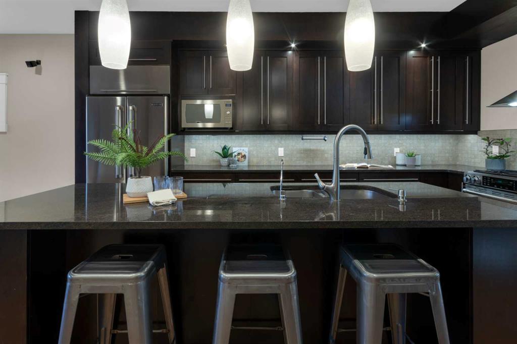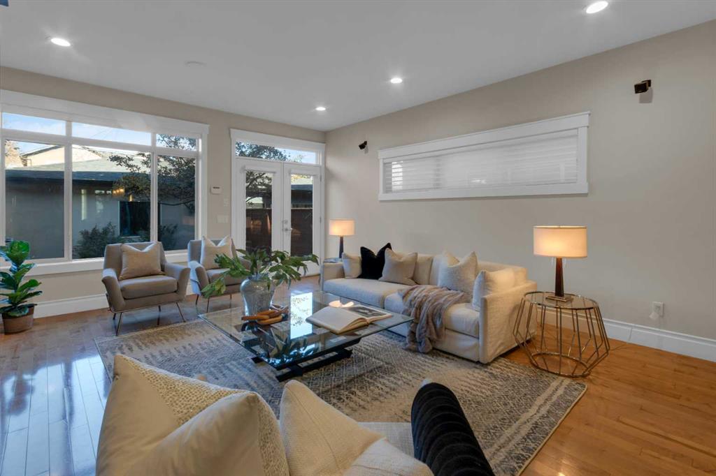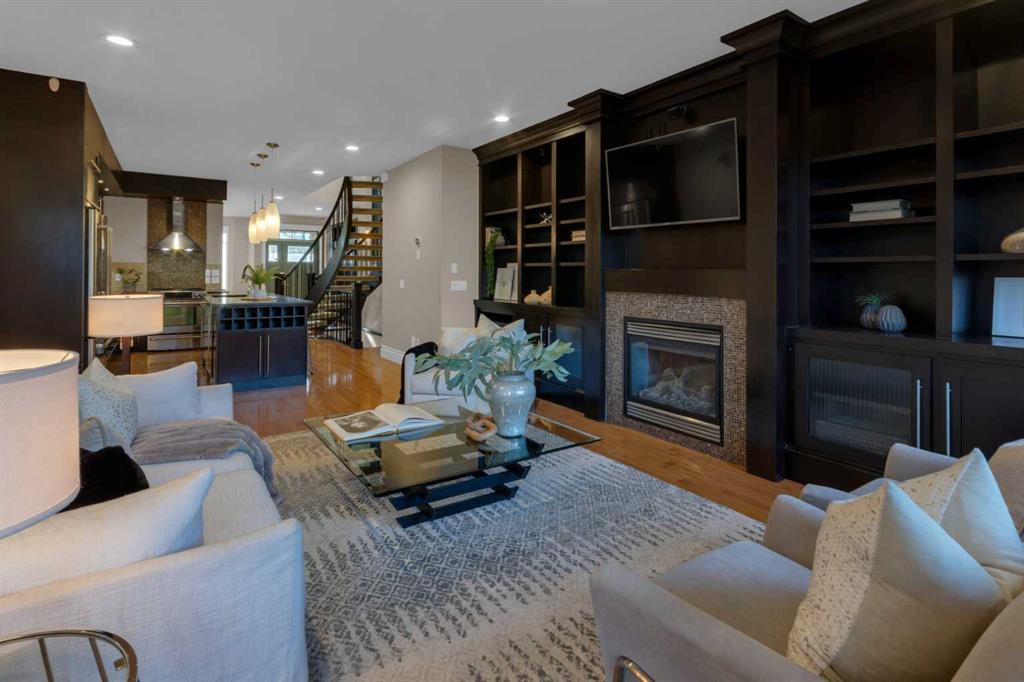 Beautiful family home located on a quiet tree-lined street in the sought after community of Altadore. This spacious 2-storey, 4 bedroom house has a great layout with many standout features including the elegant curved staircase with open risers, 3 gas fireplaces, 3 skylights, built-in cabinetry, built-in speakers, and Hunter Douglas blinds throughout. Brand new hot water tank (November 2025) and roof shingles replaced in 2024. Upon entering the home you will notice the natural light throughout, quality finishing details, and functional layout with spacious room sizes. The foyer has a custom built-in closet, and leads to the bright dining room, roomy enough to accommodate a large dining table along with additional space for a seating area or other dining room furniture pieces. The kitchen offers granite countertops, espresso-stained cabinetry including a built-in wine rack and end of island cabinetry, breakfast bar seating at the island, stainless steel appliances including the gas range, and reverse osmosis water system. The kitchen opens onto the living room featuring a gas fireplace, full built-in cabinetry wall, and large windows to enjoy the view of your private yard. The powder room completes the main level. On the upper level you will find the bright primary suite with vaulted ceiling, south-facing balcony, built-in cabinetry, dual-sided fireplace and elegant ensuite with heated floors, dual vanities, soaker tub, and full tiled shower with rain drop shower head and glass door. The two additional bedrooms upstairs are good sizes and are located near the 4-piece bathroom that has one of three skylights, fully tiled shower/tub combo and vanity with granite countertop. Convenient upstairs laundry with storage and a drying rod, and 2 large linen/storage closets complete the upper level. The fully finished basement includes the 4th bedroom, full bathroom with heated floor, family room with gas fireplace and built-in cabinetry, wet bar with beverage fridge and wine shelving, and utility room. Fully fenced private yard with landscaping, composite deck and a double garage with storage shelving. This location has so much to offer! Enjoy Glenmore Athletic Park, River Park, several schools within walking distance, all the amenities that Marda Loop has to offer and easy access in and out of the community. Homes like this do not come on the market in Altadore often so do not delay viewing this great property!