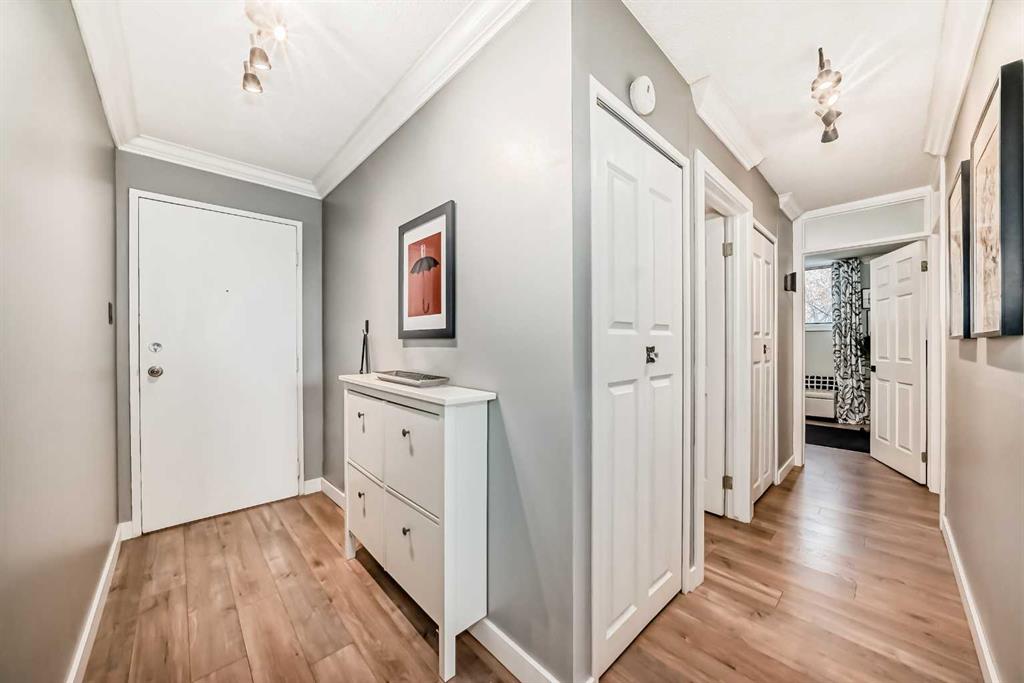 *** OPEN HOUSE: THIS SUNDAY, NOVEMBER 16: 11 AM – 3 PM *** Get ready to fall in love! Absolutely STUNNING home! FULLY RENOVATED HOME! Sunny South Facing Home | End Unit | One of the few complexes in this area WITHOUT Post Tension Cables. Proudly welcoming you home to Manor House – this well-cared for, well managed complex features this STUNNING 2-bedroom home that has been transformed and modernized, in the desirable Beltline neighbourhood – just steps away from all the action! Your new home is ideally tucked away in a quiet corner. Inside you will instantly appreciate the new beautifully elegant luxury vinyl plank flooring throughout the home which matches the modern décor throughout. The home features exceptional updates and upgrades throughout, which start out in the striking kitchen. The kitchen has been completely renovated, highlighted by all-new cabinetry and stunning Quartz gun metal grey countertops, with undermount sink. Counter level seating awaits, perfect for visiting with friends and family as you entertain from your exquisite gourmet kitchen. Updated SS appliances await. There is ample space for a deep freeze IN your kitchen, without losing any counter or cupboard space! Just off the kitchen is a large dining room, which can easily host a sizable dining table. This home features beautiful crown moulding throughout; as well as beautifully updated lighting throughout. The large stunning living room is an exceptional space, large enough to accommodate all of your furniture, providing plenty of space to relax or provide the ideal space to entertain friends and family! The tour continues with 2 large closets, and an updated & stunning 4-pc bathroom. The Primary bedroom is one of the largest you will find – hosting a King size bed, dresser and nightstands with ease, while still allowing for ample space leftover. The Primary closet features custom built-ins, easily organizing your wardrobe. The secondary bedroom is of excellent size and is the ideal place to host your home office, guest bedroom or use as a Yoga space! Updated vinyl windows allow your home to be energy efficient year-round! The large (11.5x 5 ft) balcony is ready for your enjoyment – offering endless sunshine with a sunny south facing view, perfect to enjoy in the warmer months! There is FREE laundry located on every floor of this superb building. Your new home comes with one assigned secure parking stall + additional storage locker for your items you don’t use every day. There is so much to love about this unique home including its location! A true ‘walker’s paradise’ with a walk score of 99/100 – it doesn’t get any better than this! You can walk or bike easily to work, and take in and enjoy the multitude of local shops, restaurants, pubs, grocery stores, and so much more! Book your Private viewing today – this one won’t last long!