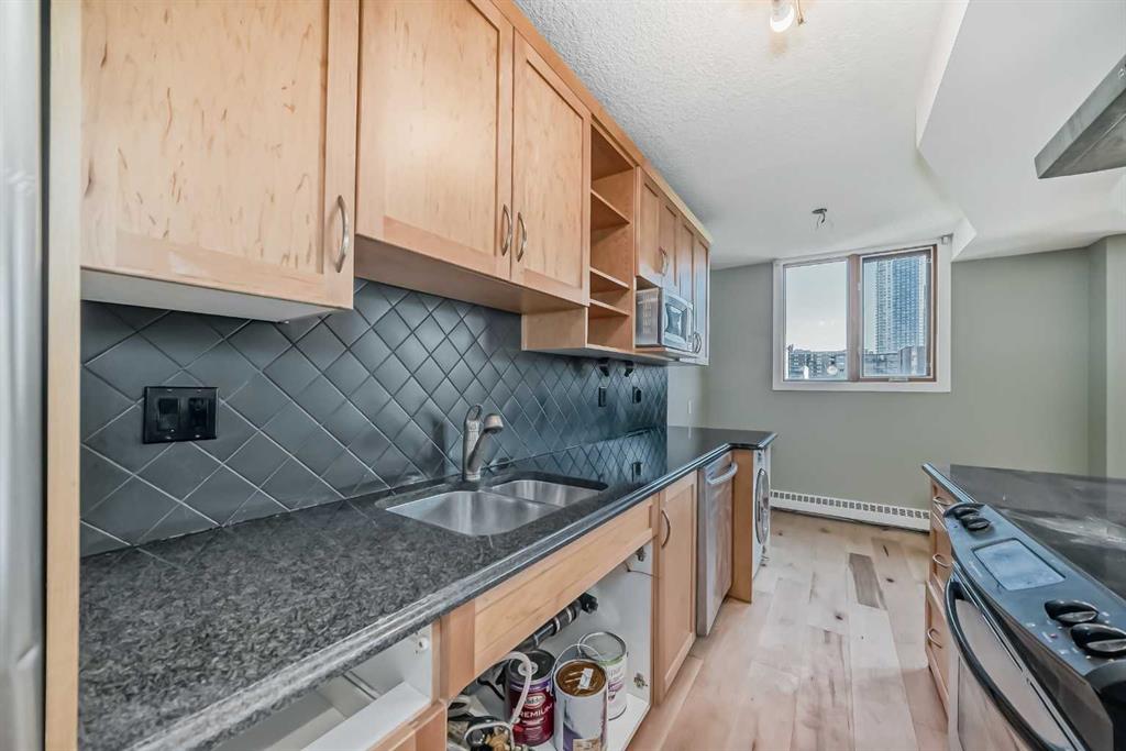 Discover an exceptional opportunity to own a two-bedroom, south-facing apartment in Calgary’s vibrant Beltline neighborhood. This court-ordered sale offers approximately 850 square feet of thoughtfully designed living space in The Biltmore, a sought-after building overlooking the serene Thompson Family Park. The apartment features an open-concept layout with hardwood flooring, complemented by a spacious kitchen with maple wood cabinets, granite countertops, and a mosaic-tiled backsplash. A built-in European-style washer and dryer combo adds convenience, while the cozy gas fireplace, finished with stylish subway tiles, creates a warm and inviting atmosphere. The unit includes two well-appointed bedrooms and a full bathroom, complete with a soaker tub surrounded by elegant tile and a separate shower. Residents of this pet-friendly building enjoy the added benefit of no size or breed restrictions, subject to board approval. The property also includes an assigned parking stall and condo fees that cover all utilities, including electricity. This is a rare chance to secure a modern, well-located apartment in one of Calgary’s trendiest areas. Don’t miss out on this unique investment opportunity.