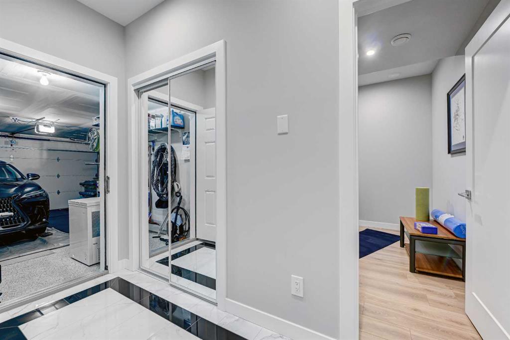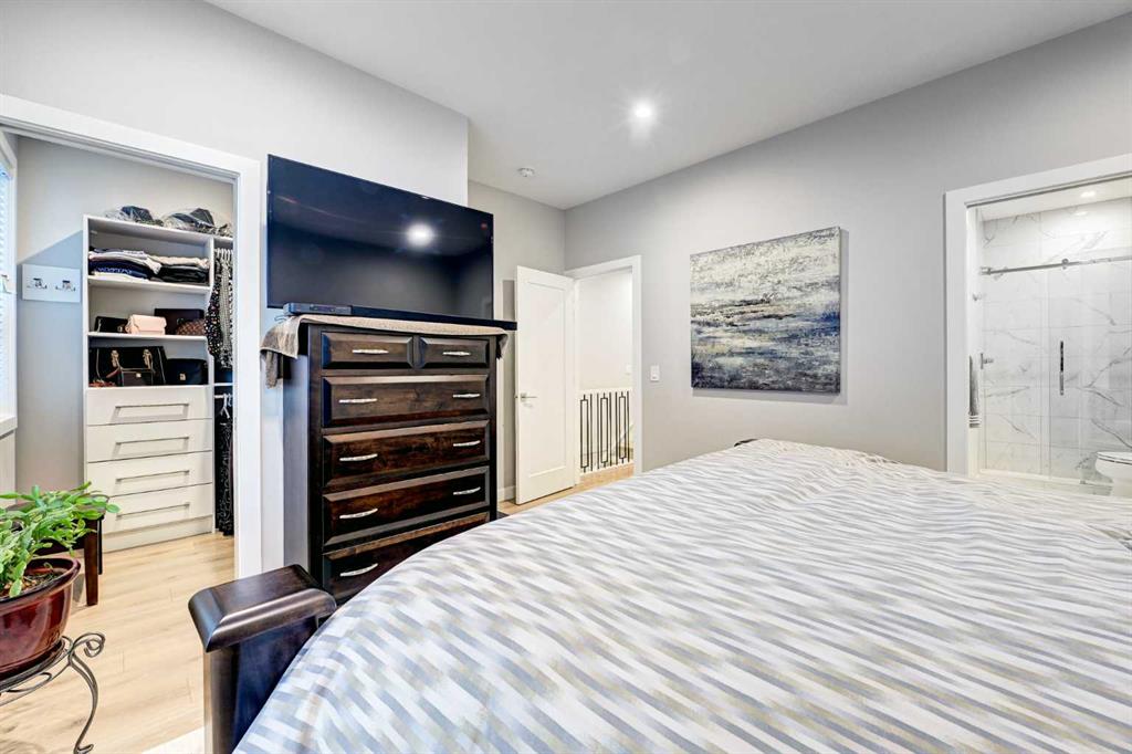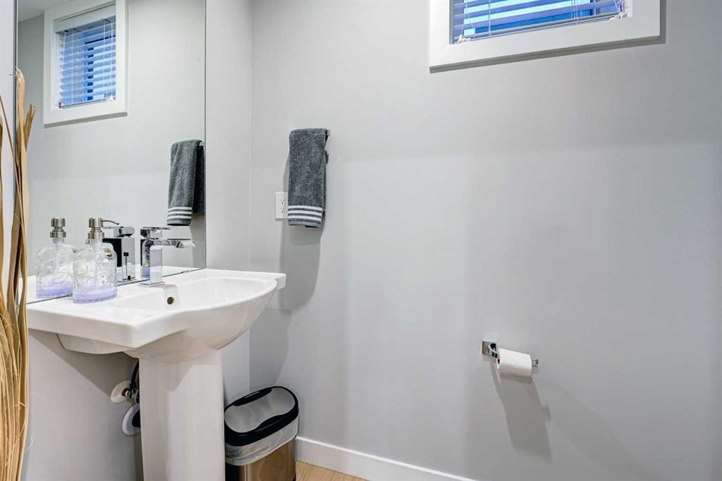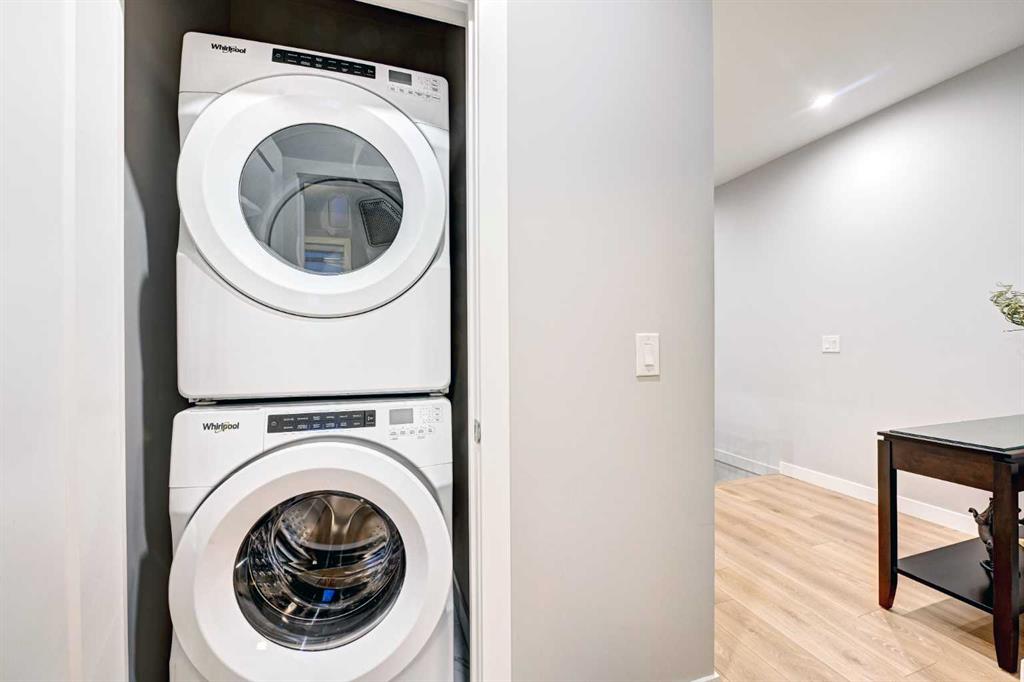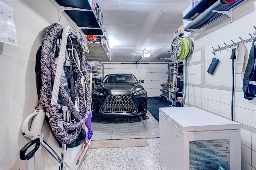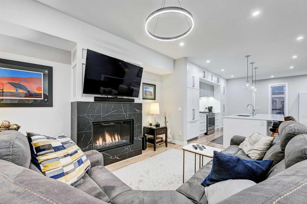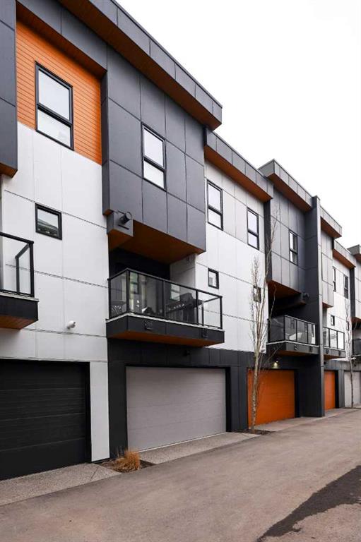 This modern, chic townhome offers 1,768 sq ft of beautifully developed space and is in impeccable condition with a thoughtfully designed floor plan and 9-ft ceilings on both the main and upper levels. The main floor is bright and wide open, highlighted by an expansive kitchen with a gas range, built-in fridge, and quartz countertops, flowing seamlessly into comfortable dining and living areas. Step outside to a spacious deck complete with a gas BBQ outlet—perfect for entertaining. Upstairs, you’ll find three generously sized bedrooms, including a primary retreat with a large walk-in shower and double sinks, plus the convenience of upper-floor laundry. The lower level adds valuable flexibility with an additional room ideal for a gym or home office. The double attached garage is insulated, heated, and finished with an epoxy floor, with all shelving included. This is also one of the rare units in the complex equipped with air conditioning. Located in West District—a vibrant and highly walkable community with a growing list of amenities, this home offers exceptional convenience. Enjoy nearby parks, including a dog park, walking paths, and quick access to Stoney Trail and Bow Trail for an easy commute anywhere in the city. Truly an exceptional home that is expected to sell quickly.