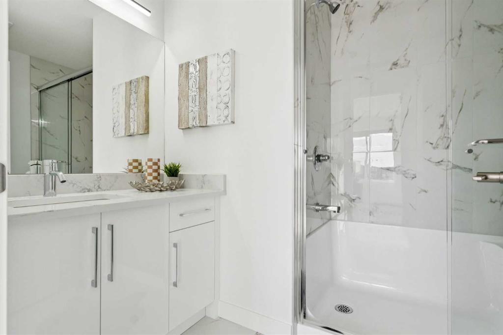 LOW CONDO FEES | MOVE-IN READY | 5 BEDROOM END UNIT | MAIN-FLOOR PRIVATE GUEST SUITE | TOTAL 1,969 SQ FT | Welcome to Unit 205 at Saddlecrest Living, a 5-bedroom, 4-full bath end unit townhome located in a brand-new 43-unit community in Calgary’s Northeast. This home is spread across three levels with an attached garage, offering both space and flexibility for families. A standout feature is the main-floor private guest suite with a full bathroom and separate rear entry, ideal for extended family, guests, or future rental income potential. The main living area features an open-concept layout with 9-foot ceilings and triple-pane windows that bring in natural light while improving energy efficiency. The kitchen is finished with floor-to-ceiling cabinetry and premium quartz countertops, and stainless steel appliances, creating a clean and modern look. Upstairs, the primary bedroom includes a custom shower with a built-in seat, while all bathrooms feature full-height tile for a contemporary finish. Carpeted bedrooms add comfort, and luxury vinyl plank flooring on the main level ensures durability and easy maintenance. Built for Calgary’s climate, the exterior combines stucco and Hardie siding for hail protection and low maintenance. Saddlecrest Living is a connected, family-friendly community close to schools, playgrounds, Saddletowne LRT, shopping, medical clinics, and fitness centres, with quick access to Stoney Trail, Calgary International Airport, Costco, CrossIron Mills, and New Horizon Mall. Whether this is your first home, a step up for a growing family, or a smart investment, Unit 205 offers space, versatility, and long-term value in one of Calgary’s fastest-growing corridors. Visit the neighbouring showhome (A2265177) for a full tour of the layout and finishes. Units in this building (#201-#205) are available for purchase individually or as a full package. Images are for illustrative purposes only and are of a similar end unit within the same project.