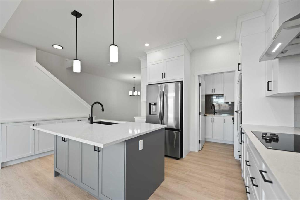 Great Opportunity for a Big Family, 5 bedroom, including 2 master bedroom and main floor bedroom with full washroom , extended kitchen with spice kitchen avaible in north east. Double car garage Brand new house, never lived in, with New Home warranty. Main floor features Bedroom and full washroom with living room and extended kitchen and spice kitchen( with electric cooktop built in and gas stove with built in wall oven and microwave and separate entrance to Basement(with 3 egress windows).Backyard has finished deck and for privacy the backyard has no attached neighbours from behind(rare to find). Upper floor has 2 master bedroom, bonus room, laundry(5 bedroom in total and 4 full washroom). House is located in the nice community of North east in Calgary Alberta for a bigger family.