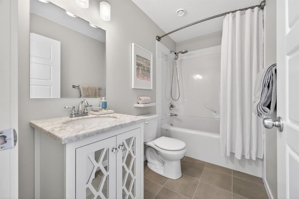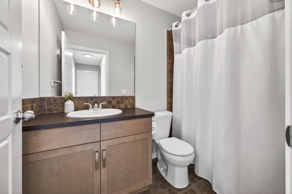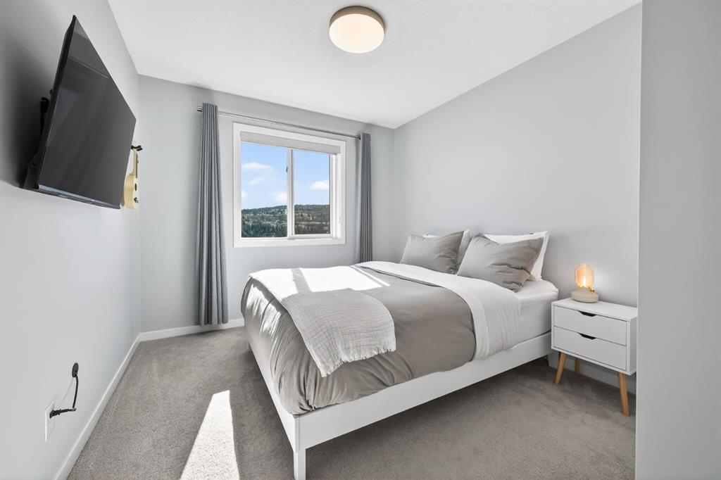 Upstairs offers three generous bedrooms, with 2 overlooking the ravine, plus a full bath and convenient laundry (with newer dryer). The primary suite sits on its own level for added privacy, complete with partial mountain views, a large walk-in closet with window, and a 4-piece ensuite with granite and tile finishes.