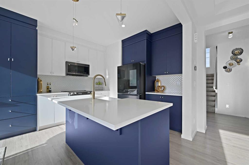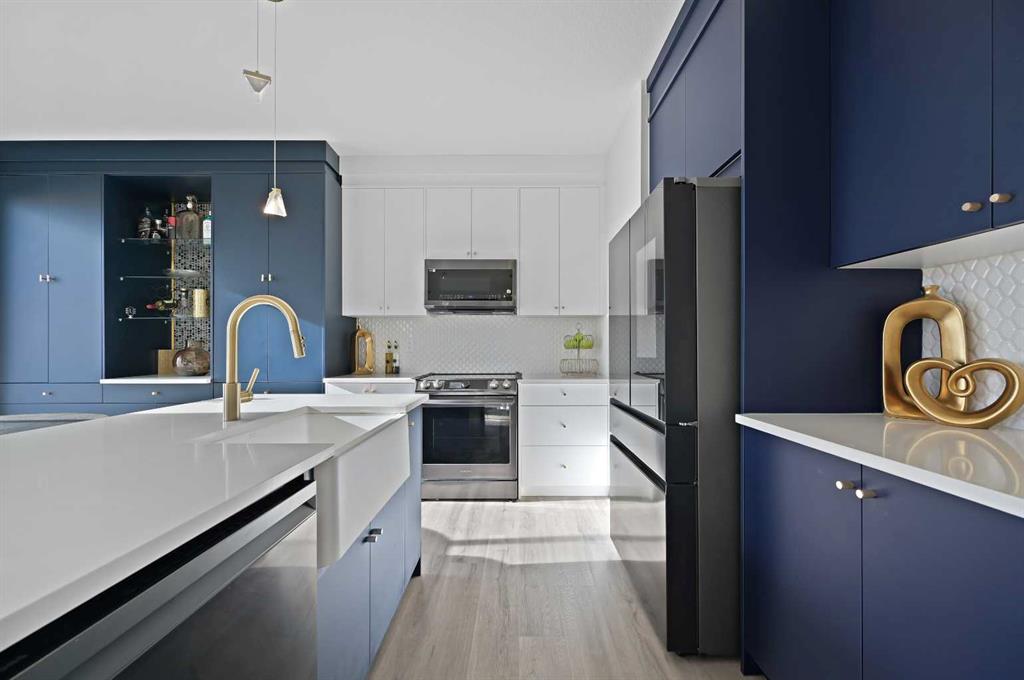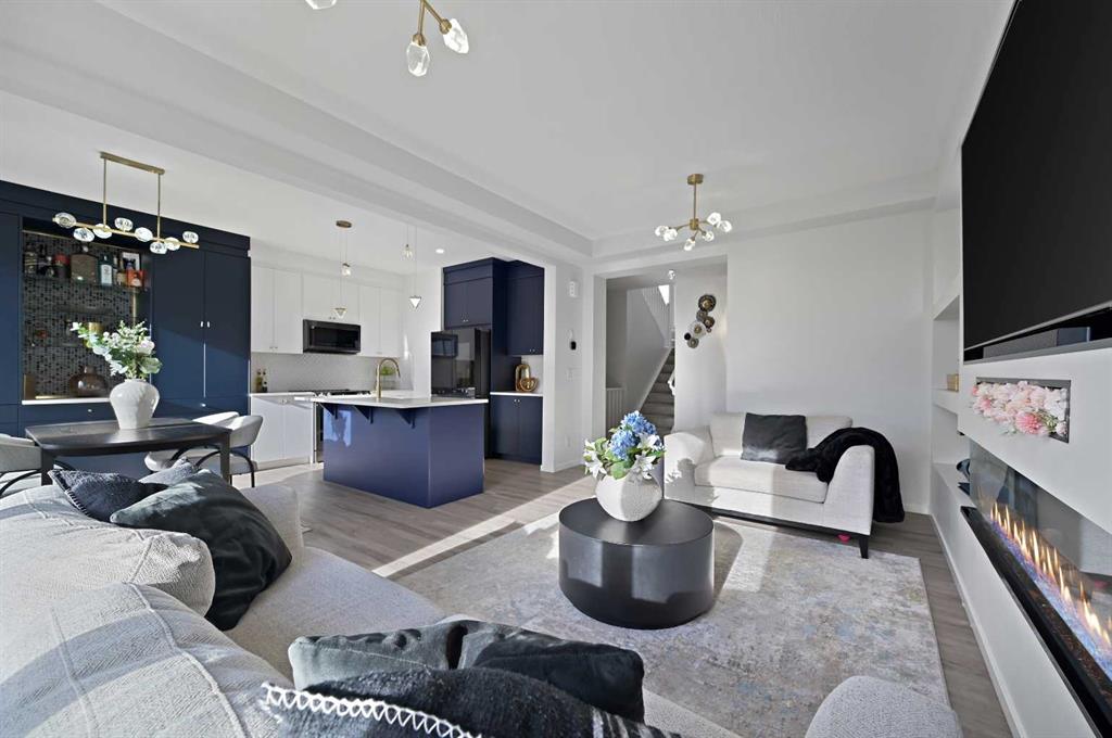 Welcome to this true 10/10 meticulously designed home with an amazing location rocking a SUNNY SOUTH facing yard with no rear neighbours behind and a WALKOUT BASEMENT that has been fully developed with a kitchenette and separate laundry to be that mortgage helper you’ve been searching for! This is not your cookie cutter home, this home is truly one of a kind with incredible upgrades throughout and it hosts downtown Calgary and mountain views! The bright main level layout feels like a luxury show home with an oversized quartz island, quartz countertops, upgraded two tone cabinets, a farm sink feature, upgraded stainless black steel appliance package, a well designed built in pantry/bar area, pot lights, upgraded light fixtures, oversized electric fireplace feature wall with built-in shelving, air conditioning, upgraded luxury vinyl plank flooring, half bath, “Next Step Option” (stairs to basement finished with railing), knockdown ceilings throughout, 9 ft ceiling on the main floor and a sunny OPEN CONCEPT layout that seamlessly ties the main floor together to feel like home. The upper level greets you with the large bonus room with its very own private balcony off the front of the home and perhaps the coolest room in the house is the kids play area that was developed off of the bonus room.The well laid out primary bedroom retreat hosts a walk-in closet and a 5 piece ensuite bathroom with a dual sink quartz vanity, a fully tiled shower with the upgraded glass option and a deep soaker tub (upgraded with the “Bath Oasis” builder option). The spacious 2nd and 3rd bedrooms upstairs are conveniently located next to the 2nd full bathroom (also with a quartz countertop) which is adjacent to the upstairs laundry room. The fully developed basement rocks a full kitchenette including its own separate laundry which is perfect for guests or renters – this is the mortgage helper that you’ve been dreaming of! This home is like-new, it’s loaded with upgrades and it’s the definition of pride of home ownership. Don’t lift a finger because this beautiful home with an amazing location is ready for its next owner and this property shows even better in person – come see for yourself!