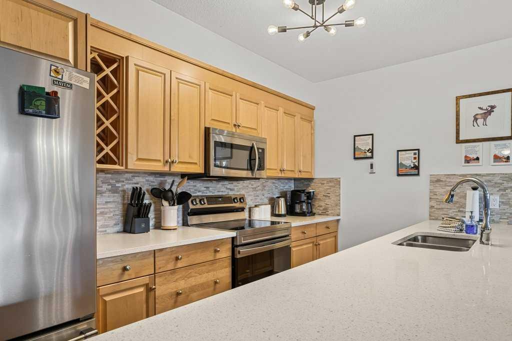Canmore Crossing has it all! True 3 bedroom tourist homes are rare. This one is tastefully updated, turn-key and move-in ready with everything you need to enjoy your own home base in the Rockies and/or use it as a short or long term rental while you’re not there. You can’t beat this central location – residents and visitors LOVE being able to zip downstairs to grocery stores, cafes, banks, restaurants, liquor stores, bike shops, and more! Just a stones throw from Main Street and Elevation Place (climbing gym, pool, library) and local dining and services. This condo can accommodate 8 guests. There are TWO heated underground parking spaces, so park the car and get ready to explore. A double sized storage locker accommodates skis, boards, and gear. Great connectivity to the Legacy Trail and other walking/biking routes. Two balconies face west; BBQ in the afternoon sun and then book the rooftop hot tub for a soak. $1,395,000 + GST = $1,464,750. Talk to your Associate and accountant about GST deferral options.