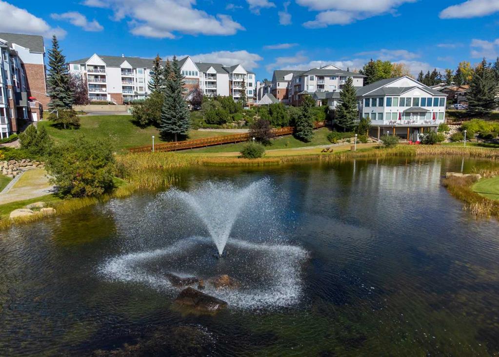 Welcome to your new home at Dreamview Village , a 55+ community with multiply amenities . The unit is located on the 2nd floor with west views backing onto the park, enjoy your mountain views from your private balcony. The amenities are; Club house with Entertainment room , decks with views of the pond and water fountain. . Guest suite available for your guests. A work shop with wood working equipment in the underground parking garage along with a carwash. This is a bright unit with a Bay window in living room and an open floor plan to the kitchen with an island. The countertops have been replaced with quartz like stone. The home has a separate storage / laundry room in the unit. The master bedroom has double closets and a 3 pce ensuite bath. The main 4 pce bath has white tile and lino flooring. The 2nd bedroom or den has book shelves that are moveable and can be included .There is one titled underground parking stall and one assigned storage unit that goes with the unit..There is visiting parking in front of the building. If you like to socialize the club house offers space to play pool or play cards. The club house is large enough to entertain a large group of friends and family. The storage unit that goes with the unit is located in the parkade level in a separate room., Stall 115.