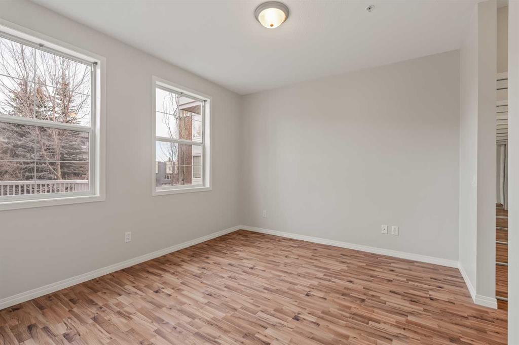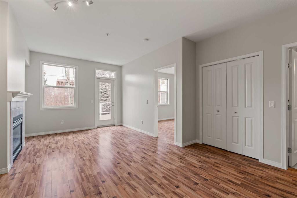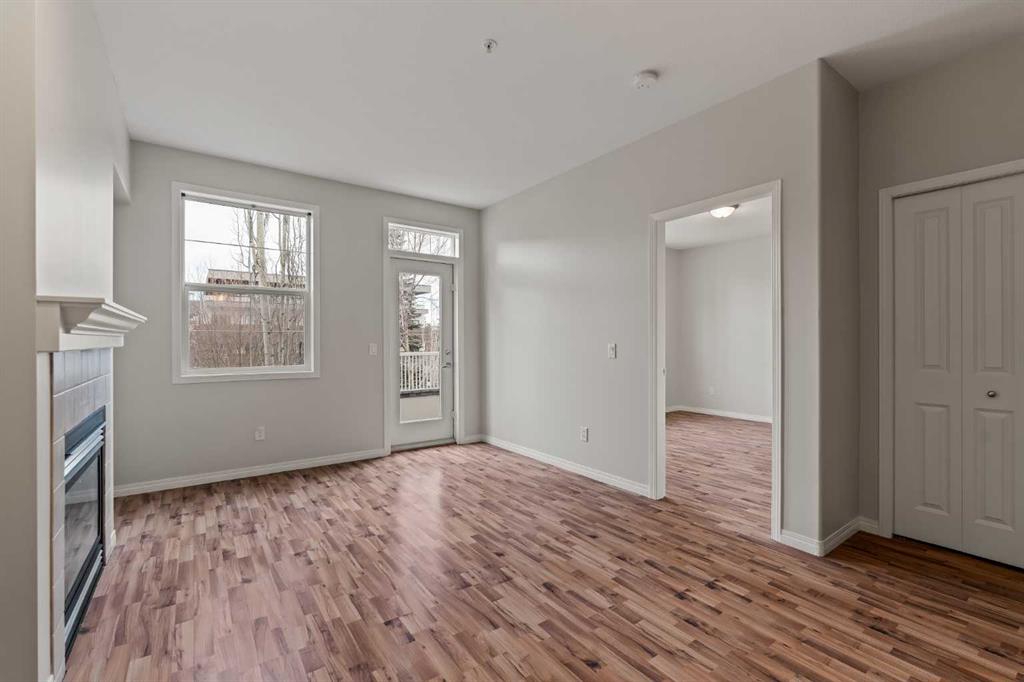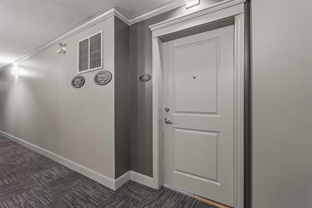 Welcome home to #206 of The Courtyards at Garrison Woods, an exceptional opportunity to live in one of Calgary’s most sought after inner city communities, just steps to the vibrant shops, cafés, and boutiques of Marda Loop. This beautifully appointed 739 sqft one bedroom, one bathroom residence offers an elegant blend of comfort and functionality, ideal for professionals, first time buyers, or savvy investors. Soaring 9’ ft ceilings create an immediate sense of space, while the wide, open concept living room provides exceptional layout flexibility; perfect for both entertaining and everyday living. A cozy gas fireplace anchors the space, adding warmth and ambiance year round. The thoughtfully designed kitchen features a generous peninsula with seating, offering both additional prep space and an inviting gathering spot. Whether hosting friends or enjoying a quiet evening at home, the seamless flow between kitchen and living area enhances the overall experience. Just off of the living room, tucked in behind closet doors, is a built-in desk. This provides options such as working from home (you can close the doors on your office to have it completely separate!), a dedicated beverage station, or additional storage space. The primary bedroom retreat is naturally brightened by two large windows, which provides a sense of serenity and relaxation. The bedroom also includes a convenient walkthrough closet that leads directly into the well appointed bathroom, creating a private, ensuite-style feel. A dedicated in suite laundry room adds everyday practicality, while the private balcony overlooking the beautifully landscaped courtyard provides a peaceful outdoor escape, ideal for morning coffees or unwinding at the end of the day. Residents also enjoy secured, heated underground parking with a car wash bay and storage lockers. Strategically located in the middle of the complex, is an impressive amenities building. Complete with a swimming pool, fully equipped fitness area, party room, and guest suites – an extension of your living space that enhances both lifestyle and convenience. Units in this building rarely come up, as it is unique to find this style of complex (adults 18+ and separate amenities building), tucked in from behind the hustle and bustle of Marda Loop. All of this, just a five minute stroll to the best of Garrison Woods and Marda Loop – trendy restaurants, specialty grocers, fitness studios, and everyday essentials – offering an unmatched walkable urban lifestyle in one of Calgary’s most established and charming neighbourhoods. Fantastic value in this wider than your average one bedroom, one bathroom unit, with reasonable condo fees that include all the amenities. Contact your favourite realtor to schedule a private showing, and make #206 your new home!