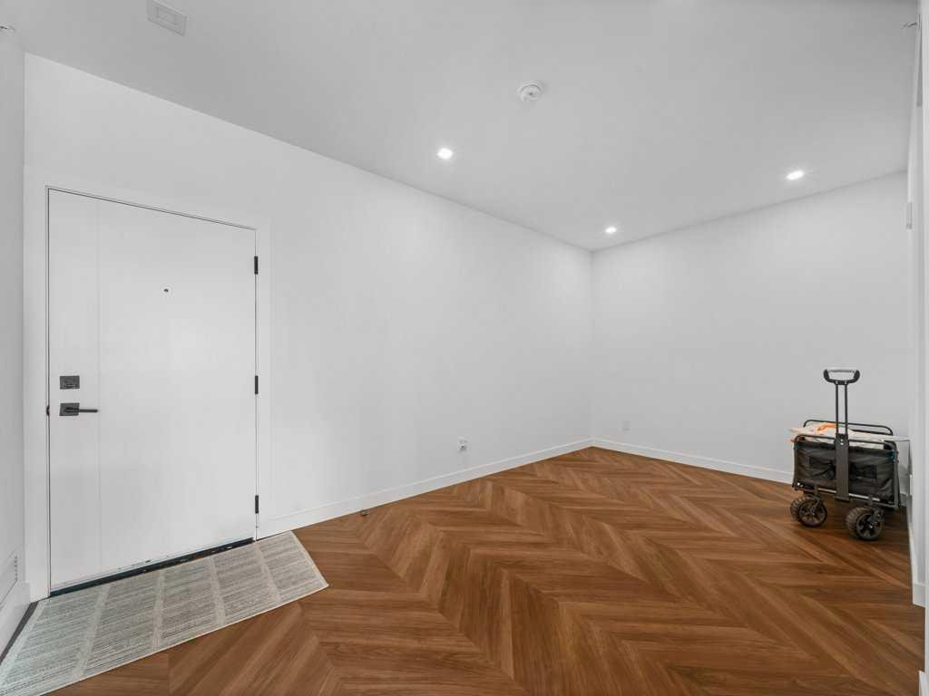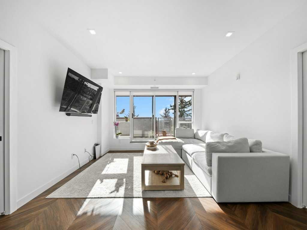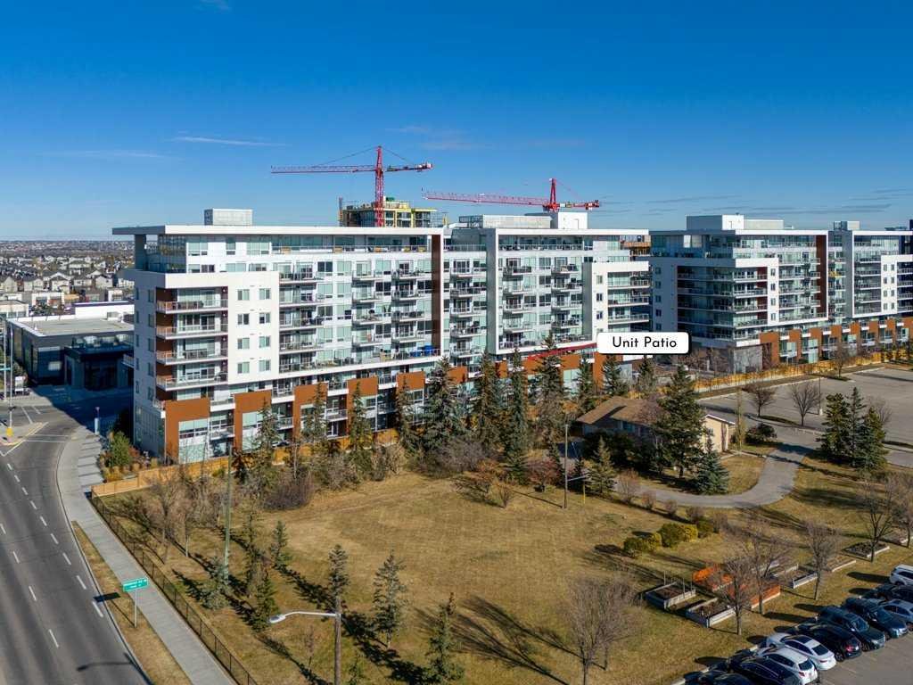 Welcome to Gateway by Truman where contemporary design meets urban convenience in Calgary’s premier West District. This stunning SOUTH FACING 2-bedroom, 2-bathroom south-facing unit combines modern luxury with everyday functionality. Featuring soaring 9-foot ceilings, floor-to-ceiling windows, and chevron-patterned luxury flooring, this residence offers an abundance of natural light and an open-concept layout perfect for both relaxation and entertaining. The chef-inspired kitchen showcases quartz countertops, full-height soft-close cabinetry, under-cabinet lighting, and high-end stainless-steel appliances including a gas cooktop and built-in oven. The spacious primary suite includes a walk-through closet and elegant ensuite with double vanities and a glass-enclosed shower, while the second bedroom and full bath provide ideal flexibility for guests, roommates, or a home office setup. Step onto your sun-drenched private balcony to enjoy peaceful south exposure and evening sunsets, complete with a gas line for BBQ or outdoor heating. Additional conveniences include in-suite laundry, titled underground parking, and access to on-site amenities such as the owner’s lounge, bike storage, and an expansive rooftop terrace. Perfectly situated just steps from boutique shops, cafés, and the new West District retail corridor, this residence offers an unparalleled lifestyle. At its heart lies Radio Park, an award-winning 8-acre urban green space that serves as the community’s social centerpiece. With walking paths, an amphitheatre, a skating pond, and year-round recreational programming, it’s one of Calgary’s most thoughtfully designed public parks, seamlessly blending nature, art, and community life. Experience elevated living in one of West Calgary’s most dynamic and desirable neighbourhoods, where luxury, location, and lifestyle converge.