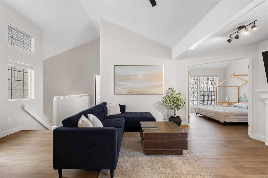 Welcome to Cactus Ridge in Signal Hill, an exclusive enclave tailored for executive living with mature landscaping and unbeatable west-side convenience. This premier upper-level stacked townhouse is defined by open spaces and sophisticated natural light. Vaulted ceilings and expansive windows draw the outdoors in, creating an airy, open atmosphere perfect for both relaxation and entertaining. The living room serves as a refined focal point, anchored by a classic wood-burning fireplace and easy access to your private balcony. The thoughtful floor plan provides two generous bedrooms and two full bathrooms, offering the ideal separation for a sophisticated home office or guest accommodations. Modernized with executive comfort in mind, the home features stylish new wardrobe hardware, a custom mirrored entrance panel with integrated shelving, as well as designer blinds on all windows. The kitchen is equipped with a suite of new appliances, while the master suite has been upgraded with new electrical outlets and custom closet shelving. Luxurious comfort is provided by underfloor heating that extends from the living areas to the private attached garage, ensuring a dust-free environment and warm transitions during Calgary seasonal changes. Smart home security enhancements include a numeric code entry and a comprehensive camera system at the front door, balcony, and garage. For added convenience, you assigned stall is directly beside the unit, and ample visitor parking makes hosting your guests even easier. Beyond the interior, a private rear balcony overlooks a meticulously maintained seasonal garden and provides access to a 25-square-foot private storage room. Residents also enjoy the amenities of a private clubhouse, ideal for hosting private events. Located just a five-minute stroll from Sunterra Market and West Market Square, and minutes from the paths of the Bow River, this home offers a low-maintenance, executive lifestyle in one of the city’s most established communities. All premium furniture and dĂ©cor are available for separate purchase to ensure a seamless move-in experience.