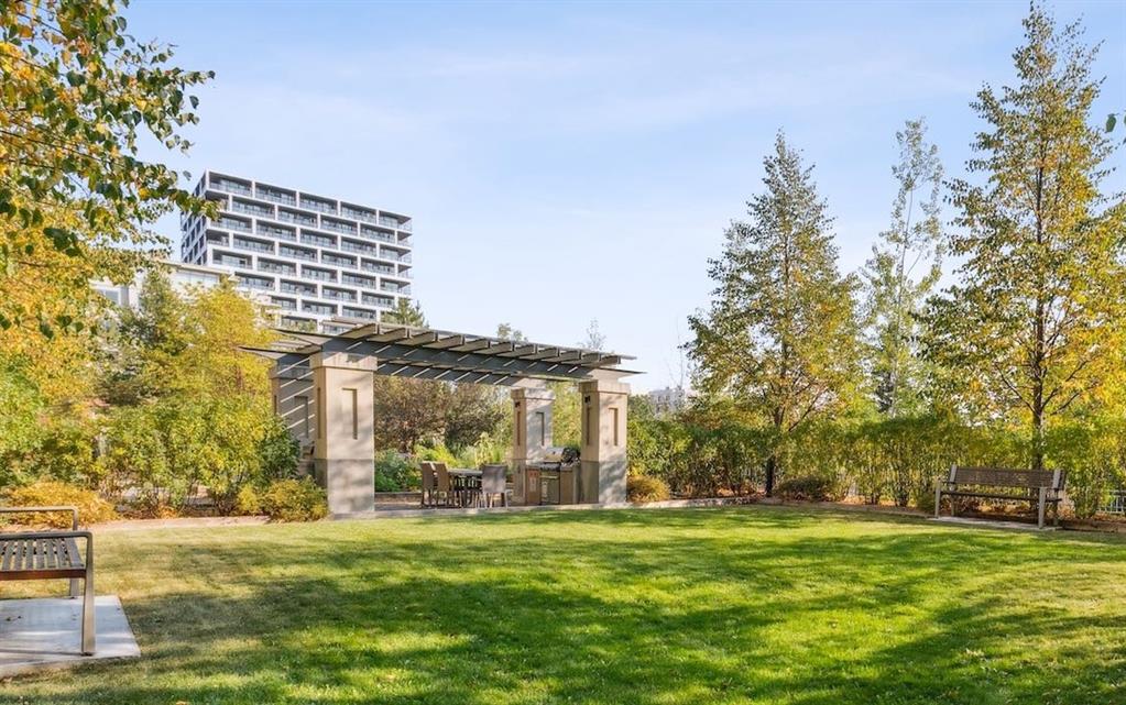 Tired of the Concrete Jungle? Experience urban living at its finest in this exceptional courtyard-level condo with direct access to a stunning garden sanctuary. This inviting 2 bedroom, 2 bathroom home offers the perfect blend of city convenience and serene tranquility. Imagine hosting al fresco dinners with friends, tending to your favourite plants, or simply unwinding with a good book in your peaceful outdoor oasis. Inside, you’ll discover a thoughtfully designed open-concept layout featuring soaring 9-foot ceilings, elegant quartz countertops, and a gourmet kitchen equipped with top-of-the-line appliances, including a gas cooktop and built-in oven. Retreat to your primary bedroom – a spacious sanctuary with ample room for a king-sized bed, a well-appointed 4-piece ensuite, and an abundance of closet space. The generously sized second bedroom offers versatility as a guest suite or comfortable home office. Rest easy knowing your vehicle is secure in the titled underground parking stall, protected from the elements year-round. Plus, enjoy the convenience of a separate storage unit to keep your belongings organized and easily accessible. This pet-friendly building offers fantastic amenities including a fitness room, party room, bike storage, and community gardens. Immerse yourself in Bridgeland’s vibrant cultural scene with easy access to shops, cafes, and restaurants. And when you need a dose of nature, escape to nearby parks, the Bow River pathway, or your own private courtyard patio. More than just a condo, this is an urban sanctuary where you can embrace the best of both worlds. Live effortlessly, work efficiently, and recharge in nature – all from this exceptional Bridgeland address. Be sure to check out the virtual tour!