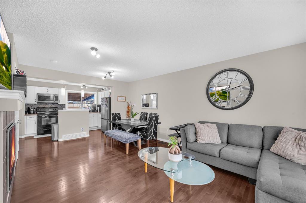 Inside, the home offers a bright, modern layout with gleaming hardwood floors and an open-concept design. The living room is filled with natural light and centered around a stylish tiled fireplace, creating the perfect space to relax or entertain. The dining area is spacious and flows effortlessly into the kitchen, allowing you to stay connected with guests while preparing meals. A functional mudroom with built-ins and a freshly updated 2-piece bathroom complete the main floor.