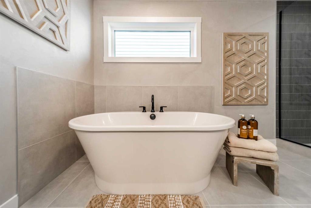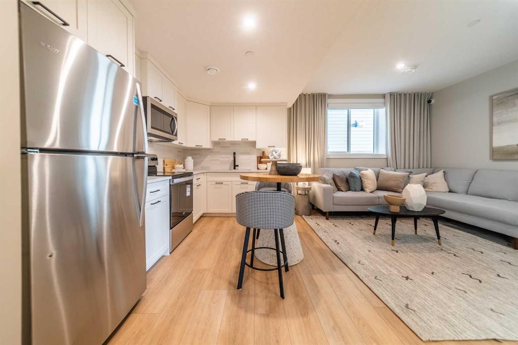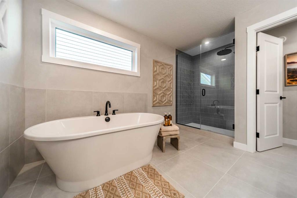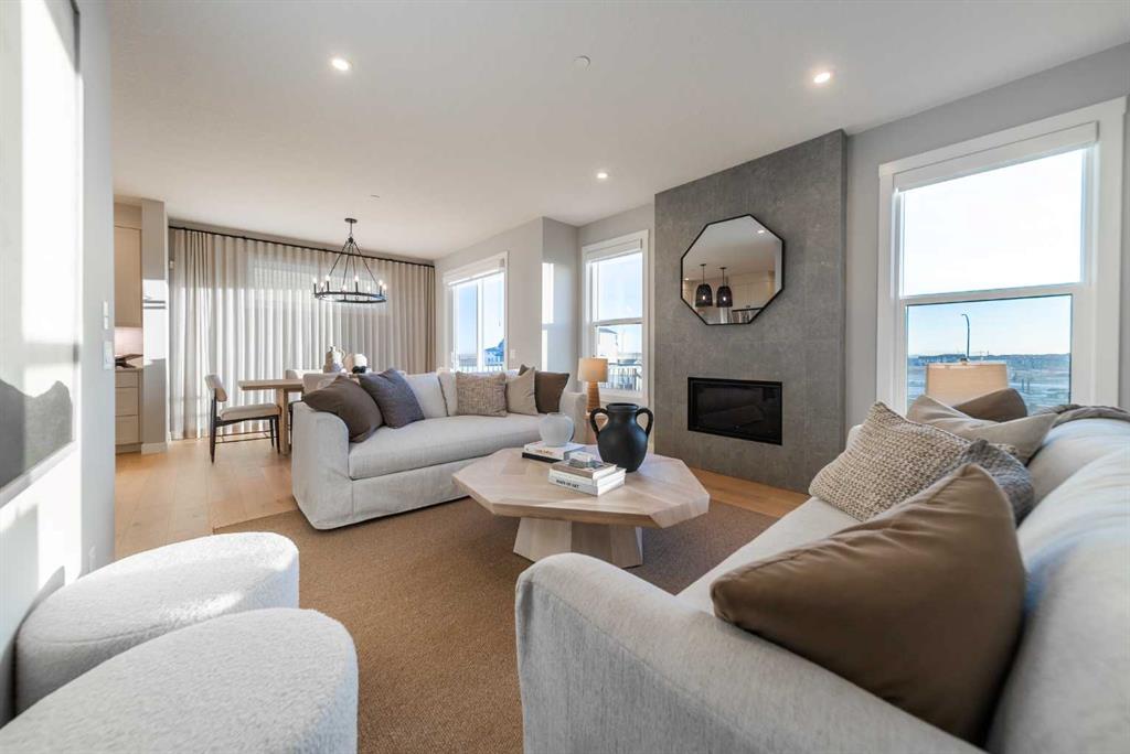 SHOW HOME FOR SALE! The stunning Purcell 26 show home is now for sale and this home offers it all! Situated on a large 4,700 ft2 conventional lot, this move-in ready home has been professionally designed to offer a timeless and luxurious space that is perfect for a growing family, investors or multi-generational living. At over 3,200 square feet of developed living space, the home features a home office, 2 living areas, 3 bedrooms, 2.5 bathrooms + a full legal and separate 2 bedroom basement suite! Oak hardwood flooring flows throughout the main level of the home – offering an elevated design with timeless natural wood floors. The central kitchen features white shaker cabinets, built-in range hood, built-in wall oven & microwave, gas cooktop and a large island quartz island with end-cap detailing. Custom lighting throughout elevates the space with those special design touches not typically found in a new home. An expansive walk-through pantry off of the kitchen leads to the oversized mud room for everyday convenience. The dining and living areas span across the back of the property, with walls of windows that allow natural light to pour through the space all day long. A central gas fireplace complete with floor-to-ceiling tile surround is anchored by two large windows, creating the perfect symmetry while offering a natural fireplace for cozy winter nights. Chevron flooring detail in the main level off space, custom window treatments and built-in features are just some of the upgrades specific only to a show home. A grand foyer, two closets, including a walk-in closet and a 2pc powder room complete the main level. Natural wood and iron railings lead to the upper level, where the central bonus room separates the primary bedroom from secondary rooms. Custom wallpaper fills the primary suite with vaulted ceilings and added windows providing more natural light. The primary suite features a tiled walk-in shower with 10mm glass, soaker tub, dual vanity with 3″ quartz countertop edge and a private water closet. Two more bedrooms, each complete with custom window coverings and wallpaper features, a 5pc main bathroom and laundry room with countertop and built-in storage complete the upper level. A separate side entrance provides access to the self-contained legal 2 bedroom basement suite. A large kitchen with dining area and full living room provide a comfortable living space for two. Completing the suite are two bedrooms, a full bathroom, laundry closet and large windows that provide more natural light than you’d normally find. Custom window treatments & lighting, wallpaper features, central A/C, landscaping and more are just some of the benefits of buying a new show home. This brand new home is move-in ready and includes Alberta New Home Warranty – allowing you to purchase with peace of mind. This is your opportunity to purchase a one-of-a-kind home that has been beautifully designed throughout!