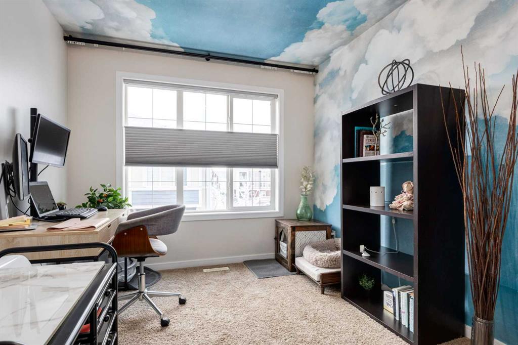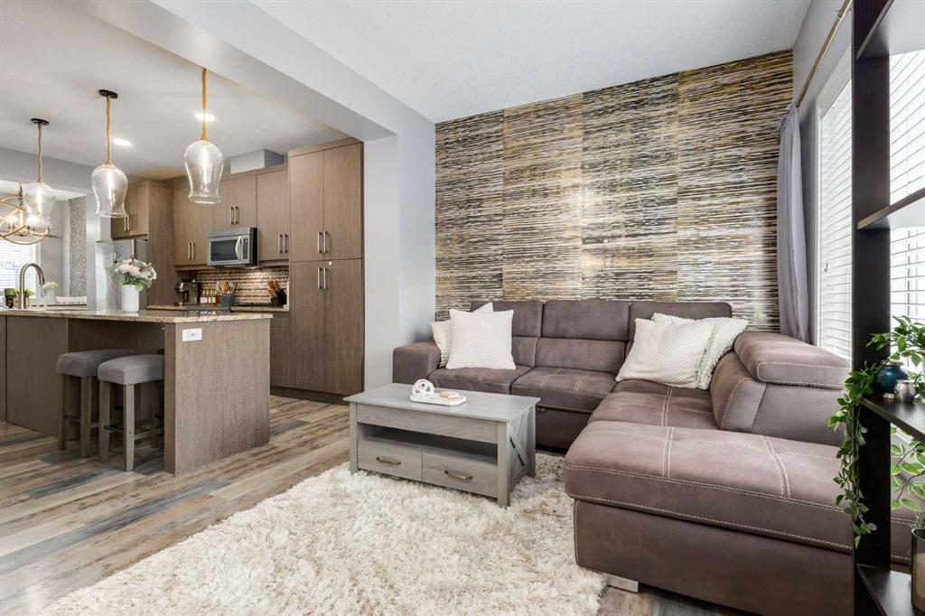 We’re pleased to present this modern townhouse in the highly sought-after lake community of Mahogany. This unit presents an excellent opportunity for prospective homeowners, featuring low condo fees and a fabulous open floor plan. This high-end build features a spacious living area filled with abundant natural light streaming through large windows that highlight the luxury vinyl plank floors, updated fixtures, high-end wall coverings and other aesthetic accents that make it feel as though you’re in a show home. This is not the wall paper from Grandma and Grandpa’s house, this is made from luxurious natural fibers like silk, velvet, grasscloth (jute, hemp, reed), and even real wood veneers, often with hand-finished details, metallic threads, or applied to durable non-woven or fabric backings for superior texture, depth, and longevity, moving beyond standard paper to offer rich, tactile finishes.