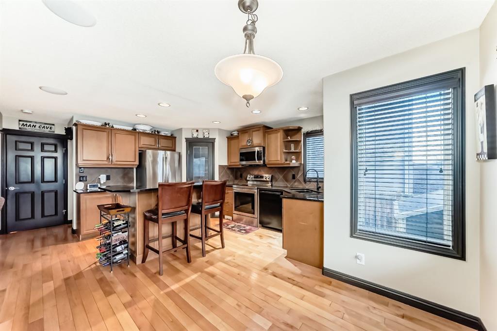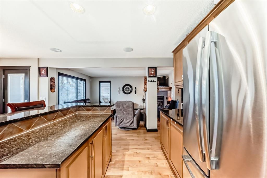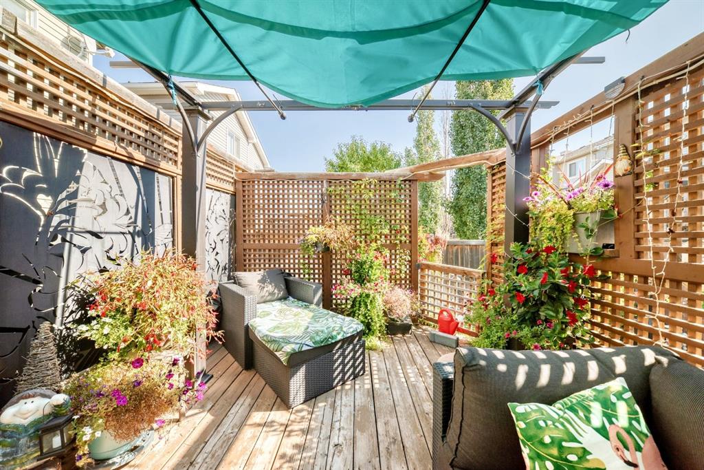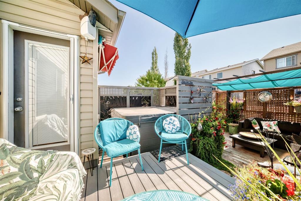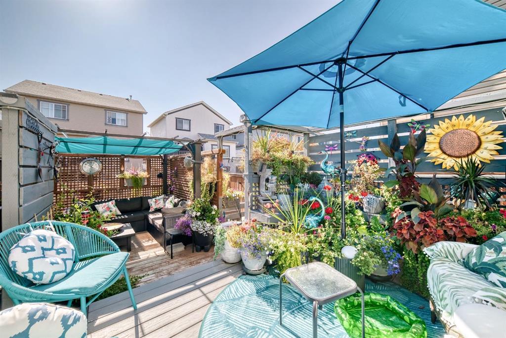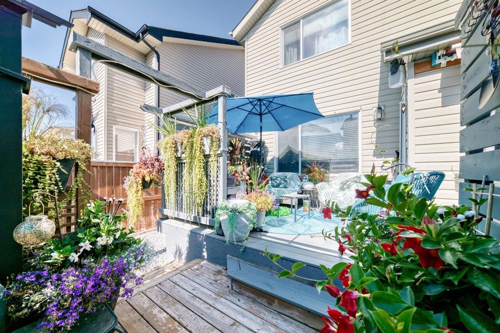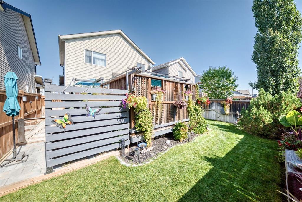 Welcome to your new home at 2071 Sagewood Rise in the family friendly community of Sagewood. This fully finished, meticulously maintained 2-storey residence offers exceptional curb appeal with a beautifully manicured front yard featuring lush shrubs, neat landscaping, and thoughtful details that welcome you home every day. Step inside through the tiled entry foyer, which flows seamlessly into an open and inviting main floor plan adorned with genuine hardwood flooring throughout. The spacious living room is a cozy focal point, highlighted by a stylish corner fireplace with an elegant mantle and tile surround, complemented by in-ceiling speakers for effortless entertainment. Large, ample windows bathe the space in natural light, creating a bright and airy atmosphere. The heart of the home is the upgraded kitchen, featuring newer SS appliances, granite countertops, an undermount granite sink, and abundant cabinetry with generous storage. A convenient corner pantry keeps everything organized, while the spacious dining area overlooks the stunning south-facing rear yard—perfect for family meals or hosting gatherings with views of your private outdoor oasis. Upstairs, the layout provides excellent separation for privacy, featuring a large bonus room ideal for movie nights or relaxation, complete with in-ceiling speakers, abundant natural light from numerous windows, and a striking feature wall. The primary bedroom is a true retreat, offering a 4pc ensuite bathroom with a large corner soaker tub, a standalone shower, and a generous walk-in closet. Two additional well-sized bedrooms and a full 4pc main bathroom complete this level. The fully developed basement serves as the ultimate “man cave” or family entertainment space, including a large living area anchored by another corner fireplace, two additional bedrooms for extended family, guests, or a home office setup, and a convenient 3-piece bathroom. Outside, the south-facing backyard is an absolute paradise designed for year-round enjoyment and privacy. Relax in the nearly new (2-year-old) Master Spa hot tub, fully enclosed for seclusion. A secondary private lounge area beneath the pergola offers another tranquil retreat. The yard is beautifully landscaped with numerous perennials and mature shrubs, a dedicated dog run for your furry friends, and a handy storage shed. The attached garage is a standout feature, complete with a built-in heater for year-round comfort, plus numerous wood shelving units—including upper shelving designed for larger items—providing excellent organized storage for tools, seasonal gear, sports equipment, and more. Additional premium upgrades throughout the home include central AC and a central vacuum system for added comfort and convenience. Ideally located near C.W. Perry School, this home provides easy access to top-rated education, parks, shopping, and all the amenities Airdrie has to offer, while still enjoying a peaceful, family-friendly neighborhood.