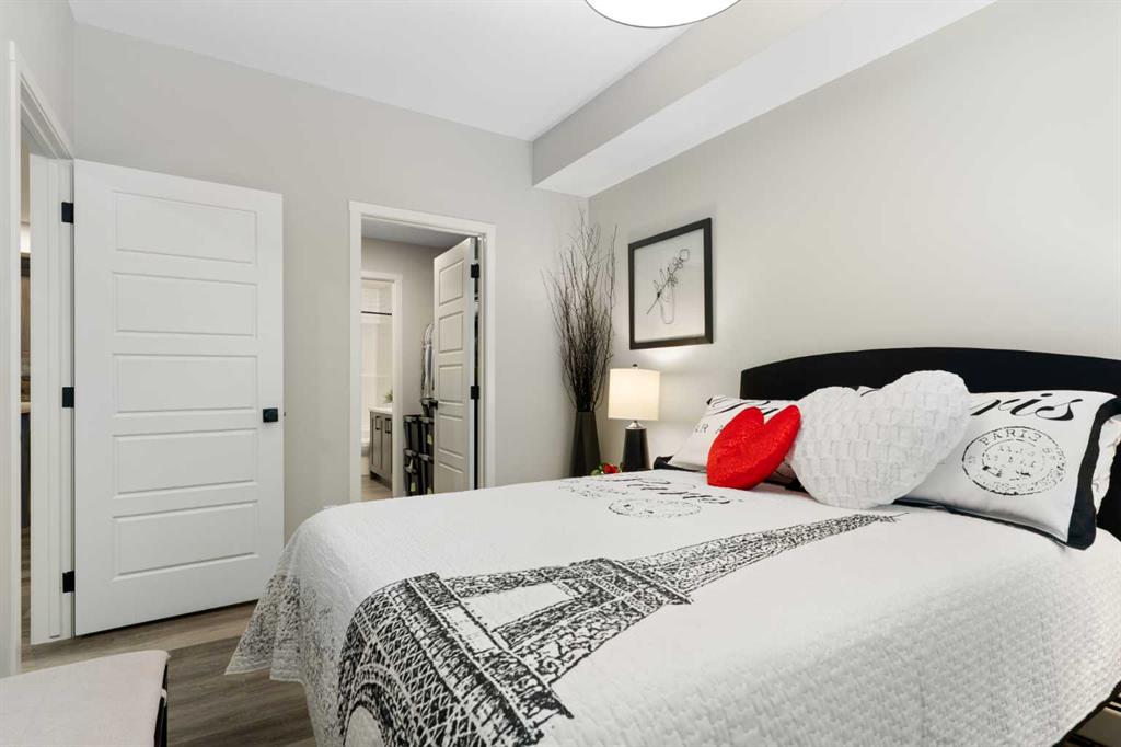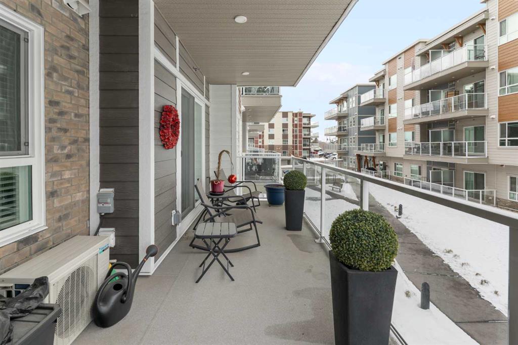 Some condos check a few boxes. This one checks all of them. Nestled in The Rise at The Parks of Harvest Hills, this 2-bed, 2-bath condo by Cedarglen Homes has been lovingly cared for by its original owners since day one. That pride of ownership is something you feel the moment you step inside. The kitchen sets the tone early. A large island with seating anchors the space, framed by quartz countertops, stainless steel appliances, and a chevron tile backsplash that catches your eye in the best way. Storage is generous without feeling overwhelming, with ample cabinetry and a pantry keeping everything in its place. Luxury vinyl plank flooring runs through the main living areas, clean, modern, and easy to maintain. The dining area features a builder-upgraded built-in that adds both character and function, while the living room offers the kind of layout that works just as well for a quiet night in as it does for a lively evening with friends. Slide open the patio doors and the space grows. The oversized private balcony comes ready with built-in exterior lighting and a BBQ gas line, making it a natural extension of the home through every season. And with central AC throughout, you will be just as comfortable inside when summer turns up the heat. The primary bedroom sits tucked away on its own side of the unit, offering genuine quiet and privacy. There is room for a king-sized bed, a walk-in closet with custom built-ins, and a 4-piece ensuite that feels calm and thoughtfully designed. Across the unit, the second bedroom adapts easily to whatever you need, whether that is a guest room, a home office, or something else entirely. The adjacent 3-piece bathroom features a full walk-in shower with upgraded fixtures throughout. The laundry room deserves a mention of its own. Builder-installed upper cabinets and extra shelving make it one of the most functional spaces in the home, pulling double duty as your front closet with plenty of room for shoes and jackets. It is the kind of detail that makes everyday life a little easier. Titled underground parking sits just steps from the elevator, with a storage locker and secure bike storage included on the same level. Outside, the location delivers in every direction. Three major shopping hubs put T&T Supermarket, Superstore, Sobeys, Canadian Tire, Home Depot, and Shoppers Drug Mart all within easy reach. Landmark Cinemas, the VIVO Rec Centre, the public library, and the North Pointe transit hub round out a neighbourhood that genuinely has everything. When you need to get downtown, the MAX Green bus makes the trip in approximately 47 minutes, or you can drive it in around 18. For those who prefer to stay close to home, two community ponds, scenic walking and bike paths, and a year-round driving range just down the street give you plenty of reasons to step outside. This one won’t need a second showing to win you over. Come see it for yourself.