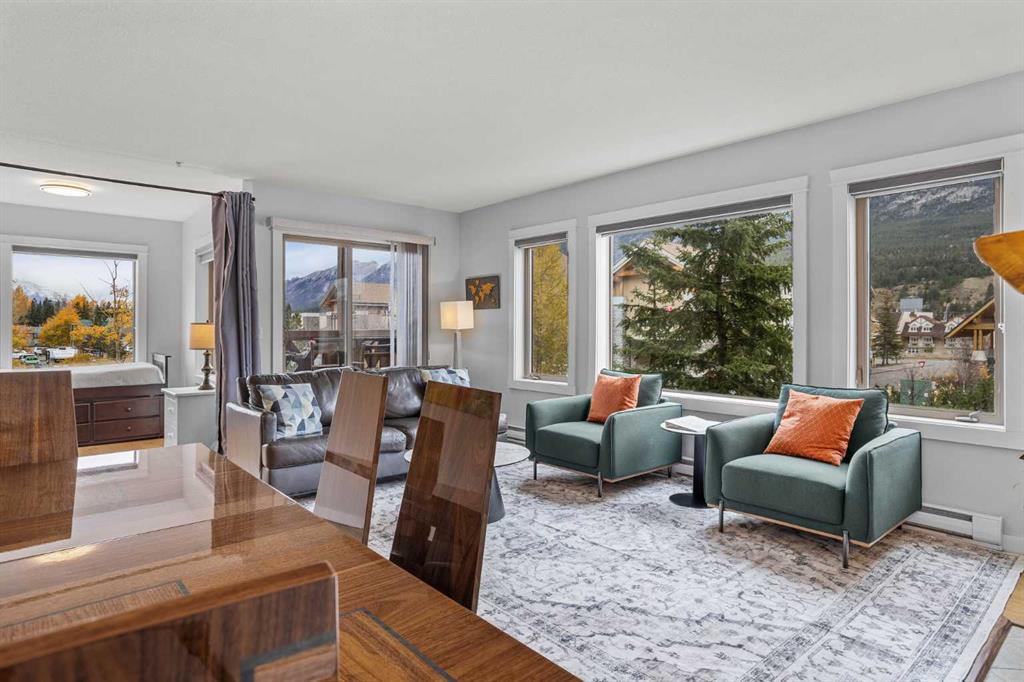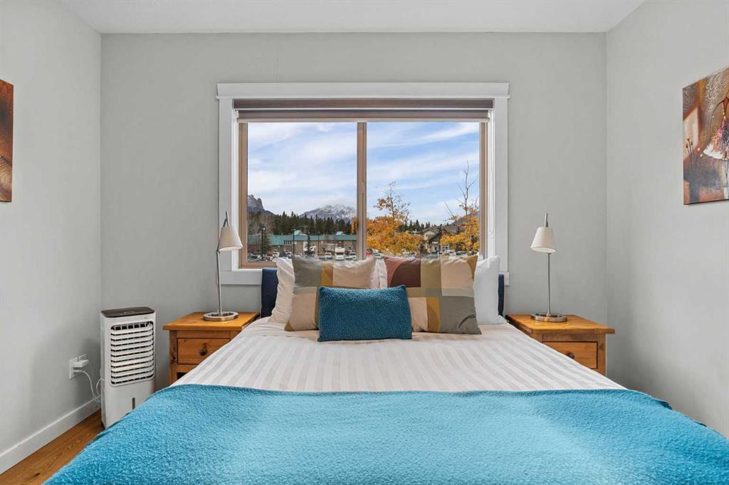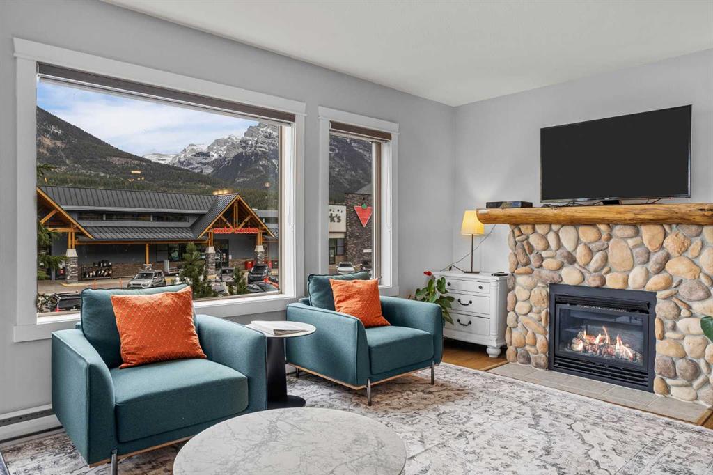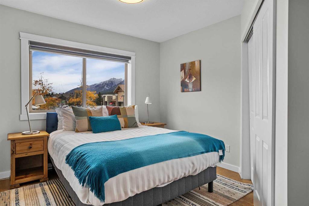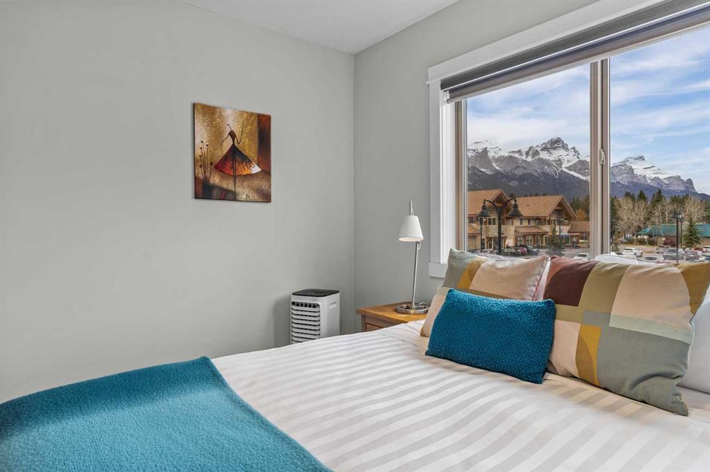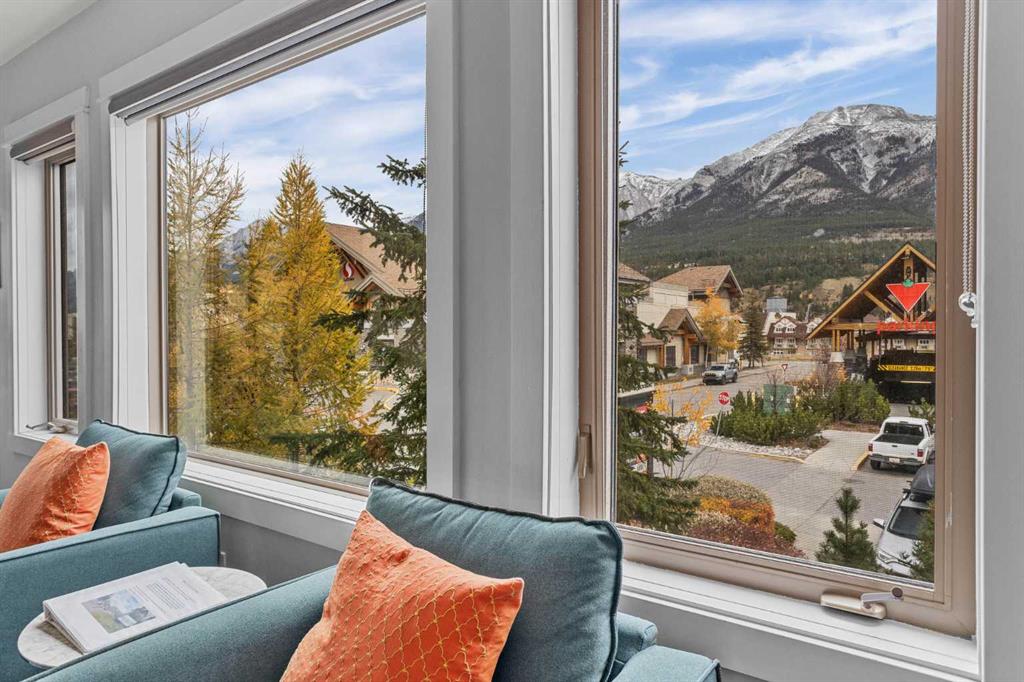 Wrap-around mountain views, rooftop hot tub, and legal tourist zoning — a rare combination. This bright corner unit offers 1,200 square feet and the flexibility to operate as a high-performing short-term rental or a full-time or lock-and-leave Canmore home. Thoughtfully renovated and fully furnished, this property is truly turnkey and positioned perfectly for the busy summer season. Currently configured as a two-bedroom plus den, the layout comfortably sleeps six and can easily function like a three-bedroom with the addition of a pull-out sofa — a simple way to expand nightly rates and overall revenue. Granite countertops, 2 tone cabinetry, durable vinyl flooring, and modern finishes deliver a clean, updated aesthetic that performs well with guests. Located in one of Canmore’s most sought-after STR buildings, this downtown address puts shops, restaurants, and trails right at your doorstep, with downtown just a block away. Owners and guests enjoy premium amenities, including a top-floor fitness room, underground parking and a stunning rooftop hot tub with 360-degree mountain views — a true differentiator in the short-term rental market. Whether you’re focused on cash flow, flexibility, or long-term value in one of the world’s strongest STR markets, this property delivers. *List price is inclusive of GST -ask your tax expert how to defer the tax*