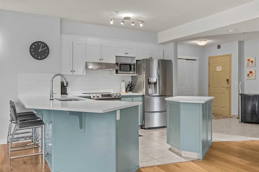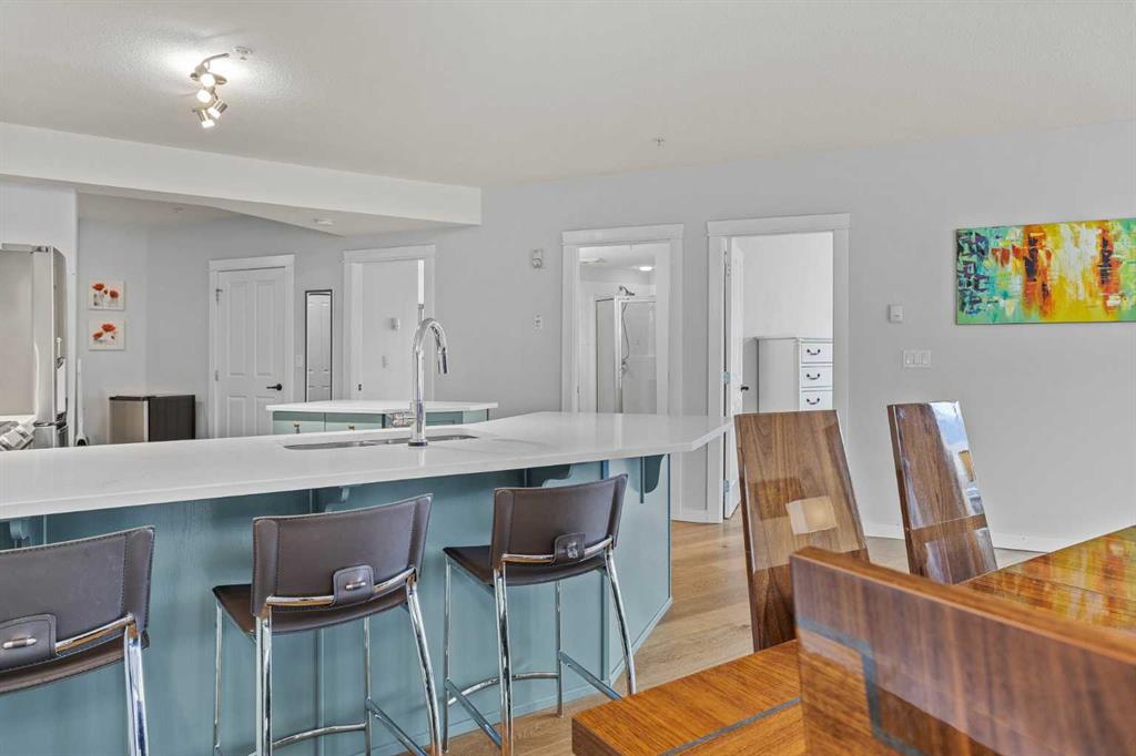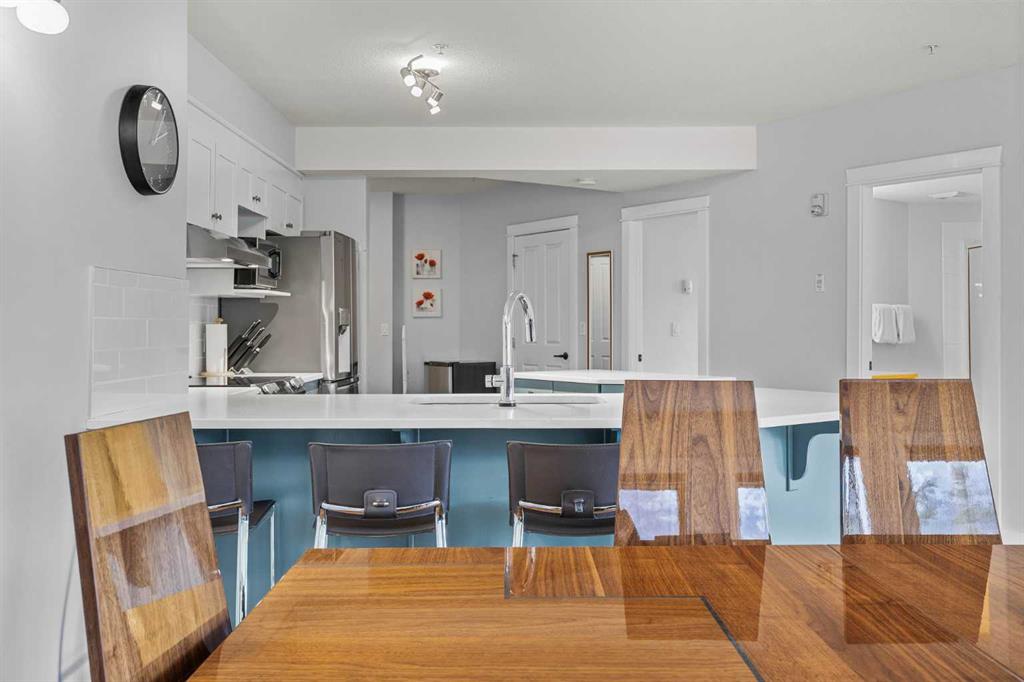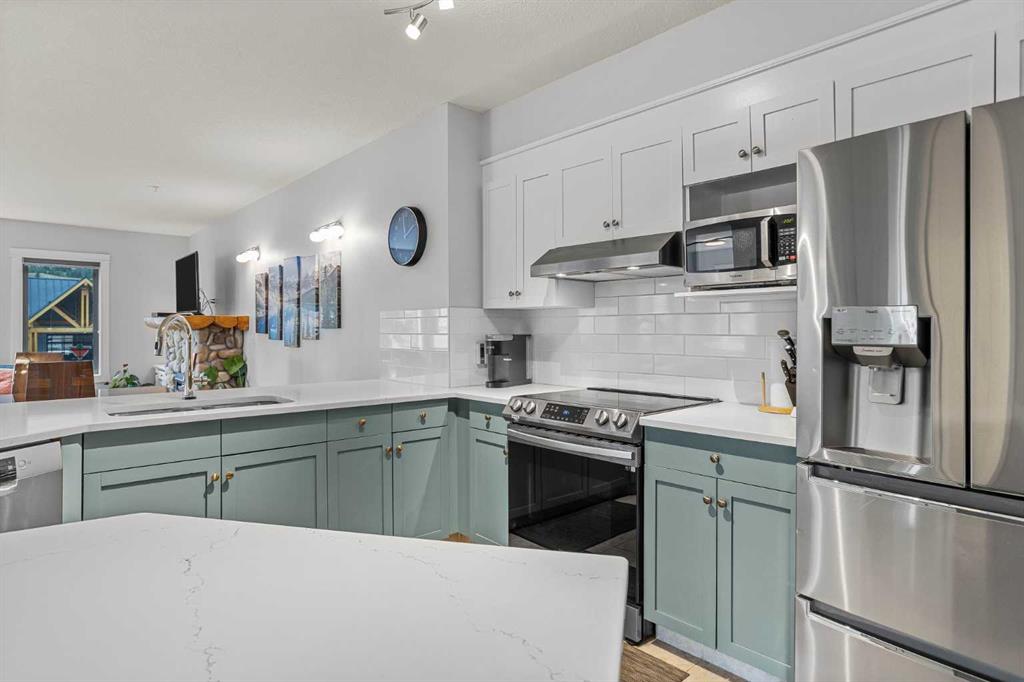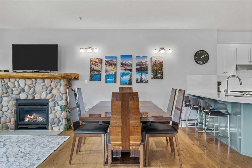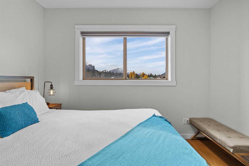 Wrap-around mountain views, rooftop hot tub, and legal tourist zoning — a rare combination. This bright corner unit offers 1,200 square feet and the flexibility to operate as a high-performing short-term rental or a full-time or lock-and-leave Canmore home. Thoughtfully renovated and fully furnished, this property is truly turnkey and positioned perfectly for the busy summer season. Currently configured as a two-bedroom plus den, the layout comfortably sleeps six and can easily function like a three-bedroom with the addition of a pull-out sofa — a simple way to expand nightly rates and overall revenue. Granite countertops, 2 tone cabinetry, durable vinyl flooring, and modern finishes deliver a clean, updated aesthetic that performs well with guests. Located in one of Canmore’s most sought-after STR buildings, this downtown address puts shops, restaurants, and trails right at your doorstep, with downtown just a block away. Owners and guests enjoy premium amenities, including a top-floor fitness room, underground parking and a stunning rooftop hot tub with 360-degree mountain views — a true differentiator in the short-term rental market. Whether you’re focused on cash flow, flexibility, or long-term value in one of the world’s strongest STR markets, this property delivers. *List price is inclusive of GST -ask your tax expert how to defer the tax*