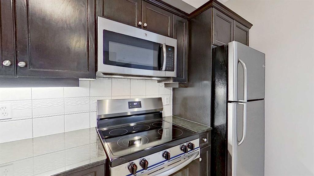 Recently renovated with new vinyl flooring, fresh paint, updated kitchen and bathroom faucets, and new under-cabinet lighting, the space feels modern and move-in ready. The kitchen is finished with granite countertops, stainless steel appliances, and a new stove, plus the convenience of in-suite washer and dryer. Step outside to your massive private balcony—approximately 460 sq ft of additional outdoor living space, perfect for lounging, entertaining, or creating your own urban oasis. This all-concrete building features concrete walls between units for added privacy and quiet enjoyment. Enjoy pet-friendly living, a fitness area just steps from your unit door, plus a building caretaker on site. Complete with 1 underground parkade stall and 1 storage locker, this is an outstanding opportunity in one of Calgary’s most desirable communities.