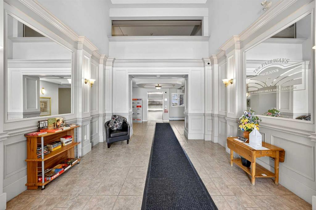 Welcome to Fairways Pavilions in Country Hills, a well-maintained complex offering comfort and convenience in a highly sought-after NW Calgary location. This bright 2-Bedroom, 2-Bath unit features an open-concept layout with a Kitchen finished with quartz countertops and stainless steel Samsung appliances. The Dining Area flows into a large Living Room with a cozy corner fireplace, leading to a well sized Balcony complete with gas hookup and storage room. The Primary Bedroom offers a walk-in closet and 3-piece Ensuite, while the Second Bedroom and full Bath are set apart for privacy. Vinyl Plank Flooring runs throughout the majority of the unit. The unit is finished with a Laundry Room with storage space. This unit also comes with a Titled heated underground parking stall, and the condo fee includes heat and water.