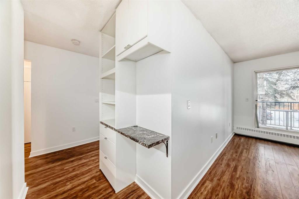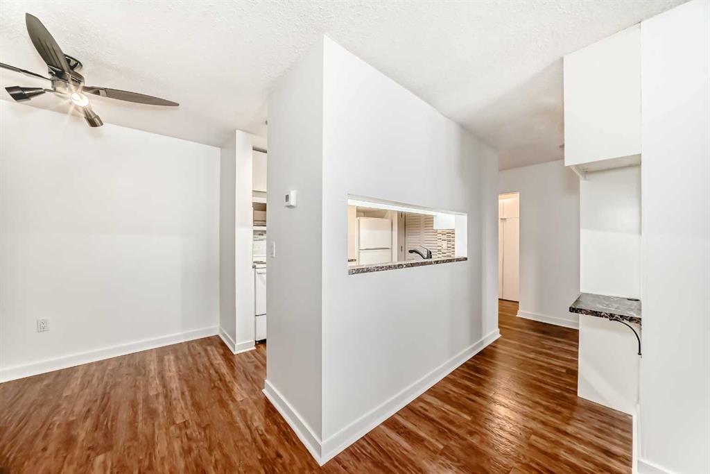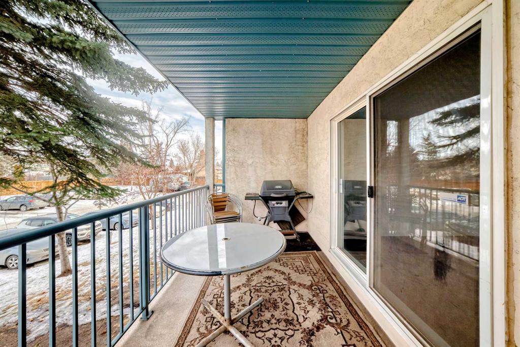 Welcome to this freshly updated, move-in-ready one-bedroom, one-bathroom apartment offering an excellent opportunity for first-time buyers or investors. This well-maintained, single-level unit has been thoughtfully updated to provide comfort, functionality, and affordability. The home has been freshly painted and features durable laminate flooring throughout. The kitchen is nicely upgraded with newer soft-close cabinets in modern gloss white fronts, under-cabinet lighting, and generous counter space with marble-style arborite countertops. A double pantry off the kitchen provides excellent additional storage, while a newer matte black pull-down faucet, newer dishwasher with a stainless-steel interior tub, and a new over-the-range microwave complete the space. The dining area features a stylish accent wall and a ceiling fan with dimmable lighting, creating a comfortable space for everyday meals. The living room opens onto a private balcony that offers a quiet outdoor retreat. The barbecue, table, and chairs are included, making the space ready to enjoy right away. The bedroom includes a double wall closet, along with an additional movable closet unit for extra storage. The bathroom also offers double medicine cabinets for added storage and convenience. In-suite laundry is provided with an LG front-load stacked washer and dryer. Heat and water are included in the condo fees, keeping monthly costs low. The poly-B plumbing has been removed for added peace of mind. The building offers quick elevator access to the second floor, an assigned exterior parking stall, and easy visitor parking located directly out front. Quick possession is available, making this an ideal option for buyers looking to move in without delay. The location is well suited for daily living and commuting, with nearby elementary and junior high schools, shopping, grocery stores, restaurants, and services close by along International Avenue and throughout the area. Downtown Calgary is approximately a 10 to 15 minute drive depending on traffic, with nearby transit routes and easy access to Deerfoot Trail, Memorial Drive, and 17 Avenue SE. This well-located, low-maintenance home is a smart and affordable way to enter the Calgary real estate market, offering practical upgrades, privacy, and excellent accessibility. Don’t delay, call today!