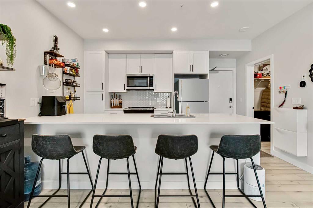 This unit is loaded with extras, including in suite laundry, central air conditioning, high end finishes and smart home features such as Kasa light switches, a Weiser smart lock and an Ecobee thermostat. You’ll also enjoy the added convenience of a dedicated storage unit and a parking stall ideally located right by the front entrance.