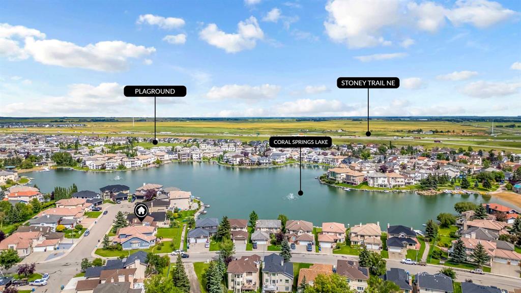 Welcome to an exceptional opportunity to own a fully renovated, luxury lakefront home in one of Calgary’s most exclusive and sought-after communities—Coral Springs. Nestled on the tranquil shores of the private Coral Springs Lake, this stunning 4-bedroom, 2.5-bathroom residence offers over 2,450 sq ft of beautifully curated living space, where modern design meets peaceful waterfront living. From the moment you arrive, this home makes a striking impression with its serene lakefront setting, elegant architectural details, and inviting curb appeal. Step inside and you’re immediately greeted by a bright, airy, open-concept floor plan designed to maximize natural light and showcase the breathtaking lake views visible from nearly every room. The main level features soaring ceilings, contemporary finishes, and a flowing layout that seamlessly connects the spacious living room, formal dining area, and a fully updated kitchen—creating the perfect environment for entertaining or enjoying quiet family evenings. The show-stopping spiral staircase acts as a visual centerpiece, guiding you through the home’s elegant layout. The newly installed luxury vinyl flooring throughout enhances the sleek, modern aesthetic while offering warmth, comfort, and durability for everyday life. Fresh, neutral-toned paint and designer light fixtures throughout the home add a cohesive sense of style and sophistication. The ceilings have been professionally flattened, removing outdated textures and creating a clean, elevated feel in every space. One of the most significant upgrades is the complete replacement of all Poly B plumbing with high-quality, durable PEX—providing peace of mind and long-term value for future homeowners. In addition, the bathrooms have been fully refreshed, including a brand-new, beautifully appointed half-bath and two tastefully updated full bathrooms. The upper level hosts four generously sized bedrooms, including a luxurious primary suite with panoramic views of the lake, large closets, and a spa-inspired ensuite. Each bedroom offers flexibility for growing families, visiting guests, or those working from home. Perhaps the most captivating aspect of this property is its unparalleled lakefront location. Whether you’re sipping your morning coffee as the sun rises over the water or enjoying quiet evenings with a glass of wine on your private shared deck, the experience of lakeside living here is unmatched. Step outside to launch your paddle boat, fish right from your backyard, or simply enjoy the sounds of nature from your own slice of paradise. This home isn’t just a place to live—it’s a lifestyle. As a resident of Coral Springs, you’ll have year-round access to a private lake and a host of exclusive amenities including swimming, boating, fishing, ice skating, and beautifully maintained walking paths.