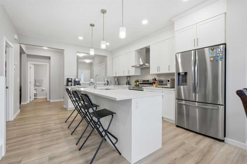 *Open house on Saturday, March 7, 11am-12.30pm* Rare opportunity in Pine Creek featuring a 4 bedrooms up and a fully legal 2-bedroom basement legal suite (6 bedrooms total) with completely separate gas, electric, and water meters, an incredibly uncommon setup that allows each legal suite to operate independently. Even better, this home is fully landscaped, fenced, and complete with window coverings, offering a major advantage over nearby new construction where these costs still need to be added. Inside, the home shows in true showhome condition with a bright open-concept main floor designed for modern living. The upgraded kitchen features quartz countertops, a large island, herringbone tile backsplash, and a spacious walk-in pantry. The main floor also includes a private office/den, powder room, electric fireplace, and a welcoming front entry with generous storage. Upstairs is thoughtfully designed for families with 4 bedrooms, a large vaulted bonus room, two full bathrooms, and a dedicated upstairs laundry room. The primary retreat includes a 5-piece ensuite with soaker tub, separate glass shower, and walk-in closet. The legal 2-bedroom basement legal suite is beautifully finished with its own kitchen, full appliance package including dishwasher, in-suite laundry, spacious living area, private entrance, and access to storage, ideal for rental income, multi-generational living, or guests. Complete with a double attached garage, private yard, deck, and quality finishes throughout, this property delivers the rare combination of six total bedrooms, income potential, and true turnkey living in one of SW Calgary’s fastest-growing communities.