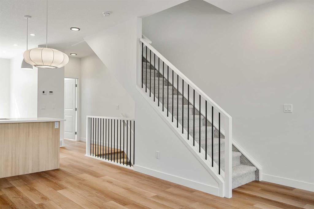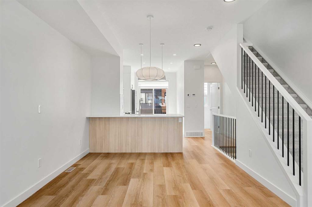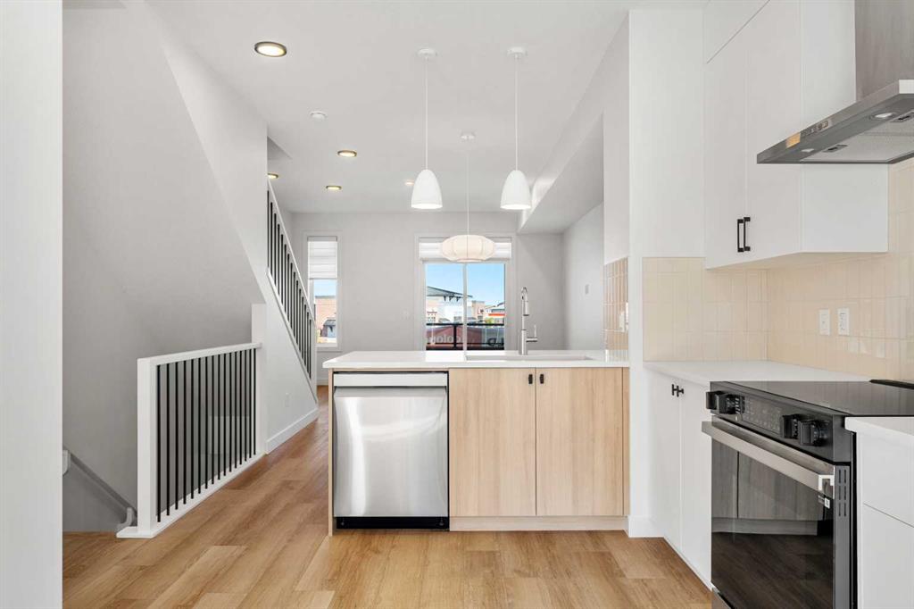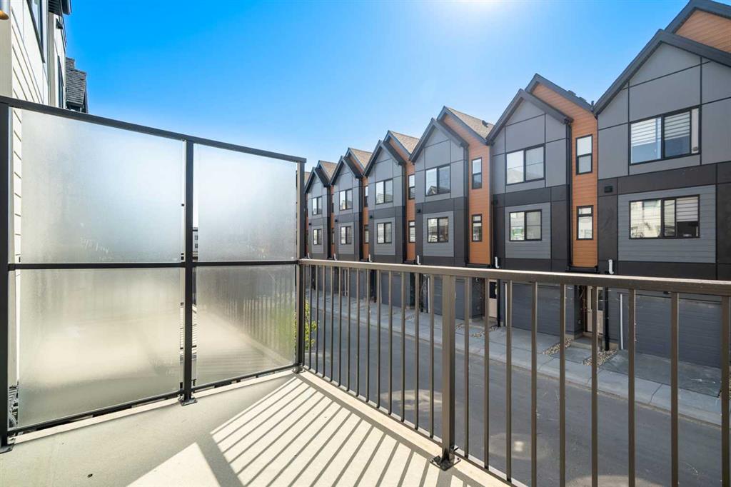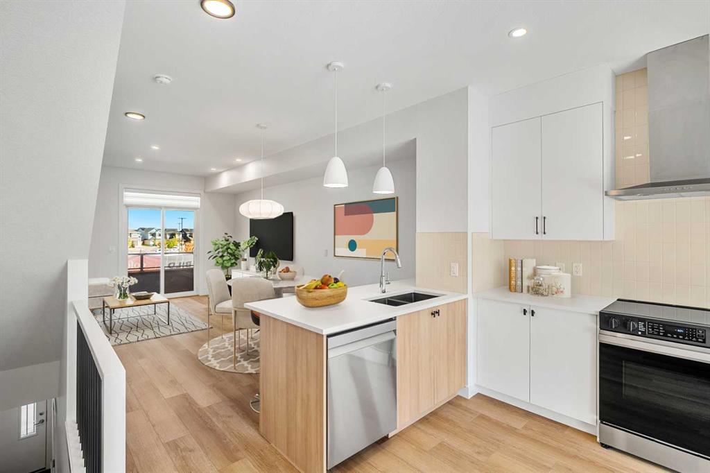 Welcome to the highly desirable community of Seton. Discover this contemporary 3-level townhome offering modern design and thoughtful upgrades throughout. Featuring 2 bedrooms, 2.5 bathrooms, and a well-planned layout, this home is ideal for both daily living and entertaining. The main floor showcases a semi built-in kitchen with sleek quartz countertops, stainless steel appliances, and a gas line hook-up to the BBQ. A unique feature of this unit is the bar-style layout with the built-in dishwasher, adding functionality and style to the heart of the home. The open-concept dining and living area is enhanced with additional lighting, creating a warm and inviting space. From here, step out onto one of your two balconies—perfect for enjoying morning sun from the east or evening light from the west. A gas line to the deck makes outdoor cooking simple and convenient. Upstairs, you’ll find 2 well-sized bedrooms including a private primary suite with an ensuite bathroom and generous closet space. The second bedroom, full bath, and upstairs laundry complete this level with ease and convenience. Flooring is thoughtfully selected with luxury vinyl plank throughout and carpeting on the second level. Additional features include quartz counters, AC rough-in, and a 2-car tandem garage with an extended driveway for extra parking flexibility. Located in a vibrant community with modern architecture and easy access to schools, shopping, and commuter routes, this townhome blends convenience with style. This home offers a streamlined lifestyle while providing the space you need. If you’re looking for a home with modern finishes, practical upgrades, and east-to-west outdoor living, this is the one.